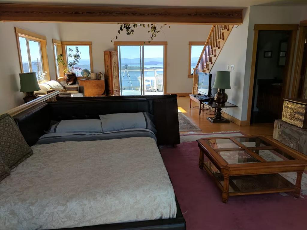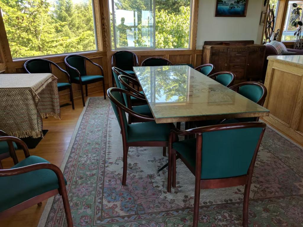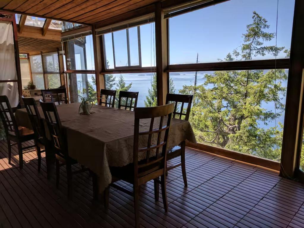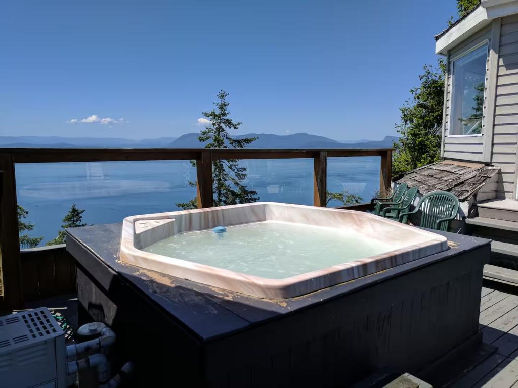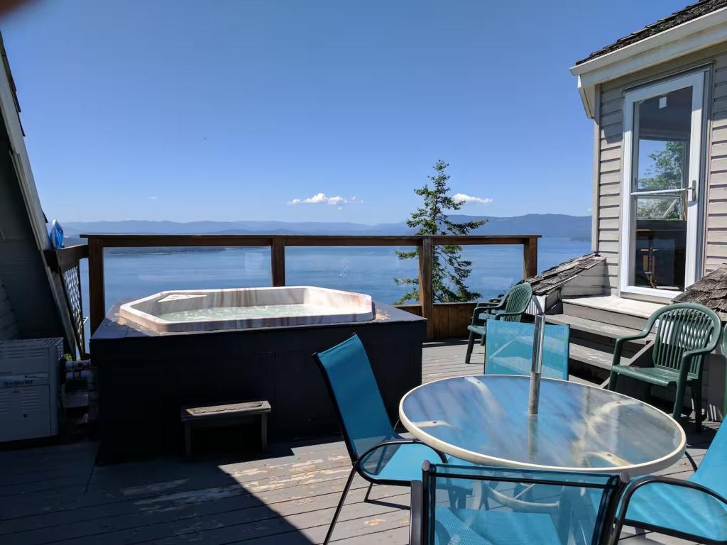 Whale Pod Chalet at Oaks Bluff Whale watching, Beautiful Chalet rental in Pender Island has 6 bedrooms, 2.5 bathrooms, 16 sleeps, 3 minimum stay Chalet for rent in Pender Island British Columbia with the amenities and near by attractions , Balcony, Beach Chairs, Paper Towels, Deck/Patio, Dock/Boat Slip, Fireplace, Free WiFi, Full Kitchen, Heating, Hot Tub, Internet, Kid Friendly, Linens Provided, Managed by Owner, Ocean View, Oceanfront, Parking, Pet Friendly, Porch / Veranda, Screen Porch, Smoking Allowed, Towels Provided, Water View, Waterfront, Wheelchair Accessible, Wireless Internet, Washing Machine, Kitchen, Children Welcome, Fire extinguisher, Children allowed, Smoke detector, Carbon-monoxide detector, Exterior lighting, Mountain View, Carbon monoxide detector, Blender, Microwave, Cable/Satellite TV, Outdoor Grill, Television, Ceiling Fans, Freezer, Oven, Toaster, Coffee Maker , Hair Dryer , Refrigerator, Washer/Dryer , Dishes & Utensils, Iron & Board , Stove, Dishwasher, Coffee Grinder, Heater, First-aid kit, Clothes Dryer, Ice Maker, Dining Area, Basic Soaps, Toilet Paper, Living Room, Kettle, Shampoo, Hangers, Microwave/Air Fryer, Mini Freezer, Ironing Board, Waffle Iron, Swimming, Outlet shopping, Winery tours, Fishing, Bird watching, Water sports, Ecotourism, Boating, Museums, Bay/sound, Health/beauty spa, Antiquing, Paddle boating, Shopping, Whale watching, Wildlife viewing, Cycling, Golf, Hiking, Kayaking, Mountain biking, Scuba diving or snorkeling, Snorkeling, Wind-surfing, golf privileges optionalTravel cot, Children’s books and toys, Cot, High chair, Dedicated workspace, Cooker, Private entrance, Private back garden – Fully fenced, Luggage drop-off allowed, Long-term stays allowed, Host greets you