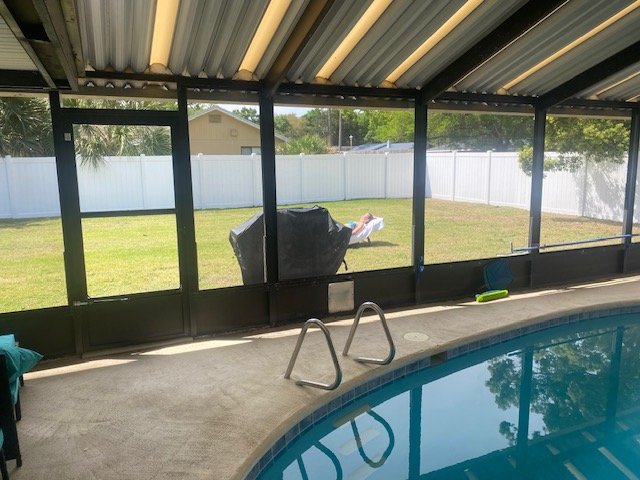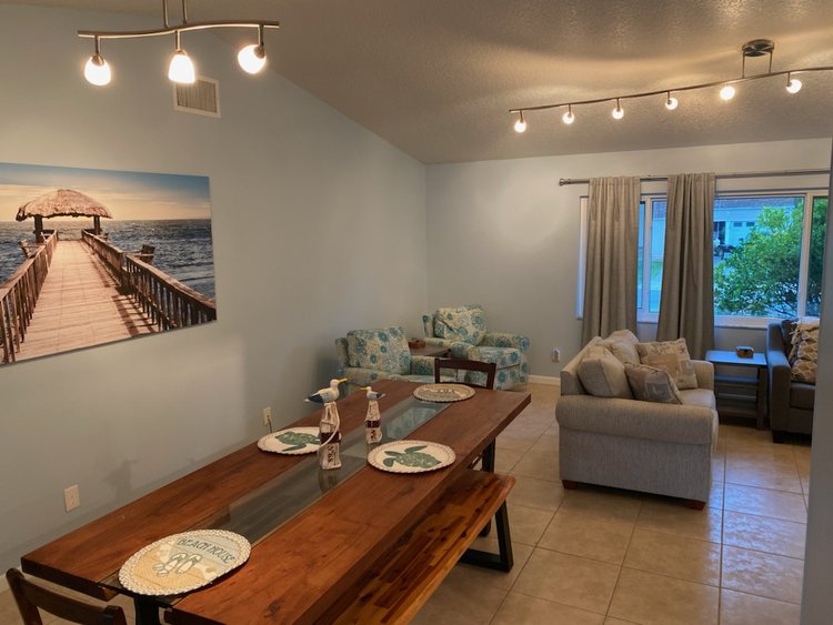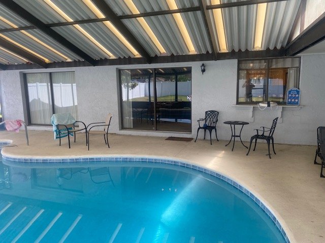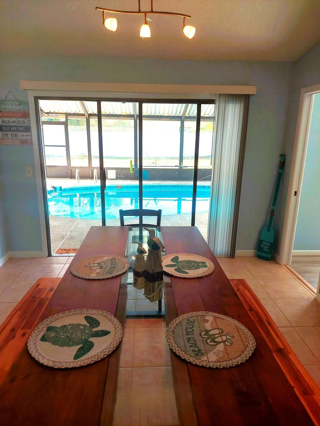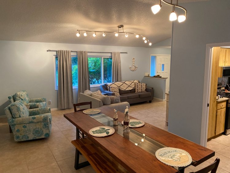 Relaxing Palm Coast Retreat, Beautiful House rental in Palm Coast has 3 bedrooms, 2 bathrooms, 6 sleeps, 2 minimum stay House for rent in Palm Coast Florida with the amenities and near by attractions , Air Conditioning, Free WiFi, Full Kitchen, Garage, Heating, Internet, Linens Provided, Managed by Owner, Non-Smoking, Parking, Pet Friendly, Private Pool, Towels Provided, Wireless Internet, Washing Machine, Kitchen, Swimming pool, Fire extinguisher, Children allowed, No Smoking, No parties/events, Smoke detector, Carbon monoxide detector, Blender, Microwave, Cable/Satellite TV, Outdoor Grill, Television, Ceiling Fans, Freezer, Oven, Toaster, Coffee Maker , Hair Dryer , Refrigerator, Washer/Dryer , Dishes & Utensils, Iron & Board , Stove, Dishwasher, Heater, First-aid kit, Ice Maker, Dining Area, Toilet Paper, Living Room, Kettle, Hangers, Ironing Board, Outlet shopping, Fishing, Theme parks, Bird watching, Surfing, Boating, Zoo, Horseback riding, Shopping, Cycling, Golf, Hiking, Mountain biking, Scuba diving or snorkelingFenced backyard, Saltwater pool with covered roof and lanai, 2 indoor seating areas, 3 Bedrooms plus pullout sofa, Laundry room, Ample parking. Every room has Roku or Google TV. Introductory supply of toiletries.