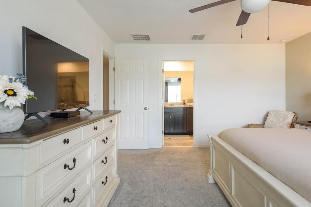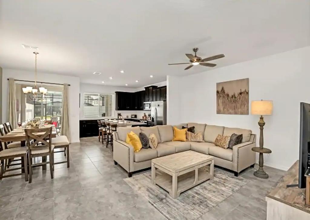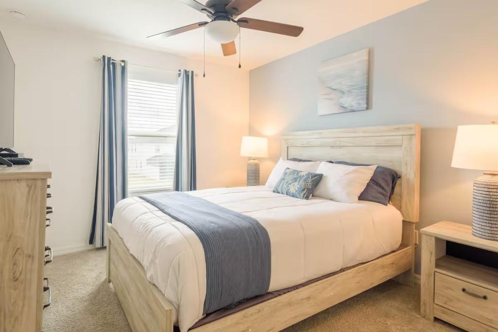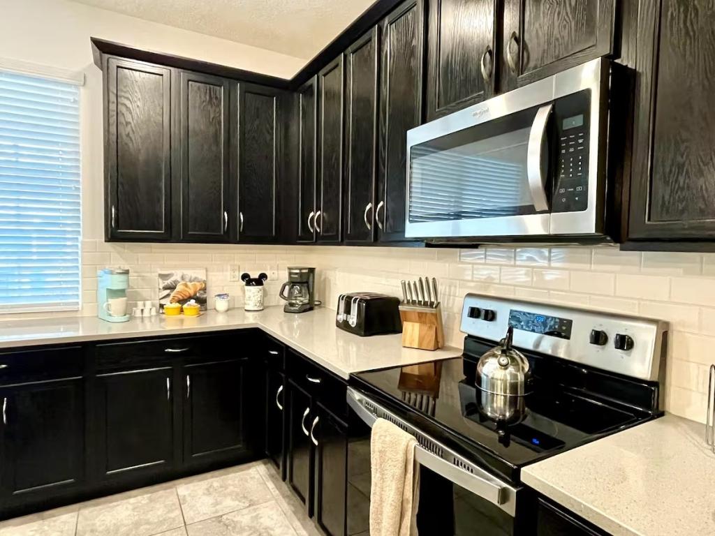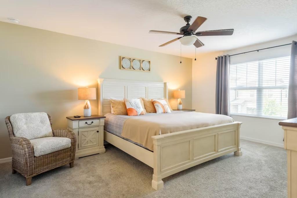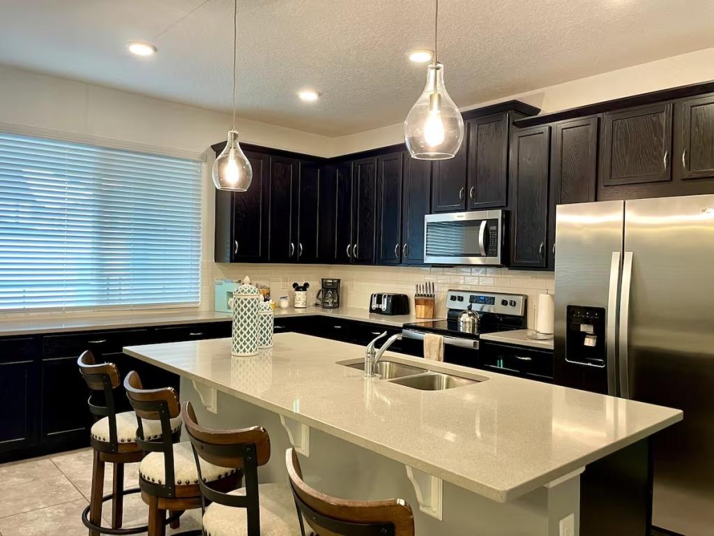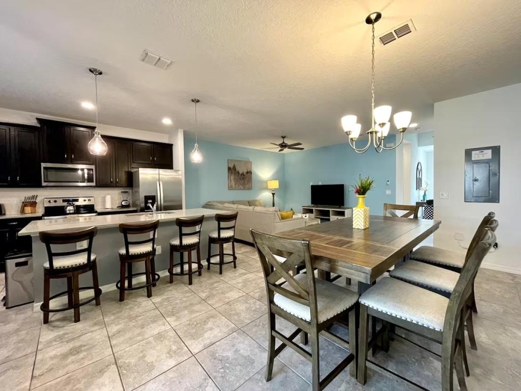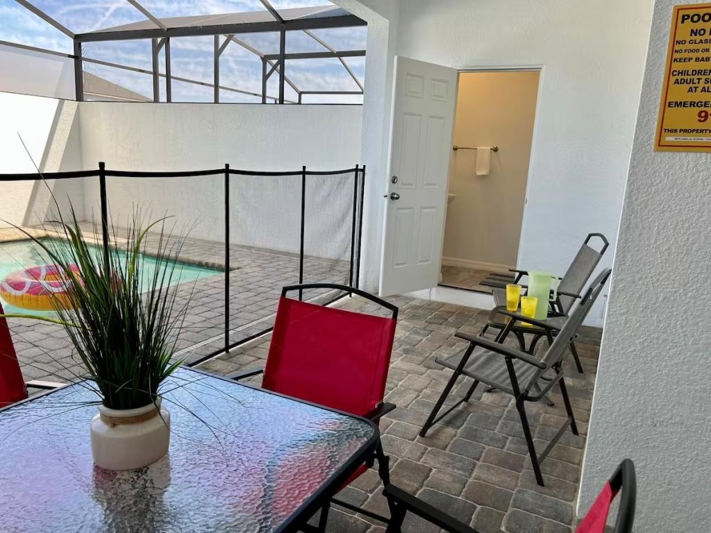 Magnific w/pool & crib-FREE Water Park near Disney, Beautiful House rental in Kissimmee has 4 bedrooms, 4 bathrooms, 10 sleeps, 1 minimum stay House for rent in Kissimmee Florida with the amenities and near by attractions , Air Conditioning, Carbon monoxide detector, Fire extinguisher, Free WiFi, Heating, Kitchen, Linens Provided, Smoke detector, Towels Provided, Basic Soaps, Blender, Ceiling Fans, Coffee Maker , Dishwasher, First-aid kit, Freezer, Hair Dryer , Hangers, Kettle, Microwave, Oven, Shampoo, Toaster, Toilet Paper, Washer/Dryer Pool view, Cleaning products, Body soap, Hot water, Shower gel, bed sheets, Extra pillows and blankets, Room-darkening blinds, Iron, Clothes storage: wardrobe, Exercise equipment, Theme room, Travel cot, Children’s books and toys, High chair, Children’s tableware, Baby safety gates, Children’s playroom, Outdoor playground, Central air conditioning, Exterior security cameras on property, Smoke alarm, Fridge, Cooking basics(Pots and pans- oil- salt and pepper), Dishes and cutlery(Bowls- chopsticks- plates- cups- etc.), Stainless steel electric cooker, Wine glasses, Baking sheet, Barbecue utensils, Dining table, Coffee, Private entrance, Resort access, Outdoor furniture, Outdoor dining area, BBQ grill, Free parking on premises, Free on-street parking, Private outdoor pool , Shared gym nearby
