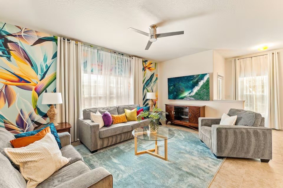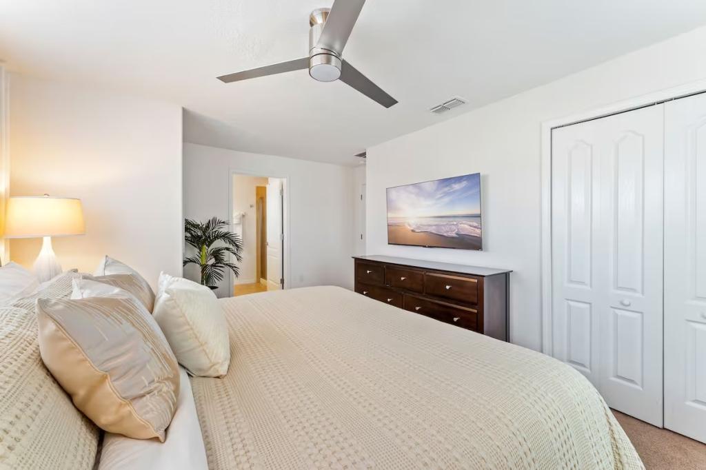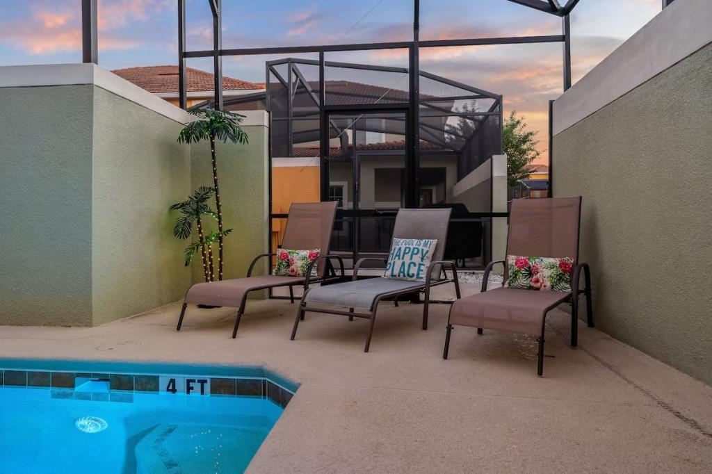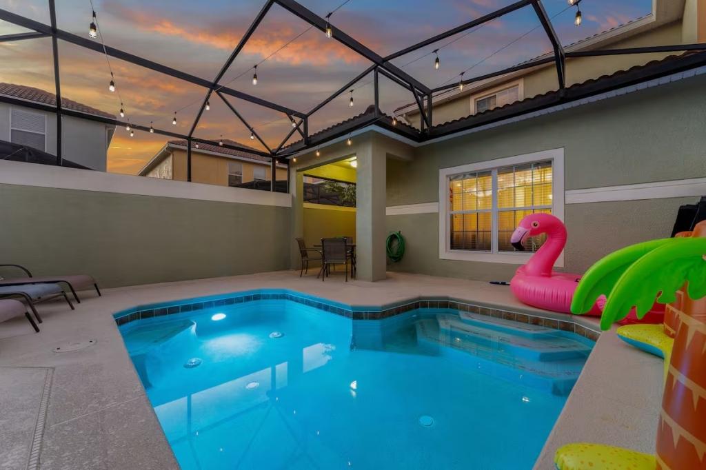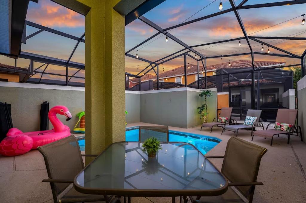 Disney 5mi*Free Pool Heat*BBQ* WALK to Clubhouse!, Beautiful House rental in Kissimmee has 5 bedrooms, 4 bathrooms, 10 sleeps, 1 minimum stay House for rent in Kissimmee Florida with the amenities and near by attractions , Air Conditioning, Balcony, Carbon monoxide detector, Deck/Patio, Fire extinguisher, Free WiFi, Kitchen, Linens Provided, Parking, Smoke detector, Towels Provided, Basic Soaps, Blender, Coffee Maker , Dishwasher, First-aid kit, Freezer, Hair Dryer , Hangers, Kettle, Oven, Shampoo, Television, Toaster, Toilet Paper, Washer/Dryer Bath, Cleaning products, Conditioner, Body soap, Hot water, Shower gel, Extra pillows and blankets, Room-darkening blinds, Exercise equipment, Cinema, Theme room, Children’s books and toys, High chair – always at the listing, Children’s tableware, Board games, Baby safety gates, Central air conditioning, Ceiling fan, Central heating, Cooking basics, Dishes and cutlery, Stainless steel electric cooker, Stainless steel oven, Wine glasses, Baking sheet, Barbecue utensils, Dining table, Coffee, Private entrance, Free resort access, Private patio or balcony, Outdoor furniture, Outdoor dining area, Private BBQ grill: gas, Sun loungers, Free parking on premises