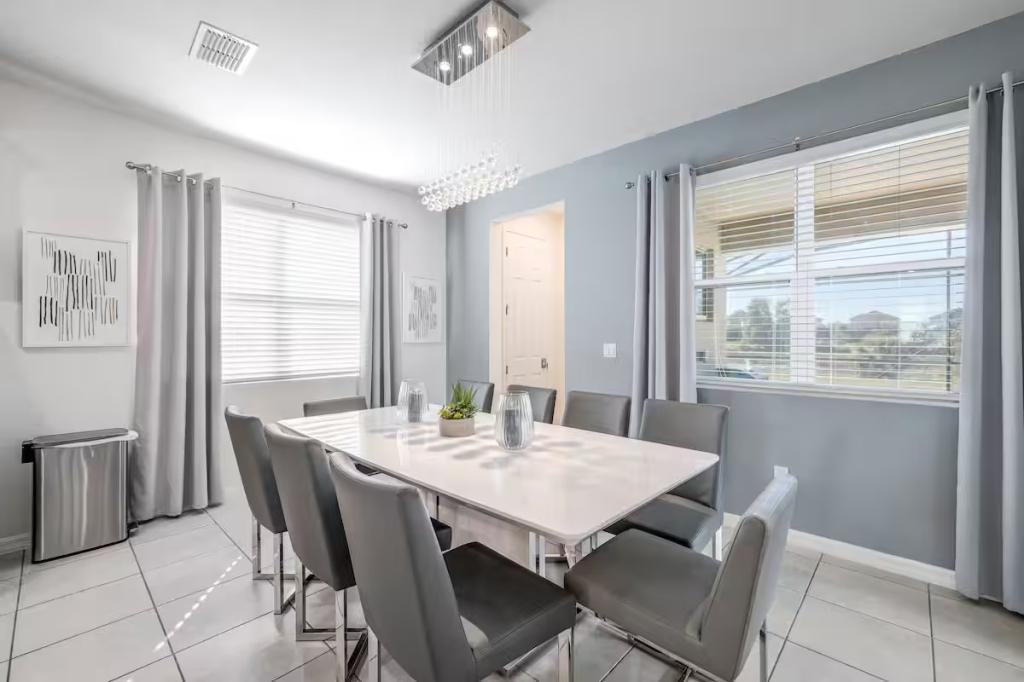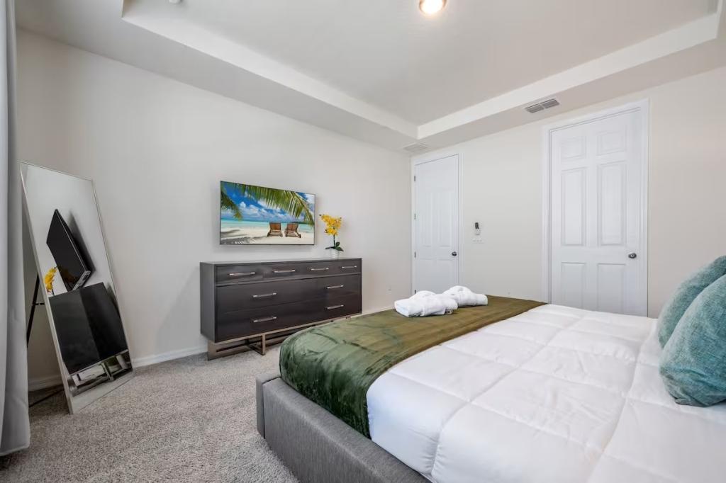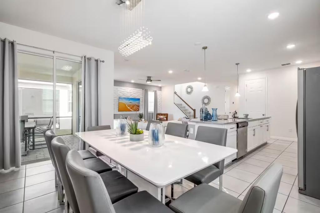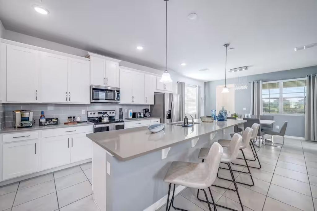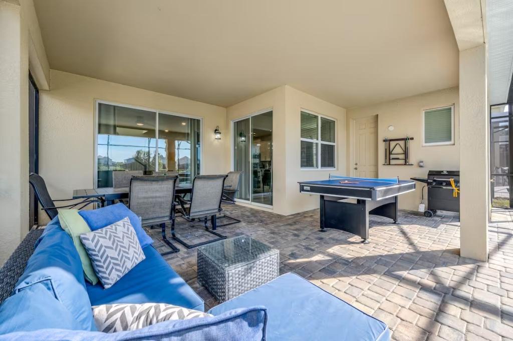 Solara, Beautiful House rental in Kissimmee has 6 bedrooms, 4.5 bathrooms, 14 sleeps, 1 minimum stay House for rent in Kissimmee Florida with the amenities and near by attractions , Air Conditioning, Carbon monoxide detector, Fire extinguisher, Free WiFi, Kitchen, Pool Table, Smoke detector, Towels Provided, Basic Soaps, First-aid kit, Television, Toilet Paper, Washer/Dryer Central air conditioning, Exterior security cameras on property, Outdoor dining area, Private BBQ grill: gas, Free driveway parking on premises – 3 spaces, Private outdoor pool – available all year open 24 hours