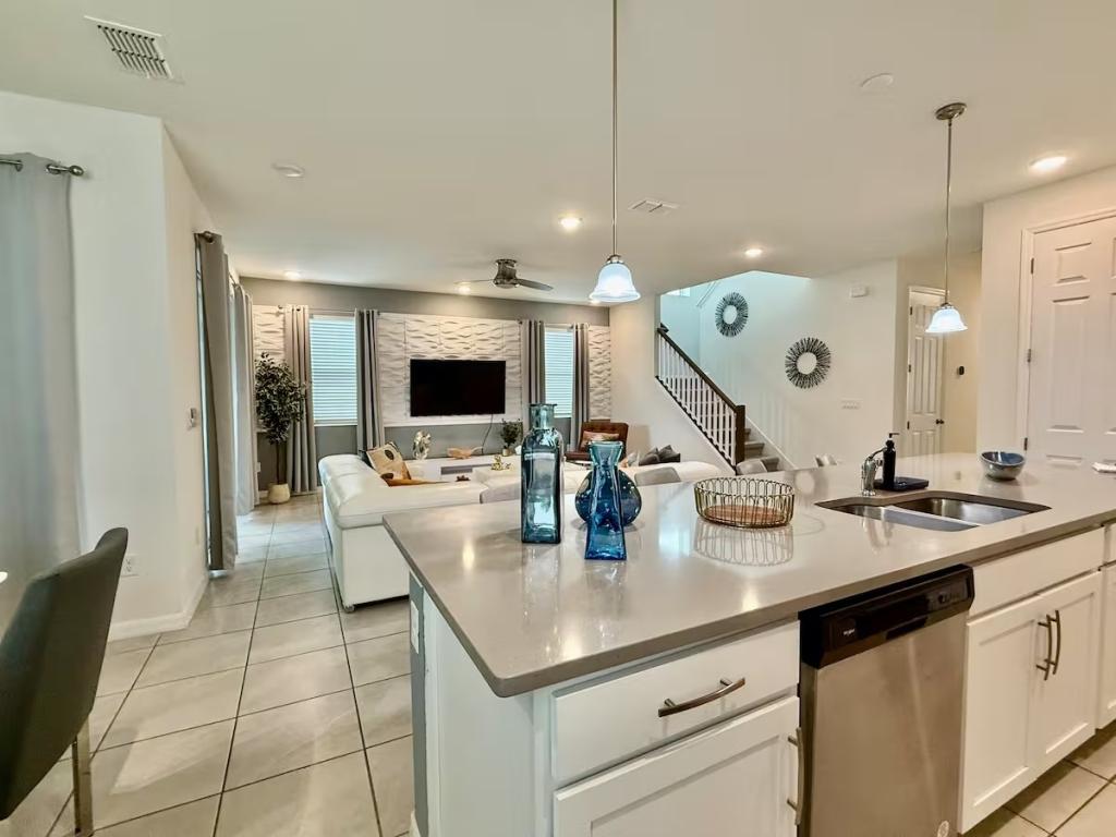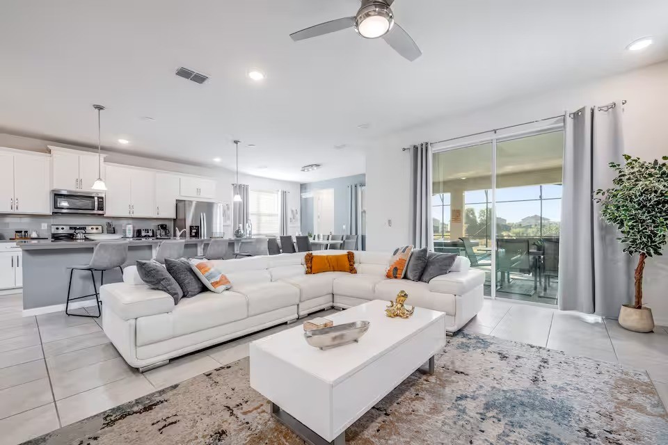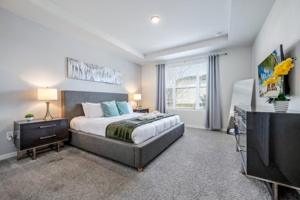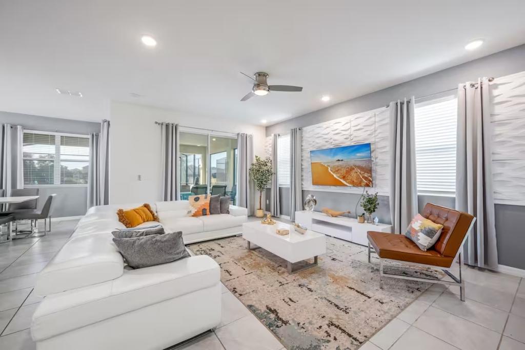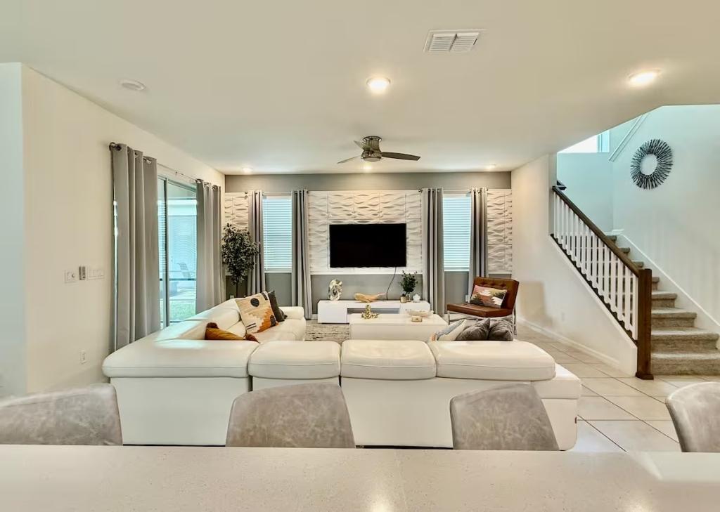 Solara, Beautiful House rental in Kissimmee has 6 bedrooms, 4.5 bathrooms, 14 sleeps, 1 minimum stay House for rent in Kissimmee Florida with the amenities and near by attractions , Air Conditioning, Carbon monoxide detector, Fire extinguisher, Free WiFi, Kitchen, Pool Table, Smoke detector, Towels Provided, Basic Soaps, First-aid kit, Television, Toilet Paper, Washer/Dryer Central air conditioning, Exterior security cameras on property, Outdoor dining area, Private BBQ grill: gas, Free driveway parking on premises – 3 spaces, Private outdoor pool – available all year open 24 hours
