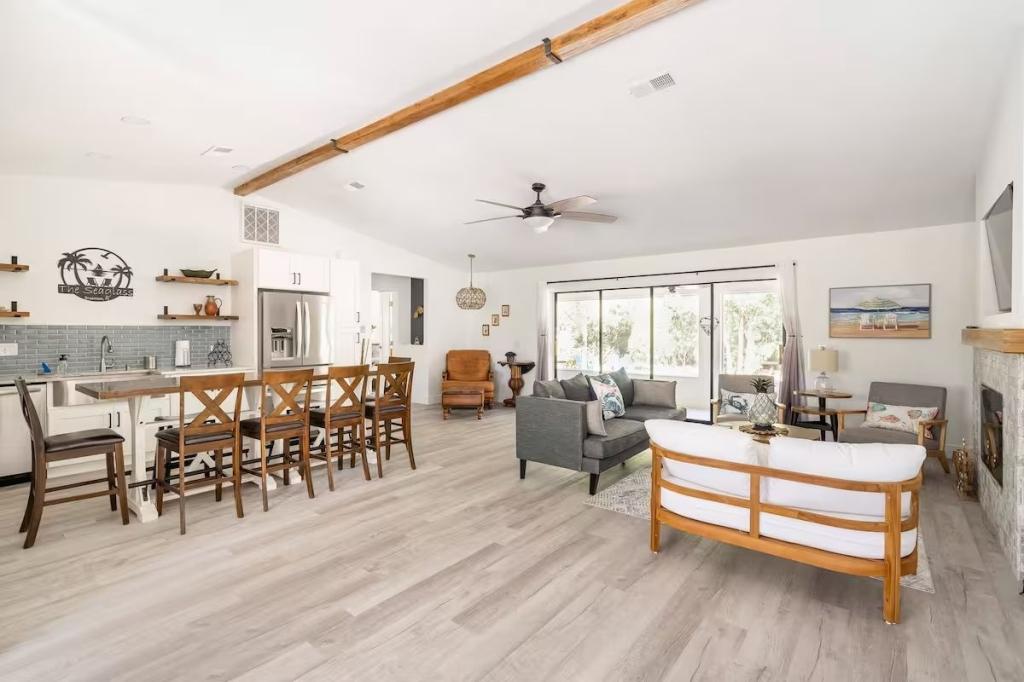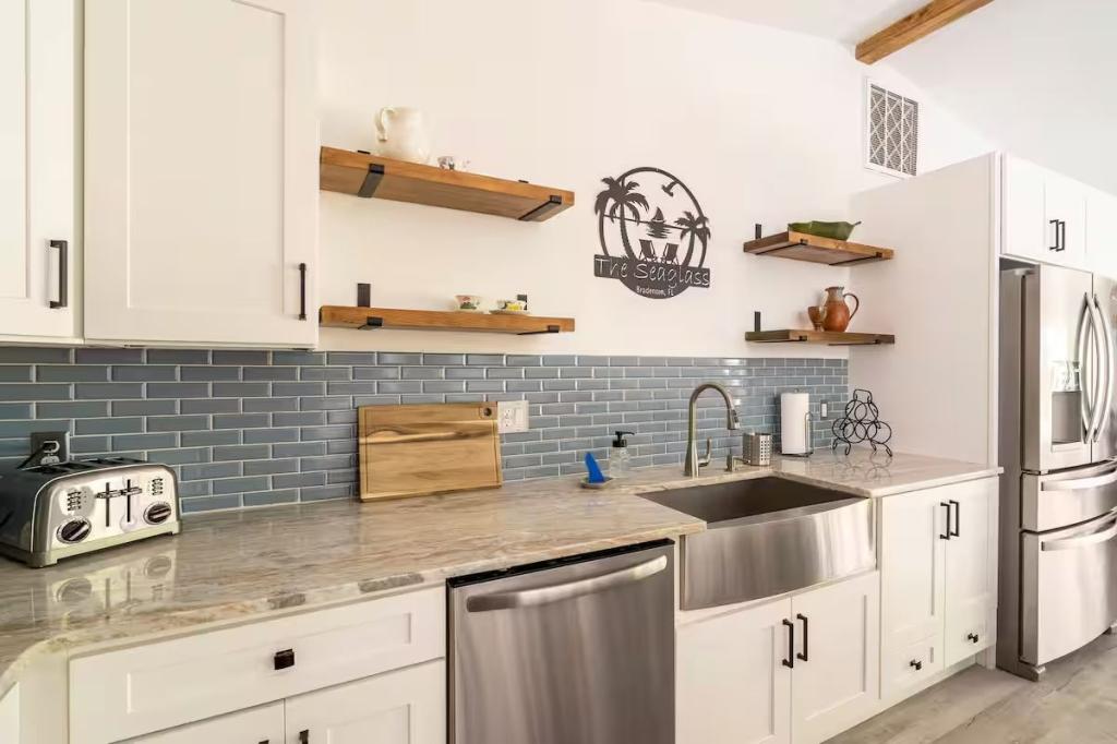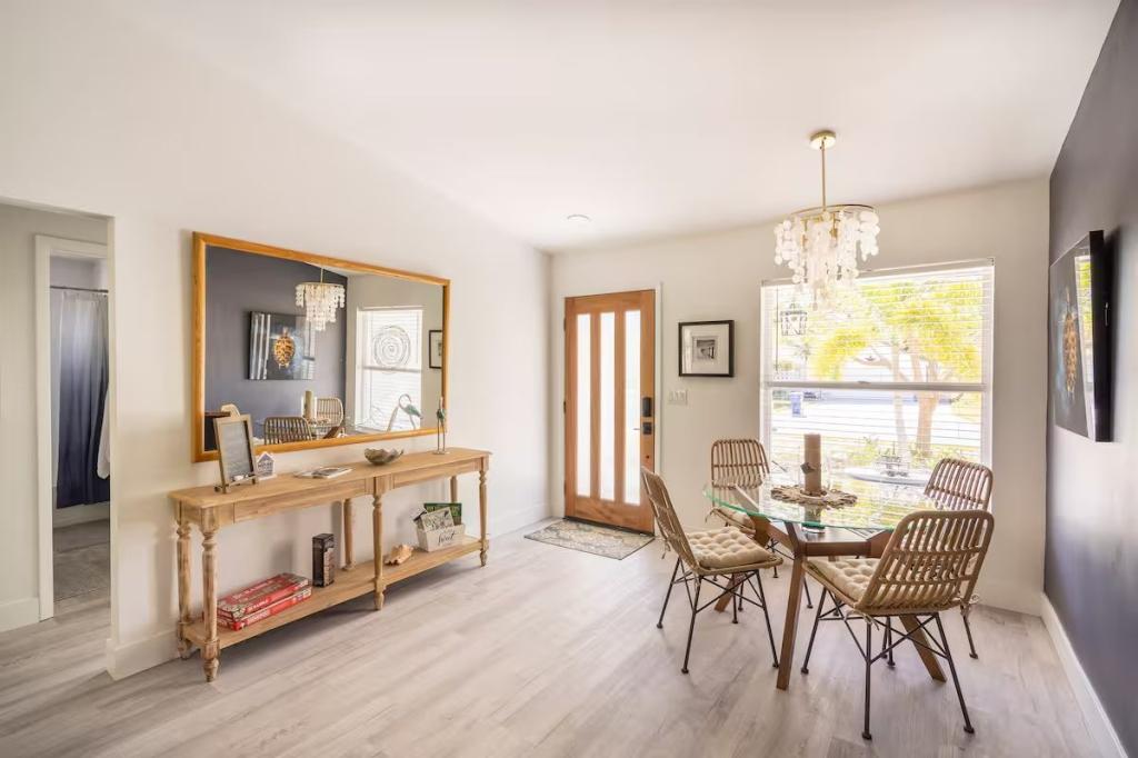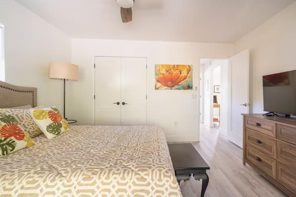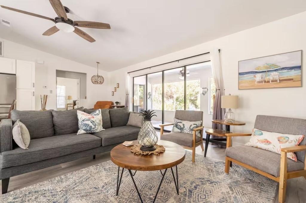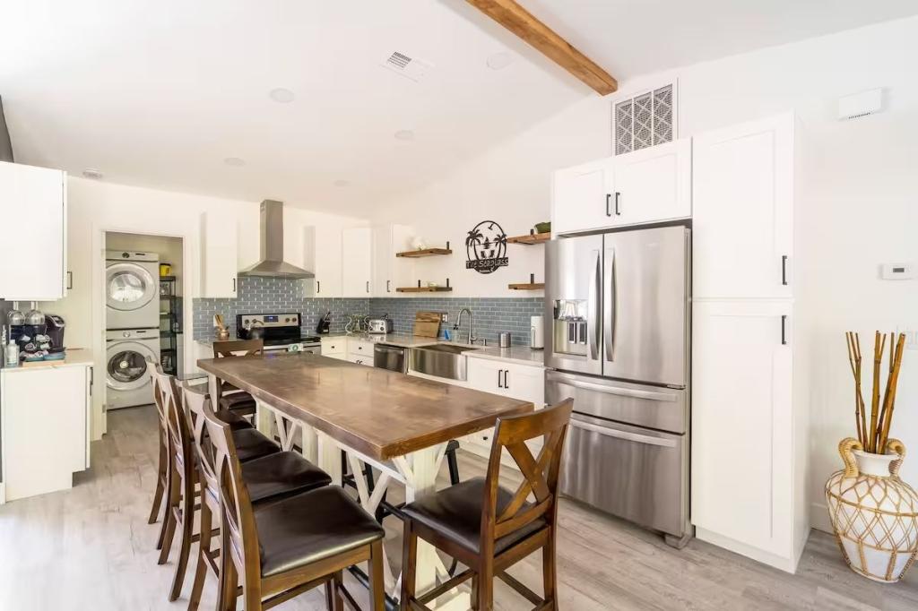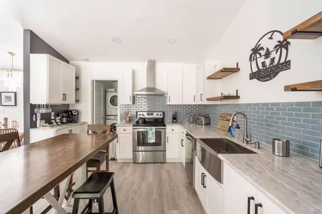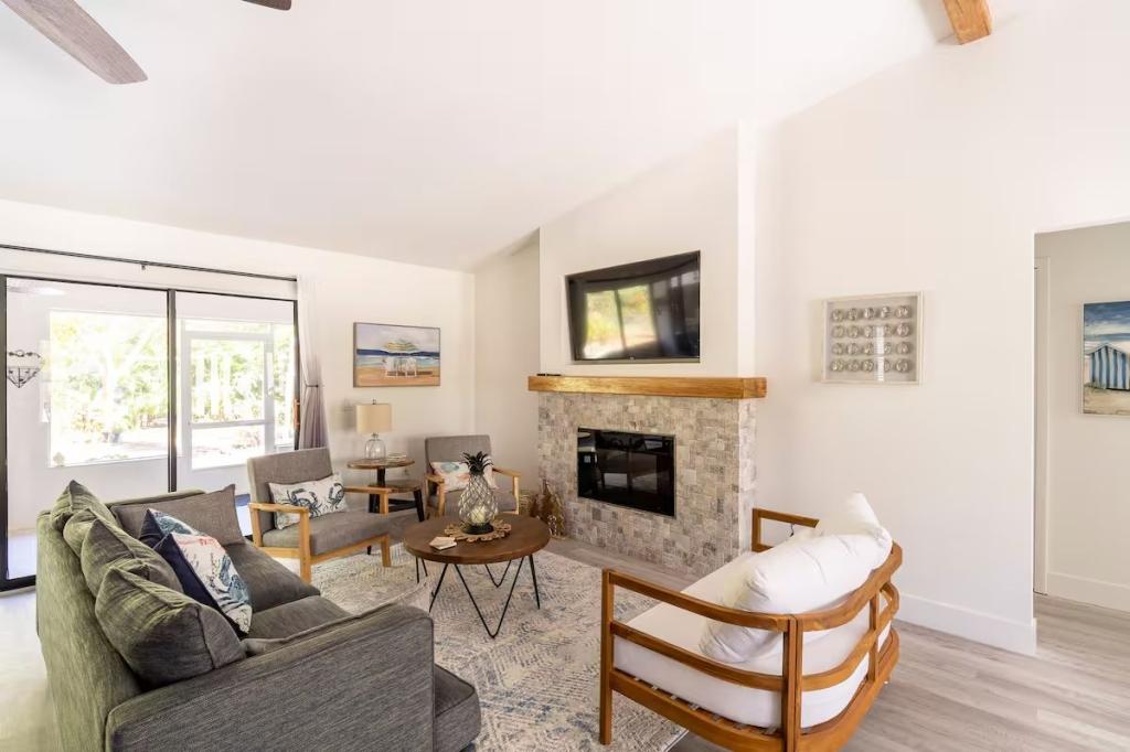 Designer House near Anna Maria-Best of Bradenton!, Beautiful Condo rental in Bradenton has 3 bedrooms, 2 bathrooms, 8 sleeps, 1 minimum stay Condo for rent in Bradenton Florida with the amenities and near by attractions , Air Conditioning, Balcony, Carbon monoxide detector, Deck/Patio, Fire extinguisher, Fireplace, Free WiFi, Heating, Kitchen, Linens Provided, Outdoor Shower, Parking, Pet Friendly, Smoke detector, Towels Provided, Basic Soaps, Blender, Ceiling Fans, Clothes Dryer, Coffee Maker , Dishes & Utensils, Dishwasher, First-aid kit, Hair Dryer , Hangers, Iron & Board , Kettle, Microwave, Oven, Refrigerator, Shampoo, Toaster, Washer/Dryer Garden view, Bath, Cleaning products, Conditioner, Hot water, Shower gel, Room-darkening blinds, HDTV with Roku, Books and reading material, Cot , Travel Cot, Standalone high chair, Children’s tableware, Board games, Children’s bikes, Exterior security cameras on property, Dedicated workspace, Cooking basics, electric cooker, Wine glasses, Baking sheet, Barbecue utensils, Dining table, Private back garden – Fully fenced, Firepit, Outdoor furniture, Outdoor dining area, Outdoor kitchen, BBQ grill, Bikes, Single level home, Long-term stays allowed, Keypad, Self check-in