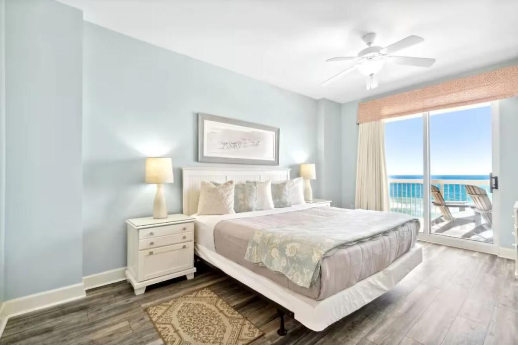 Beachfront Sunrise 1204 - Oh Happy Day, Beautiful Condo rental in Panama City Beach has 3 bedrooms, 2 bathrooms, 8 sleeps, 3 minimum stay Condo for rent in Panama City Beach Florida with the amenities and near by attractions , Balcony, Beach Chairs, Paper Towels, Beach View, Deck/Patio, Elevator, Fitness Room , Free WiFi, Full Kitchen, Garage, Heated Pool, Heating, Hot Tub, Internet, Kid Friendly, Linens Provided, Managed by Owner, No Pets Allowed, Non-Smoking, Ocean View, Oceanfront, Parking, Towels Provided, Water View, Waterfront, Wheelchair Accessible, Wireless Internet, Washing Machine, Kitchen, Children Welcome, Swimming pool, Fire extinguisher, No Smoking, No parties/events, Beachfront, Smoke detector, Carbon-monoxide detector, Exterior lighting, Carbon monoxide detector, Outdoor Pool, Blender, Microwave, Cable/Satellite TV, Outdoor Grill, Television, Ceiling Fans, Freezer, Oven, Toaster, Coffee Maker , Hair Dryer , Refrigerator, Washer/Dryer , Dishes & Utensils, Iron & Board , Stove, Dishwasher, Heater, Clothes Dryer, Ice Maker, Dining Area, Basic Soaps, Toilet Paper, Living Room, Kettle, Shampoo, Hangers, Microwave/Air Fryer, Ironing Board, Swimming, Water sports, Water parks, Zoo, Shopping, Hiking, Kayaking, fitness centerPool view, Sea view, Cleaning products, Conditioner, Body soap, Hot water, Shower gel, Bed sheets, Bed linen, Extra pillows and blankets, Room-darkening blinds, Iron, Clothes storage, Central air conditioning, Ceiling fan, Portable fans, Exterior security cameras on property We have one camera at the entry door facing out., Dedicated workspace In a common space, Kitchen Space where guests can cook their own meals, Fridge, Dishes and cutlery Bowls- chopsticks- plates- cups- etc., GE stainless steel electric cooker, Wine glasses, Baking sheet, Barbecue utensils Grill- charcoal- bamboo skewers/iron skewers etc., Dining table, Private patio or balcony, Firepit, Outdoor furniture, Outdoor dining area, BBQ grill: gas, Beach essentials Beach towels, umbrella, beach blanket, snorkelling gear, Sun loungers