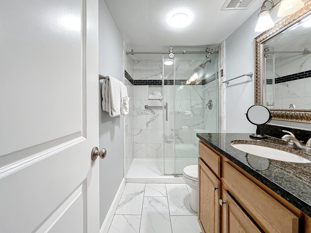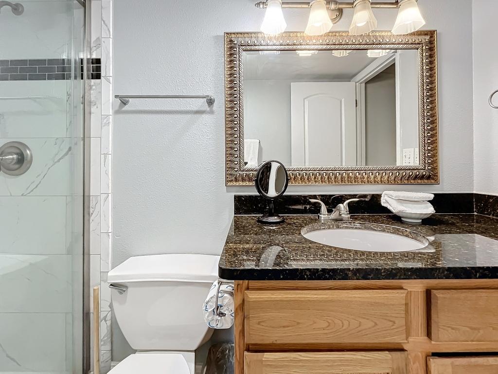 New Bathrooms: Ceramic tile tub/showers with stainless steel faucets. New cabinets with granite countertops and ceramic sink undermount. New light fixtures and large mirrors.