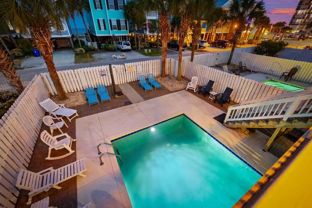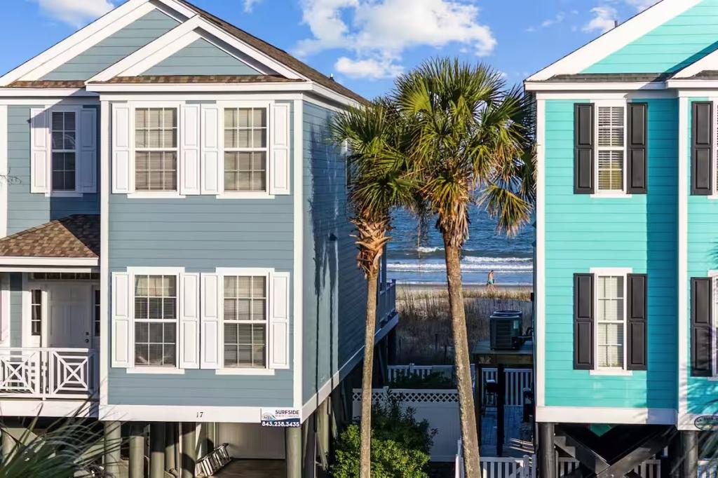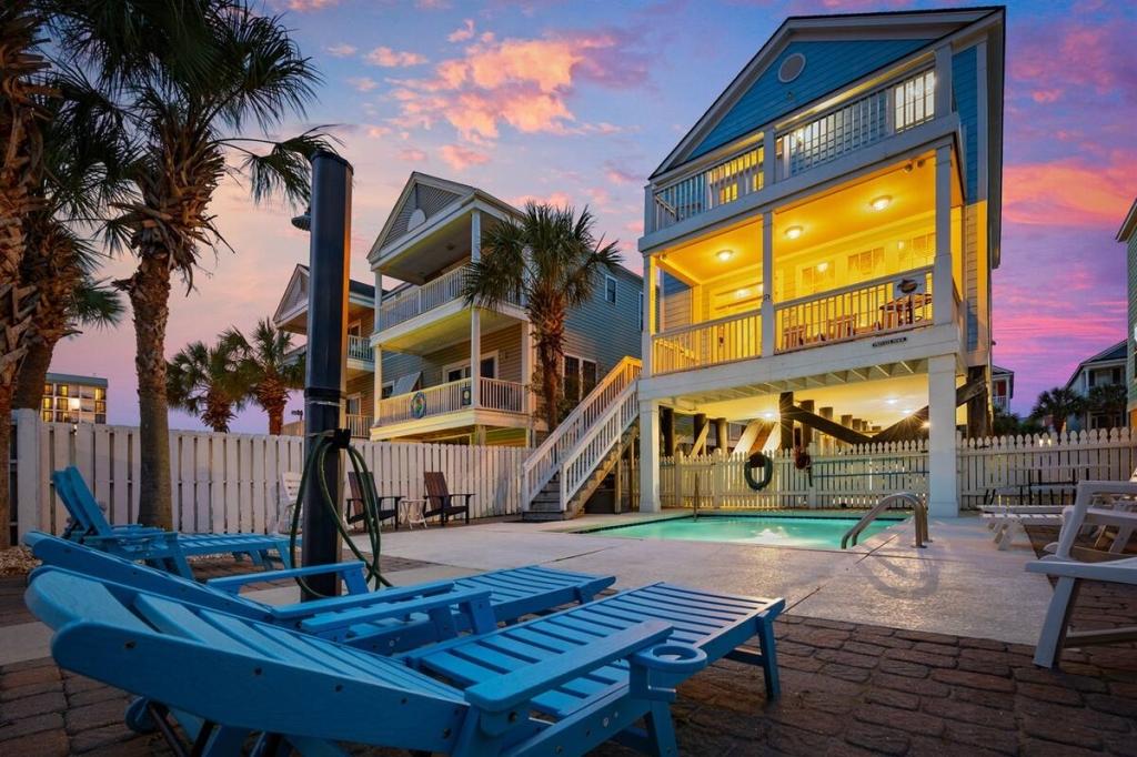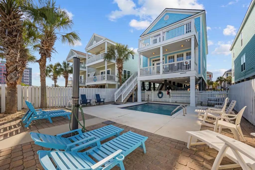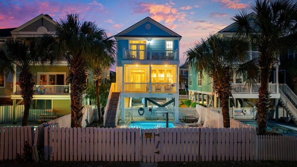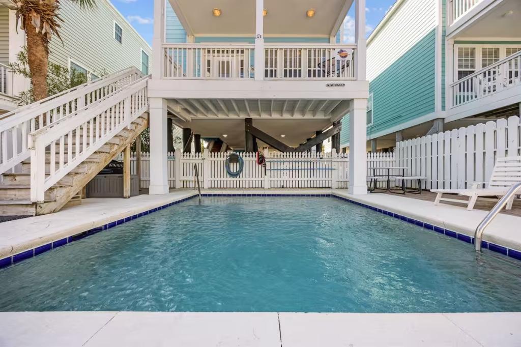 Jolly Mon - Surfside Beach Places, Beautiful House rental in Surfside Beach has 4 bedrooms, 4 bathrooms, 12 sleeps, 3 minimum stay House for rent in Surfside Beach South Carolina with the amenities and near by attractions , Air Conditioning, Balcony, Beach Chairs, Beach View, Beachfront, Carbon monoxide detector, Carbon-monoxide detector, Deck/Patio, Fire extinguisher, Free WiFi, Heating, Kitchen, Linens Provided, Outdoor Shower, Paper Towels, Ping Pong Table, Porch / Veranda, Smoke detector, Towels Provided, Washing Machine, Basic Soaps, Cable/Satellite TV, Ceiling Fans, Clothes Dryer, Coffee Maker , Dishes & Utensils, Dishwasher, DVD Player, First-aid kit, Freezer, Hair Dryer , Hangers, Iron & Board , Kettle, Living Room, Microwave, Mini Refrigerator, Outdoor Grill, Oven, Refrigerator, Shampoo, Stove, Television, Toaster, Toilet PaperHot Water, Laptop Friendly Workspace, Hair Conditioner, Private Entrance, Extra Pillows & Blankets, Portable Fans, Clothing Storage, Spices/Pantry Items, Pots & Pans, Dining Table, Baking Sheet, Barbeque/Grill Utensils, Coffee, Wine Glasses, Exterior Cameras, Deadbolt lock, Stereo, Video Library, Games/Board Games, Books, Toys, Lawn/Garden, Tennis, Walkable to Park/Playground, Private Fenced Yard, Outdoor Dining, Outdoor Seating, Hammock, Sun Loungers, Private Heated Fenced Pool