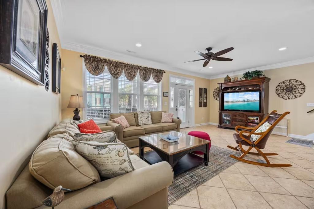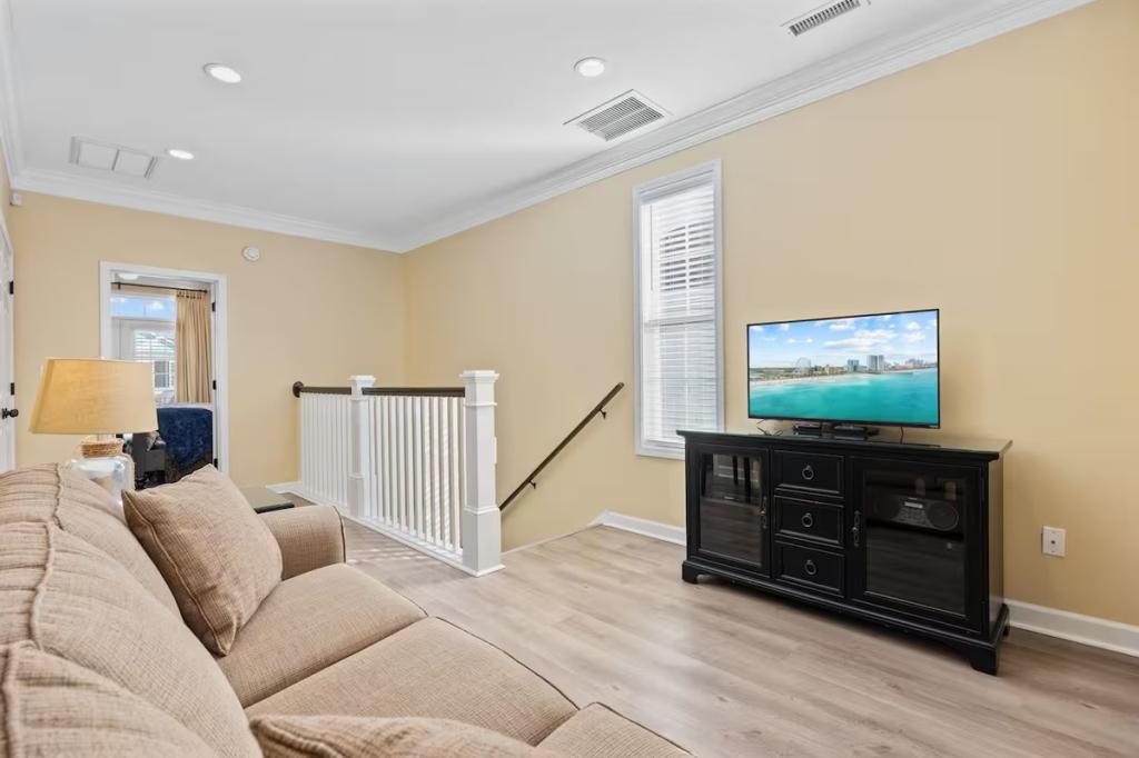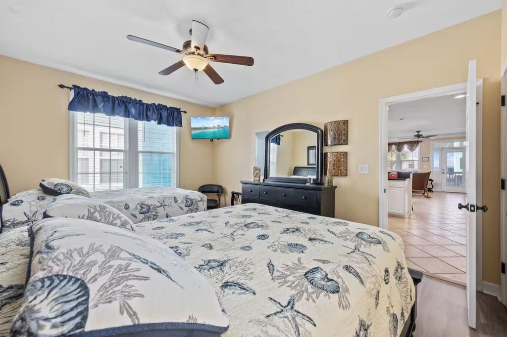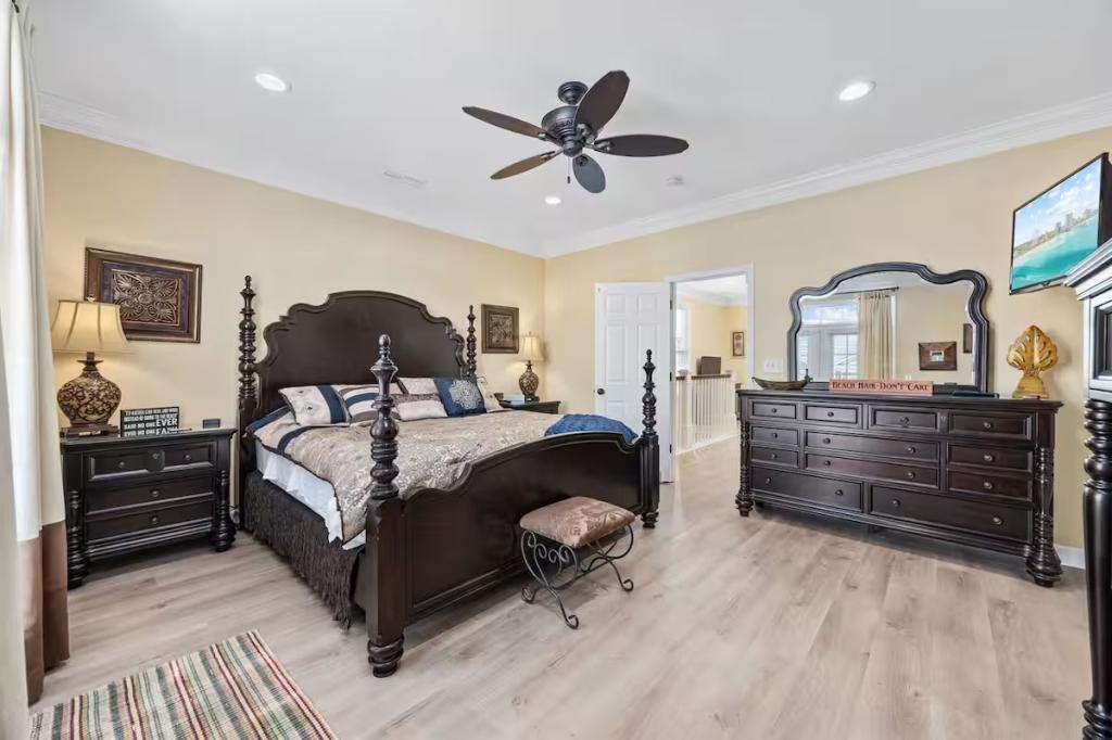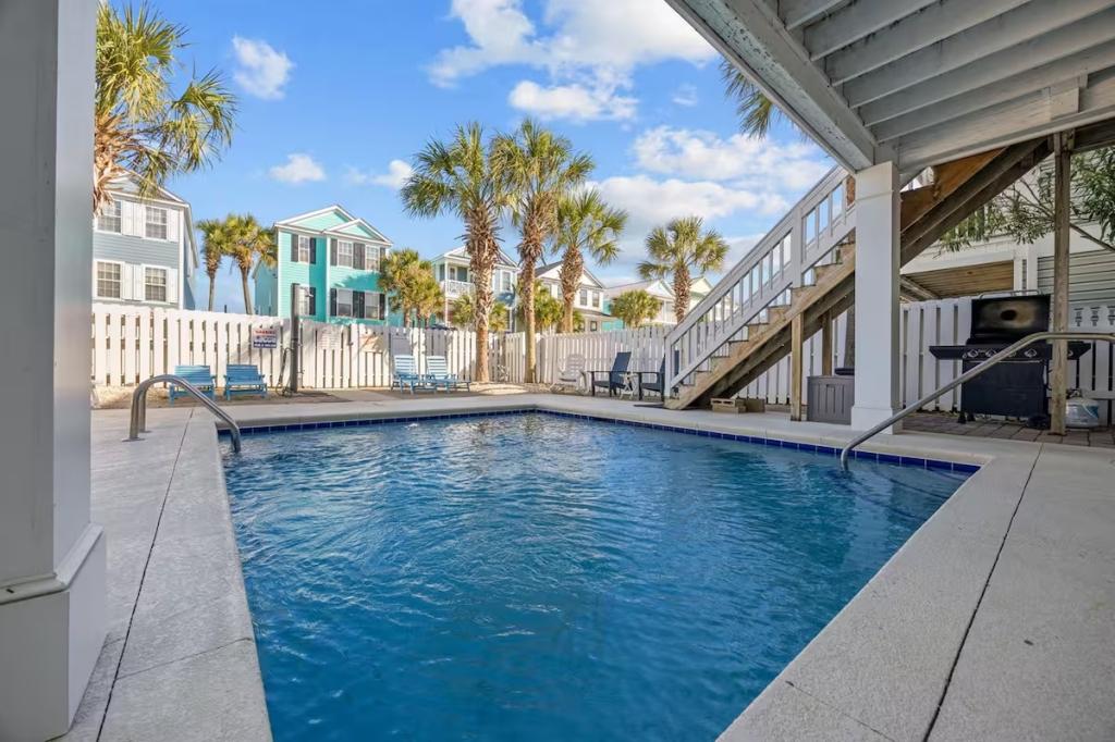Jolly Mon - Surfside Beach Places, Beautiful House rental in Surfside Beach has 4 bedrooms, 4 bathrooms, 12 sleeps, 3 minimum stay House for rent in Surfside Beach South Carolina with the amenities and near by attractions , Air Conditioning, Balcony, Beach Chairs, Beach View, Beachfront, Carbon monoxide detector, Carbon-monoxide detector, Deck/Patio, Fire extinguisher, Free WiFi, Heating, Kitchen, Linens Provided, Outdoor Shower, Paper Towels, Ping Pong Table, Porch / Veranda, Smoke detector, Towels Provided, Washing Machine, Basic Soaps, Cable/Satellite TV, Ceiling Fans, Clothes Dryer, Coffee Maker , Dishes & Utensils, Dishwasher, DVD Player, First-aid kit, Freezer, Hair Dryer , Hangers, Iron & Board , Kettle, Living Room, Microwave, Mini Refrigerator, Outdoor Grill, Oven, Refrigerator, Shampoo, Stove, Television, Toaster, Toilet PaperHot Water, Laptop Friendly Workspace, Hair Conditioner, Private Entrance, Extra Pillows & Blankets, Portable Fans, Clothing Storage, Spices/Pantry Items, Pots & Pans, Dining Table, Baking Sheet, Barbeque/Grill Utensils, Coffee, Wine Glasses, Exterior Cameras, Deadbolt lock, Stereo, Video Library, Games/Board Games, Books, Toys, Lawn/Garden, Tennis, Walkable to Park/Playground, Private Fenced Yard, Outdoor Dining, Outdoor Seating, Hammock, Sun Loungers, Private Heated Fenced Pool
