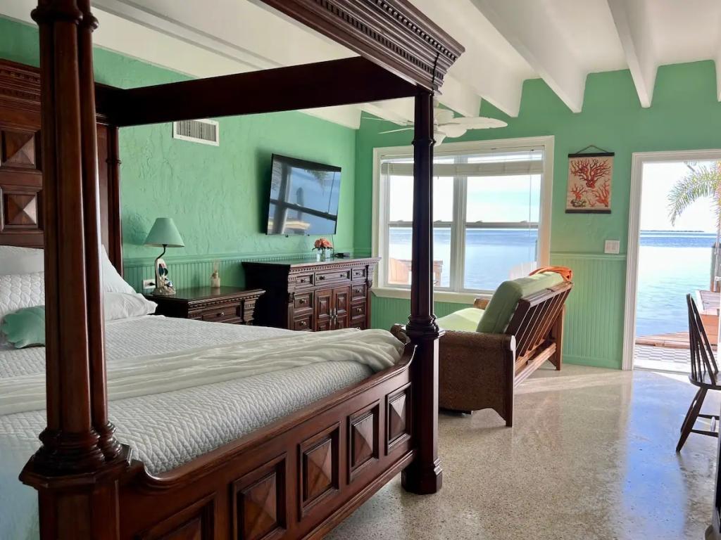 Conch Key Villas #1, Beautiful Studio rental in Marathon has 1 bathrooms, 2 sleeps, 4 minimum stay Studio for rent in Marathon Florida with the amenities and near by attractions , Air Conditioning, Balcony, Deck/Patio, Dock/Boat Slip, Free WiFi, Heating, Internet, Linens Provided, Managed by Owner, No Pets Allowed, Non-Smoking, Towels Provided, Water View, Waterfront, Wireless Internet, Washing Machine, Kitchen, Children Welcome, Fire extinguisher, No Smoking, No parties/events, Smoke detector, Blender, Microwave, Outdoor Grill, Television, Ceiling Fans, Freezer, Oven, Toaster, Coffee Maker , Hair Dryer , Refrigerator, Washer/Dryer , Dishes & Utensils, Iron & Board , Stove, Dishwasher, First-aid kit, Clothes Dryer, Ice Maker, Dining Area, Basic Soaps, Toilet Paper, Shampoo, Hangers, Microwave/Air Fryer, Ironing Board, Fishing, Boating, Paddle boating, Kayaking, Scuba diving or snorkeling, SnorkelingBay view, Conditioner, Body soap, Hot water, Shower gel, Paid washer – In building, Dryer, Extra pillows and blankets, Clothes storage: chest of drawers and wardrobe, HDTV, Lock on bedroom door Private room can be locked for safety and privacy, Kitchen Space where guests can cook their own meals, filtered water Microwave Cooking basics Pots and pans, oil, salt and pepper, Dishes and silverware Bowls, chopsticks, plates, cups, etc. Freezer Dishwasher Electric cooker Oven Coffee maker: filter coffee maker, cafetière, Keurig coffee machine Wine glasses Toaster Blender Barbecue utensils Grill, charcoal, bamboo skewers/iron skewers, filtered water, Cooking basics Pots and pans, oil, salt and pepper, Dishes and silverware Bowls-chopsticks-plates-cups-etc., , Electric cooker, Wine glasses, Barbecue utensils Grill, charcoal, bamboo skewers/iron skewers, etc., Coffee, Waterfront with back door right on Florida Bay, Private entrance Separate street or building entrance, Shared patio or balcony, Outdoor furniture, Hammock, Outdoor dining area, Shared outdoor kitchen, Boat berth, Boat berth