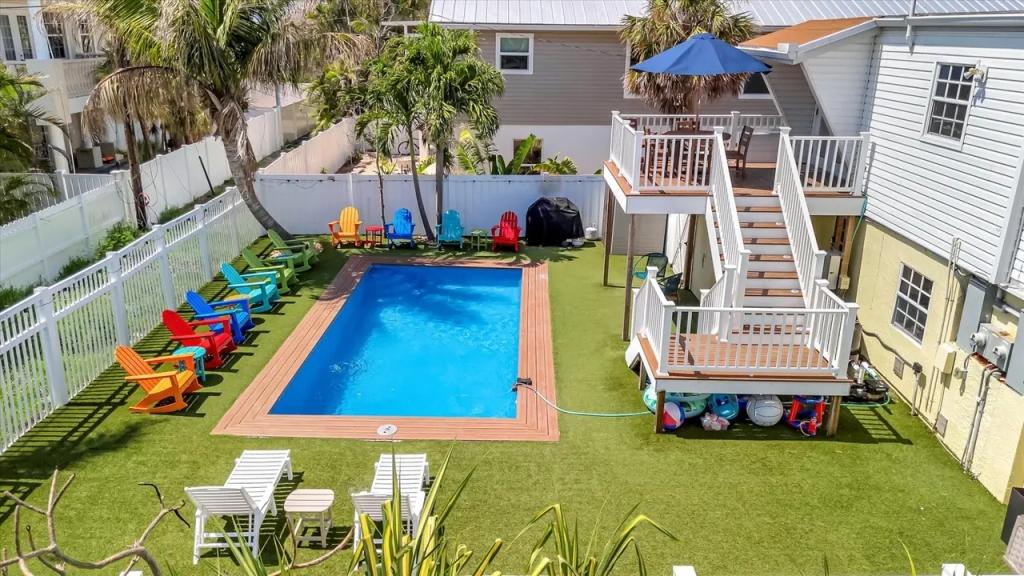 Breathe Inn - Entire Duplex, Beautiful House rental in Bradenton Beach has 5 bedrooms, 4 bathrooms, 14 sleeps, 1 minimum stay House for rent in Bradenton Beach Florida with the amenities and near by attractions , Air Conditioning, Balcony, Beach Chairs, Bicycles, Carbon monoxide detector, Fire extinguisher, Free WiFi, Heating, Kitchen, Linens Provided, Ocean View, Parking, Pet Friendly, Smoke detector, Swimming pool, Towels Provided, Washing Machine, Wireless Internet, Basic Soaps, Blender, Cable/Satellite TV, Ceiling Fans, Coffee Maker , Dining Area, Dishes & Utensils, Dishwasher, First-aid kit, Freezer, Hangers, Ice Maker, Iron & Board , Ironing Board, Kettle, Microwave, Outdoor Grill, Oven, Refrigerator, Shampoo, Stove, Toaster, Washer/Dryer , Bay/sound, Bird watching, Boating, Fishing, Hiking, Jet skiing, Kayaking, Scuba diving or snorkeling, Shopping, Surfing, Swimming, Water sports, Water tubing, Wildlife viewing, Wind-surfingHot water, Cooking basics, Room darkening shades, Clothing storage, Baking Sheet, Barbeque utensils, Wine glasses, Cleaning products, Outdoor dining, Outdoor furniture, Outdoor sunloungers, Pier fishing, Laptop Friendly workspace, Private entrance, Computer monitor, Fenced yard, Desk chair, Portable fans, Pack n play travel crib, Childrens dinnerware, Basketball court