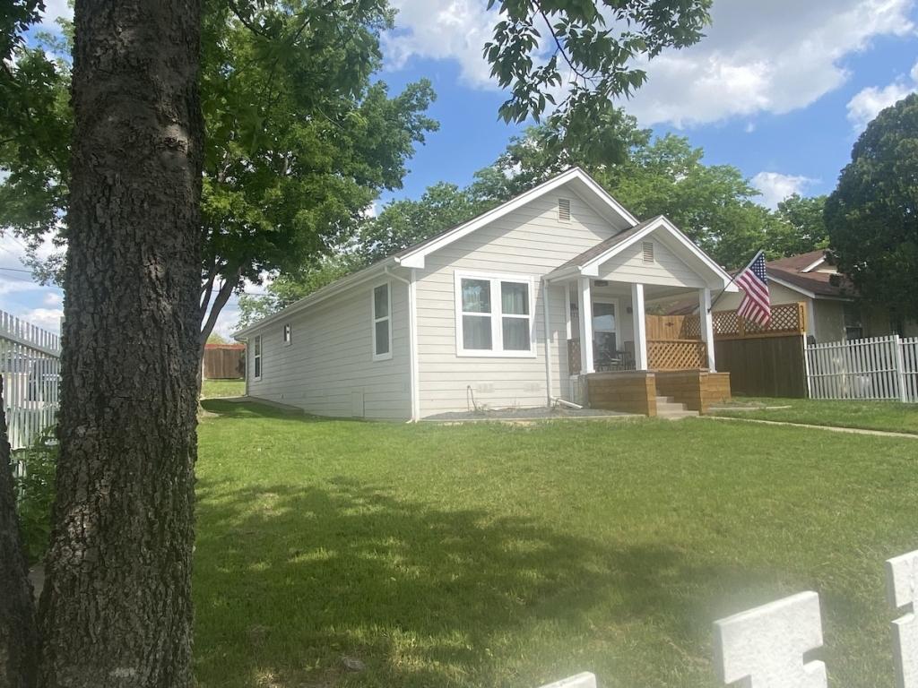 Stockyards Lee House, Beautiful Cottage rental in Fort Worth has 4 bedrooms, 2 bathrooms, 8 sleeps, 1 minimum stay Cottage for rent in Fort Worth Texas with the amenities and near by attractions , Air Conditioning, Deck/Patio, Free WiFi, Full Kitchen, Heating, Internet, Linens Provided, Managed by Owner, No Pets Allowed, Non-Smoking, Parking, Porch / Veranda, Towels Provided, Wireless Internet, Washing Machine, Kitchen, Children Welcome, Fire extinguisher, Children allowed, No Smoking, No parties/events, Smoke detector, Carbon-monoxide detector, Exterior lighting, Carbon monoxide detector, Blender, Microwave, Telephone, Cable/Satellite TV, Television, Ceiling Fans, Freezer, Oven, Toaster, Coffee Maker , Hair Dryer , Refrigerator, Washer/Dryer , Dishes & Utensils, Iron & Board , Stove, Dishwasher, First-aid kit, Clothes Dryer, Ice Maker, Dining Area, Basic Soaps, Toilet Paper, Living Room, Kettle, Shampoo, Hangers, Microwave/Air Fryer, Ironing Board, Swimming, Fishing, Museums, Water parks, Zoo, Horseback riding, Antiquing, Shopping, Golf, Hospital, laundromatHVAC, Queen size beds, covered front porch, covered back patio, 10 foot ceilings