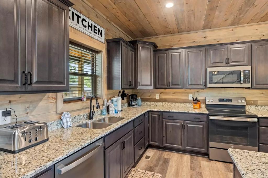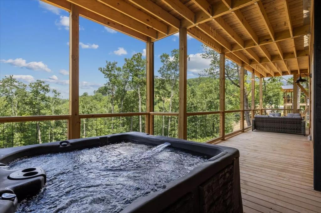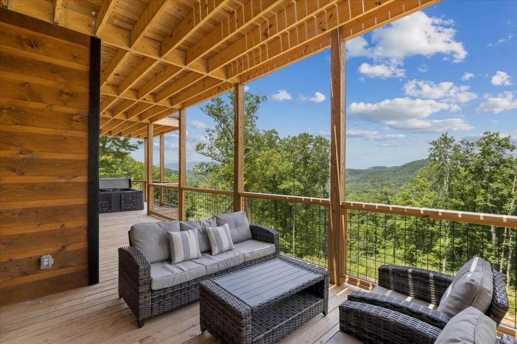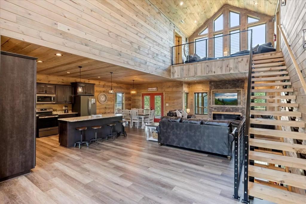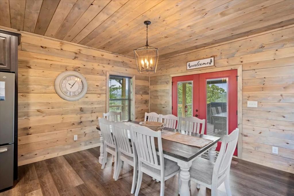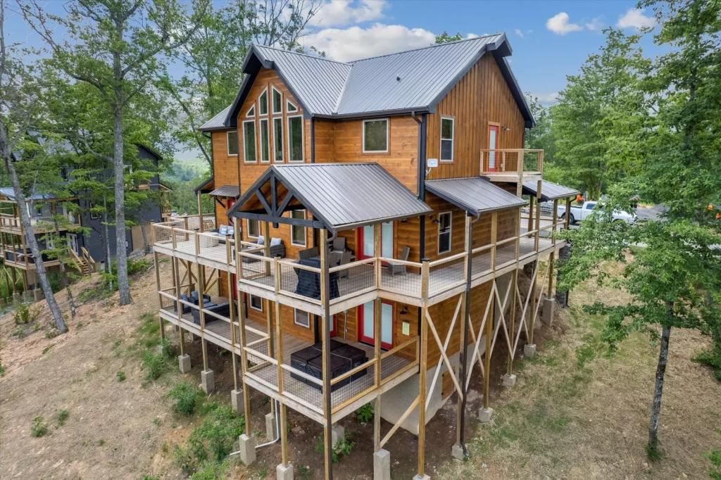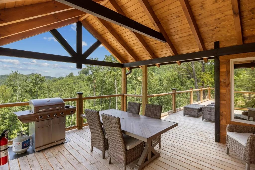 Red Sky Ridge, Beautiful Cabin rental in Sevierville has 5 bedrooms, 5.5 bathrooms, 12 sleeps, 1 minimum stay Cabin for rent in Sevierville Tennessee with the amenities and near by attractions , Air Conditioning, Deck/Patio, Free WiFi, Hot Tub, Linens Provided, Mountain View, No Pets Allowed, No Smoking, Non-Smoking, Pool Table, Blender, Dishes & Utensils, Dishwasher, Iron & Board , Microwave, Oven, Television, Toaster$400 worth of Free Tickets Daily, Baking Dishes, Close to Pigeon Forge Parkway, Fire Pit, Semi-secluded, Coffee Pot (1), Dishware/Flatware/Glasses, Ice Maker (1), Outdoor Furniture, Smart T.V.'s, Wide/Easy Access Roads, Arcade Games, Body Wash Starter Set, Gas Grill, Netflix, Wrap Around Decks, Area: Pigeon Forge, Central Heat, Decorated for Christmas, Electric Fireplace, High-End Outdoor Furniture, Theater Room