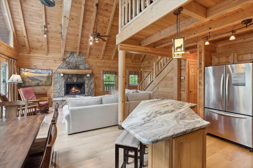 Wolf Den - Summit Cabin Rentals, Beautiful Cabin rental in Sevierville has 4 bedrooms, 3 bathrooms, 12 sleeps, 1 minimum stay Cabin for rent in Sevierville Tennessee with the amenities and near by attractions , Air Conditioning, Deck/Patio, Free WiFi, Hot Tub, Linens Provided, Mountain View, No Smoking, Non-Smoking, Pet Friendly, Pool Table, Swimming pool, Blender, Dishes & Utensils, Dishwasher, Iron & Board , Microwave, Oven, Television, Toaster$400 worth of Free Tickets Daily, Body Wash Starter Set, Secluded, Central Heat, Dishware/Flatware/Glasses, Gas Grill, Smart T.V.'s, Wide/Easy Access Roads, Baking Dishes, High-End Outdoor Furniture, Wooded View, Decorated for Christmas, Fire Pit, Wrap Around Decks