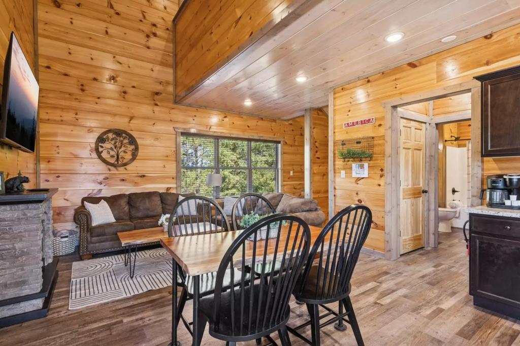 Smoky Blue Haven - Summit Cabin Rentals, Beautiful Cabin rental in Sevierville has 3 bedrooms, 3 bathrooms, 10 sleeps, 1 minimum stay Cabin for rent in Sevierville Tennessee with the amenities and near by attractions , Air Conditioning, Carbon monoxide detector, Children allowed, Children Welcome, Exterior lighting, Fire extinguisher, Fireplace, Free WiFi, Full Kitchen, Heated Pool, Heating, Hot Tub, Internet, Kid Friendly, Kitchen, Linens Provided, No parties/events, No Smoking, Non-Smoking, Pet Friendly, Smoke detector, Swimming pool, Towels Provided, Basic Soaps, Blender, Cable/Satellite TV, Ceiling Fans, Clothes Dryer, Coffee Grinder, Coffee Maker , Dining Area, Dishes & Utensils, Dishwasher, DVD Player, First-aid kit, Freezer, Hair Dryer , Hangers, Heater, Ice Maker, Ironing Board, Kettle, Living Room, Microwave, Outdoor Grill, Oven, Refrigerator, Shampoo, Stove, Telephone, Television, Toaster, Toilet Paper, Waffle Iron, Washer/Dryer , Antiquing, Basketball court, Bay/sound, Bird watching, Boating, Cross country skiing, Cycling, Duty free shops, Ecotourism, Fishing, fitness center, Gambling casinos, Golf, Golf Course Front, Golf Course View, golf privileges optional, Health/beauty spa, Hiking, Horseback riding, Hospital, Hunting, Kayaking, laundromat, Mountain biking, Mountain climbing, Museums, Outlet shopping, Paddle boating, Parasailing, Rock climbing, Sailing, Shopping, Ski lift privileges, Ski privileges optional, Skiing, Sledding, Snowboarding, Spelunking, Swimming, Theme parks, Water sports, Water tubing, Wildlife viewing, Wind-surfing, Winery tours, Zoo$400 worth of Free Tickets Daily, Area: Sevierville, Air Hockey Table, Dishware/Flatware/Glasses, Keurig, Deck Rocking Chairs, Body Wash Starter Set, Arcade Games