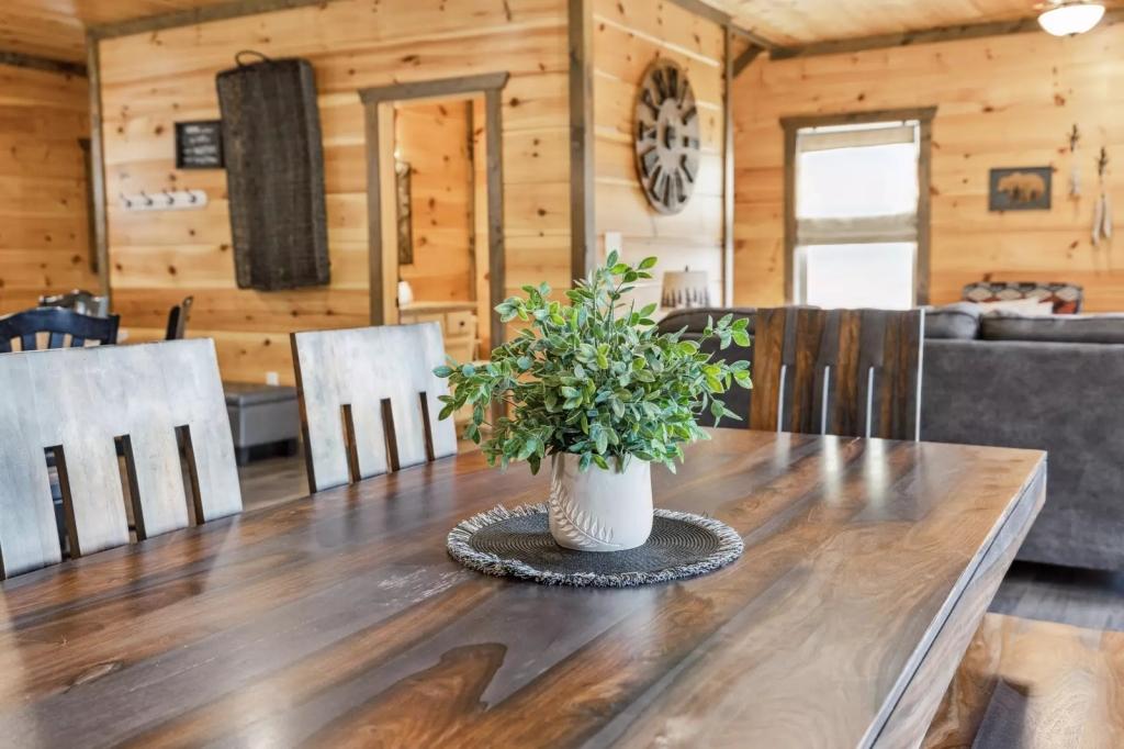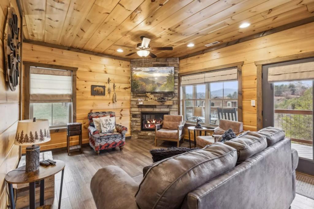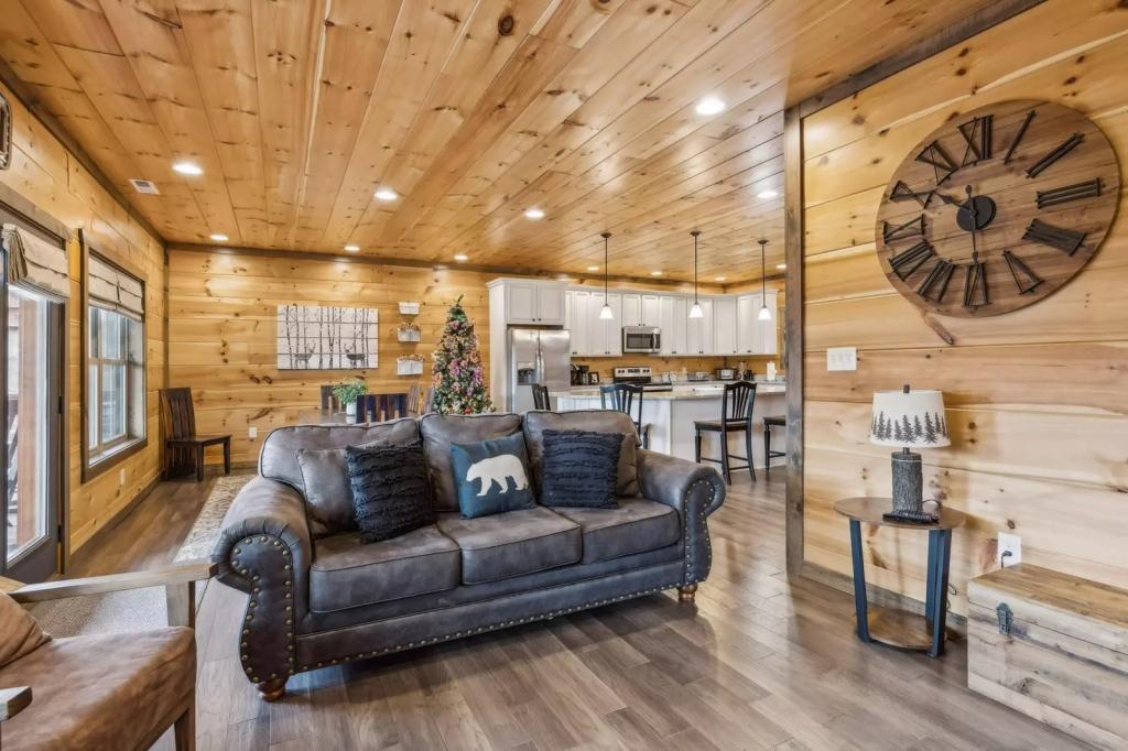 Eden Of The Smokies, Beautiful Cabin rental in Sevierville has 5 bedrooms, 5.5 bathrooms, 12 sleeps, 1 minimum stay Cabin for rent in Sevierville Tennessee with the amenities and near by attractions , Air Conditioning, Carbon monoxide detector, Children allowed, Children Welcome, Fire extinguisher, Fireplace, Free WiFi, Full Kitchen, Heating, Hot Tub, Internet, Kid Friendly, Kitchen, Linens Provided, No parties/events, No Pets Allowed, No Smoking, Non-Smoking, Parking, Smoke detector, Towels Provided, Basic Soaps, Blender, Cable/Satellite TV, Ceiling Fans, Clothes Dryer, Coffee Grinder, Coffee Maker , Dining Area, Dishes & Utensils, Dishwasher, DVD Player, First-aid kit, Freezer, Hair Dryer , Hangers, Heater, Ice Maker, Ironing Board, Living Room, Microwave, Outdoor Grill, Oven, Refrigerator, Shampoo, Stove, Telephone, Television, Toaster, Toilet Paper, Waffle Iron, Washer/Dryer , Antiquing, Basketball court, Bay/sound, Bird watching, Boating, Cross country skiing, Cycling, Duty free shops, Ecotourism, Fishing, fitness center, Gambling casinos, Golf, golf privileges optional, Health/beauty spa, Hiking, Horseback riding, Hospital, Hunting, laundromat, Mountain biking, Mountain climbing, Museums, Outlet shopping, Paddle boating, Parasailing, Rock climbing, Sailing, Shopping, Ski privileges optional, Sledding, Spelunking, Theme parks, Wildlife viewing, Wind-surfing, Winery tours, Zoo$400 worth of Free Tickets Daily, Charcoal Grill, Decorated for Christmas, Dishes/Utensils, Dishware/Flatware/Glasses, Arcade Games, Body Wash Starter Set, Deck Rocking Chairs, Area: Pigeon Forge, Keurig, Theater Room