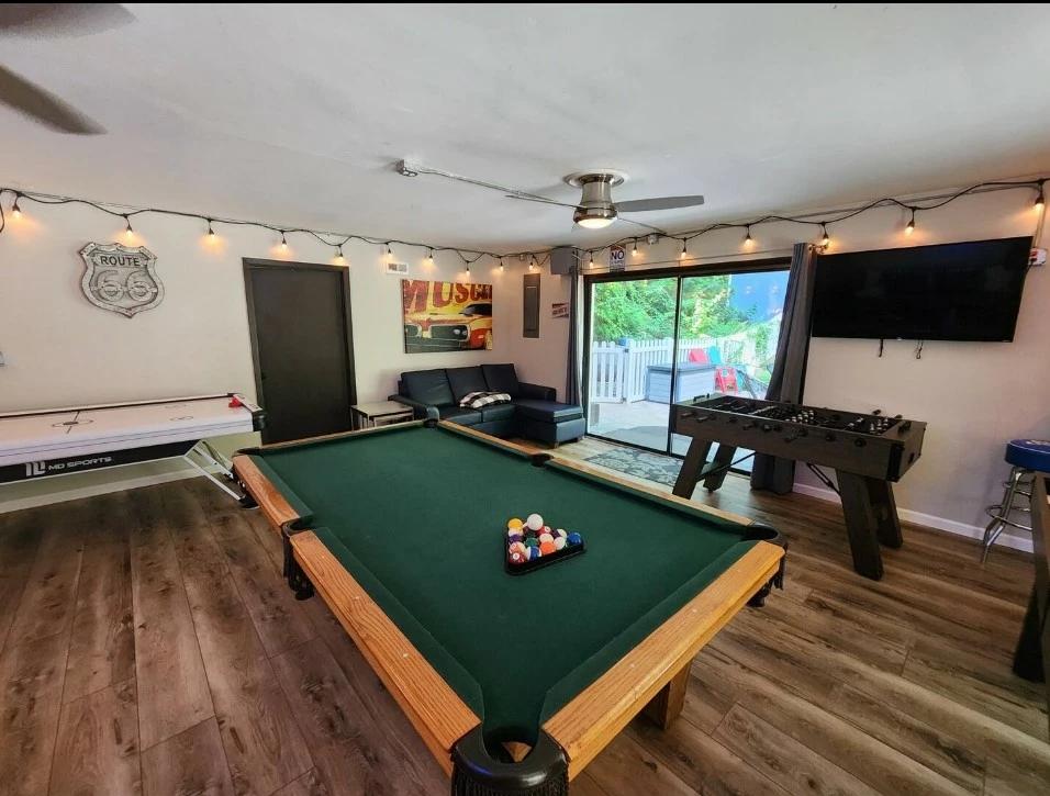 Smokin’ Blue Villa - Summit Cabin Rentals, Beautiful Villa rental in Gatlinburg has 3 bedrooms, 2 bathrooms, 8 sleeps, 1 minimum stay Villa for rent in Gatlinburg Tennessee with the amenities and near by attractions , Air Conditioning, Carbon monoxide detector, Children allowed, Children Welcome, Exterior lighting, Fire extinguisher, Free WiFi, Full Kitchen, Heated Pool, Heating, Hot Tub, Internet, Kid Friendly, Kitchen, Linens Provided, No parties/events, No Smoking, Non-Smoking, Paper Towels, Parking, Pet Friendly, Pool Table, Smoke detector, Towels Provided, Basic Soaps, Blender, Cable/Satellite TV, Ceiling Fans, Clothes Dryer, Coffee Grinder, Coffee Maker , Dining Area, Dishes & Utensils, Dishwasher, DVD Player, First-aid kit, Freezer, Hair Dryer , Hangers, Heater, Ice Maker, Ironing Board, Living Room, Microwave, Outdoor Grill, Oven, Refrigerator, Shampoo, Stove, Telephone, Television, Toaster, Toilet Paper, Waffle Iron, Washer/Dryer , Antiquing, Basketball court, Bay/sound, Bird watching, Boating, Cross country skiing, Cycling, Duty free shops, Ecotourism, fitness center, Gambling casinos, Golf, golf privileges optional, Health/beauty spa, Hiking, Horseback riding, Hospital, Hunting, laundromat, Mountain biking, Mountain climbing, Museums, Outlet shopping, Paddle boating, Parasailing, Rock climbing, Sailing, Shopping, Ski lift privileges, Ski privileges optional, Skiing, Sledding, Spelunking, Theme parks, Wildlife viewing, Wind-surfing, Winery tours, Zoo$400 worth of Free Tickets Daily, Semi-secluded, Air Hockey Table, Dishware/Flatware/Glasses, High-End Outdoor Furniture, Body Wash Starter Set, Arcade Games