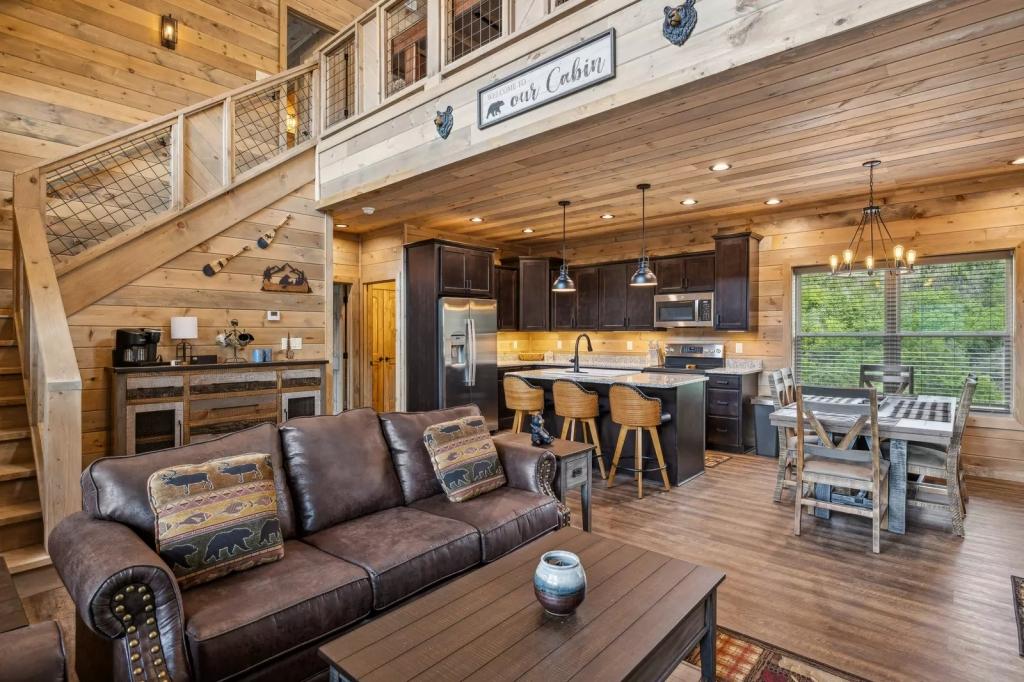 Retire to the luxurious main-level master bedroom with a king-size bed. The upstairs bedroom is spacious and has two twin-over-queen bunk beds. And for additional guests, the loft offers a convenient sleeper sofa.