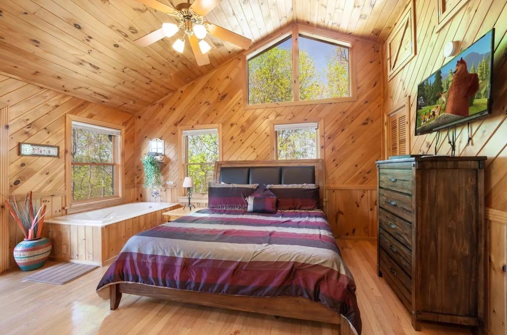 Holy Smoky - Summit Cabin Rentals, Beautiful Cabin rental in Sevierville has 3 bedrooms, 3 bathrooms, 6 sleeps, 1 minimum stay Cabin for rent in Sevierville Tennessee with the amenities and near by attractions , Air Conditioning, Carbon monoxide detector, Children allowed, Children Welcome, Exterior lighting, Fire extinguisher, Fireplace, Free WiFi, Full Kitchen, Heated Pool, Heating, Hot Tub, Internet, Kid Friendly, Kitchen, Linens Provided, No parties/events, No Pets Allowed, No Smoking, Non-Smoking, Paper Towels, Parking, Pool Table, Swimming pool, Towels Provided, Basic Soaps, Blender, Cable/Satellite TV, Ceiling Fans, Clothes Dryer, Coffee Grinder, Coffee Maker , Dining Area, Dishes & Utensils, Dishwasher, DVD Player, First-aid kit, Freezer, Hair Dryer , Hangers, Heater, Ice Maker, Ironing Board, Living Room, Microwave, Outdoor Grill, Oven, Refrigerator, Shampoo, Stove, Telephone, Television, Toaster, Toilet Paper, Waffle Iron, Washer/Dryer , Antiquing, Basketball court, Bay/sound, Bird watching, Boating, Cross country skiing, Cycling, Duty free shops, Ecotourism, fitness center, Gambling casinos, Golf, golf privileges optional, Health/beauty spa, Hiking, Horseback riding, Hospital, Hunting, laundromat, Mountain biking, Mountain climbing, Museums, Outlet shopping, Paddle boating, Rock climbing, Sailing, Shopping, Ski lift privileges, Ski privileges optional, Skiing, Sledding, Spelunking, Theme parks, Wildlife viewing, Wind-surfing, Winery tours, Zoo$400 worth of Free Tickets Daily, Basketball Court Access, Close to Pigeon Forge Parkway, Decorated for Christmas, Dishes/Utensils, Tennis Court Access, Secluded, Area: Pigeon Forge, Body Wash Starter Set, Dishware/Flatware/Glasses, Gated Resort, Smart T.V.'s, Baking Dishes, Deck Rocking Chairs