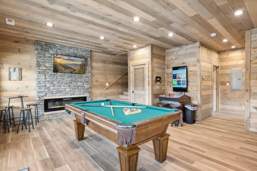 Little Bear Lodge - Summit Cabin Rentals, Beautiful Lodge rental in Sevierville has 3 bedrooms, 2.5 bathrooms, 12 sleeps, 1 minimum stay Lodge for rent in Sevierville Tennessee with the amenities and near by attractions , Air Conditioning, Carbon monoxide detector, Children allowed, Children Welcome, Exterior lighting, Fire extinguisher, Fireplace, Free WiFi, Full Kitchen, Heated Pool, Heating, Hot Tub, Internet, Kid Friendly, Kitchen, Linens Provided, No parties/events, No Pets Allowed, No Smoking, Non-Smoking, Paper Towels, Parking, Pet Friendly, Pool Table, Smoke detector, Swimming pool, Towels Provided, Basic Soaps, Blender, Cable/Satellite TV, Ceiling Fans, Clothes Dryer, Coffee Grinder, Coffee Maker , Dining Area, Dishes & Utensils, Dishwasher, DVD Player, First-aid kit, Freezer, Hair Dryer , Hangers, Heater, Ice Maker, Ironing Board, Living Room, Microwave, Outdoor Grill, Oven, Refrigerator, Shampoo, Stove, Telephone, Television, Toaster, Toilet Paper, Waffle Iron, Washer/Dryer , Antiquing, Basketball court, Bay/sound, Bird watching, Boating, Cross country skiing, Cycling, Duty free shops, Ecotourism, fitness center, Gambling casinos, Golf, golf privileges optional, Health/beauty spa, Hiking, Horseback riding, Hospital, Hunting, Jet skiing, laundromat, Mountain biking, Mountain climbing, Museums, Outlet shopping, Paddle boating, Parasailing, Rock climbing, Sailing, Shopping, Ski privileges optional, Skiing, Sledding, Snorkeling, Spelunking, Theme parks, Wildlife viewing, Wind-surfing, Winery tours, Zoo$400 worth of Free Tickets Daily, Dishware/Flatware/Glasses, Coffee Pot (1), Iron/Ironing Board, Full-Over-Full Bunk Bed (1), Semi-secluded, Tennis Court Access, Arcade Games, Body Wash Starter Set, Decorated for Christmas, Electric Fireplace, Outdoor Furniture, Gas Grill, Area: Pigeon Forge, Dishes/Utensils, Wrap Around Decks, Fire Pit