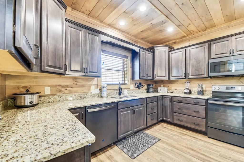 Stone Mountain Lodge | Summit Cabin Rentals, Beautiful Cabin rental in Sevierville has 4 bedrooms, 4.5 bathrooms, 12 sleeps, 1 minimum stay Cabin for rent in Sevierville Tennessee with the amenities and near by attractions , Air Conditioning, Carbon monoxide detector, Children allowed, Children Welcome, Exterior lighting, Fire extinguisher, Fireplace, Free WiFi, Full Kitchen, Heated Pool, Heating, Hot Tub, Internet, Kid Friendly, Kitchen, Linens Provided, No parties/events, No Pets Allowed, No Smoking, Non-Smoking, Paper Towels, Parking, Pool Table, Smoke detector, Towels Provided, Basic Soaps, Blender, Cable/Satellite TV, Ceiling Fans, Clothes Dryer, Coffee Grinder, Coffee Maker , Dining Area, Dishes & Utensils, Dishwasher, DVD Player, First-aid kit, Freezer, Hair Dryer , Hangers, Heater, Ice Maker, Ironing Board, Living Room, Microwave, Outdoor Grill, Oven, Refrigerator, Shampoo, Stove, Telephone, Television, Toaster, Toilet Paper, Waffle Iron, Washer/Dryer , Antiquing, Basketball court, Bay/sound, Bird watching, Boating, Cross country skiing, Cycling, Duty free shops, Ecotourism, fitness center, Gambling casinos, Golf, golf privileges optional, Health/beauty spa, Hiking, Horseback riding, Hospital, Hunting, laundromat, Mountain biking, Mountain climbing, Museums, Outlet shopping, Paddle boating, Parasailing, Rock climbing, Sailing, Shopping, Ski lift privileges, Ski privileges optional, Skiing, Sledding, Spelunking, Surfing, Theme parks, Wildlife viewing, Wind-surfing, Winery tours, Zoo$400 worth of Free Tickets Daily, Baking Dishes, Dishware/Flatware/Glasses, Wrap Around Decks, Theater Room, Secluded, Gas Grill, Arcade Games, Body Wash Starter Set, Decorated for Christmas, Keurig, Netflix, Wide/Easy Access Roads, Area: Pigeon Forge, High-End Outdoor Furniture, Wooded View