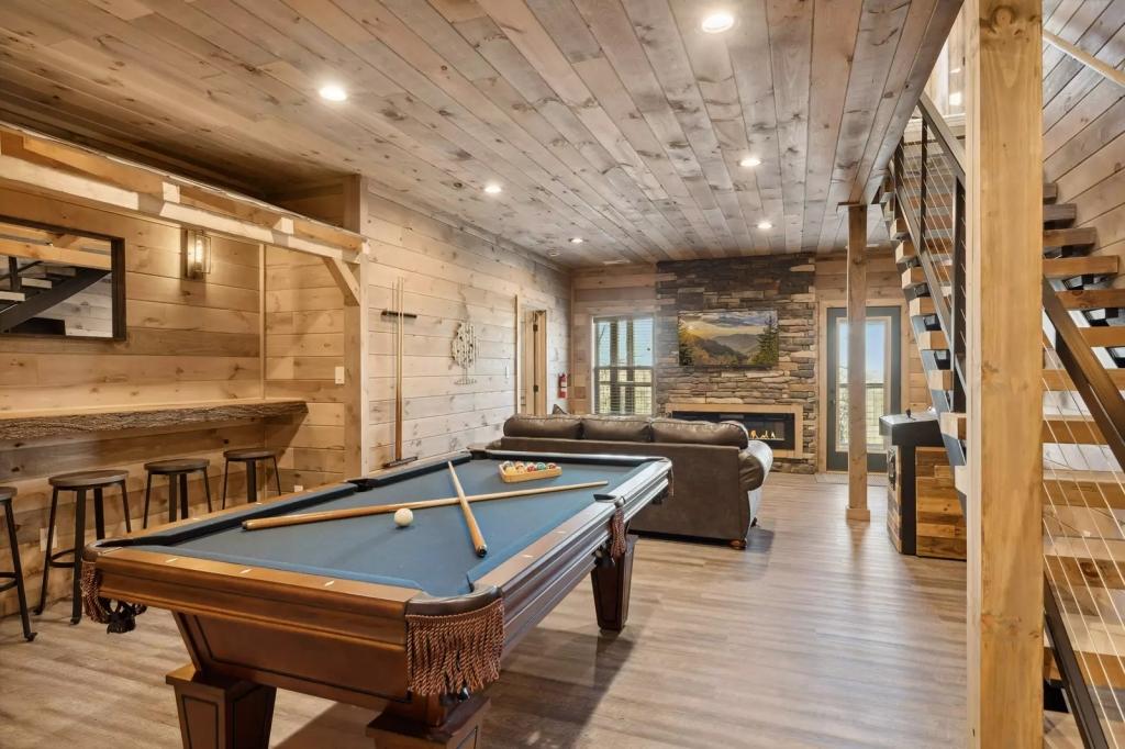 Treehouse Lodge | Summit Cabin Rentals, Beautiful Lodge rental in Sevierville has 5 bedrooms, 5.5 bathrooms, 12 sleeps, 1 minimum stay Lodge for rent in Sevierville Tennessee with the amenities and near by attractions , Air Conditioning, Carbon monoxide detector, Children allowed, Children Welcome, Deck/Patio, Exterior lighting, Fire extinguisher, Fireplace, Free WiFi, Full Kitchen, Heated Pool, Heating, Hot Tub, Internet, Kid Friendly, Kitchen, Linens Provided, No parties/events, No Pets Allowed, No Smoking, Non-Smoking, Paper Towels, Parking, Pet Friendly, Pool Table, Smoke detector, Towels Provided, Basic Soaps, Blender, Cable/Satellite TV, Ceiling Fans, Clothes Dryer, Coffee Grinder, Coffee Maker , Dining Area, Dishes & Utensils, Dishwasher, DVD Player, First-aid kit, Freezer, Hair Dryer , Hangers, Heater, Ice Maker, Ironing Board, Living Room, Microwave, Outdoor Grill, Oven, Refrigerator, Shampoo, Stove, Telephone, Television, Toaster, Toilet Paper, Waffle Iron, Washer/Dryer , Antiquing, Basketball court, Bay/sound, Bird watching, Boating, Cross country skiing, Cycling, Duty free shops, Ecotourism, fitness center, Gambling casinos, Golf, golf privileges optional, Health/beauty spa, Hiking, Horseback riding, Hospital, Hunting, Jet skiing, laundromat, Mountain biking, Mountain climbing, Museums, Outlet shopping, Paddle boating, Parasailing, Rock climbing, Sailing, Shopping, Ski lift privileges, Ski privileges optional, Skiing, Sledding, Spelunking, Theme parks, Wildlife viewing, Wind-surfing, Winery tours, Zoo$400 worth of Free Tickets Daily, Dishware/Flatware/Glasses, Baking Dishes, Semi-secluded, Tennis Court Access, Full-Over-Full Bunk Bed (1), Basketball Court Access, Theater Room, Electric Fireplace, Arcade Games, Keurig, High-End Outdoor Furniture, Body Wash Starter Set, Area: Pigeon Forge