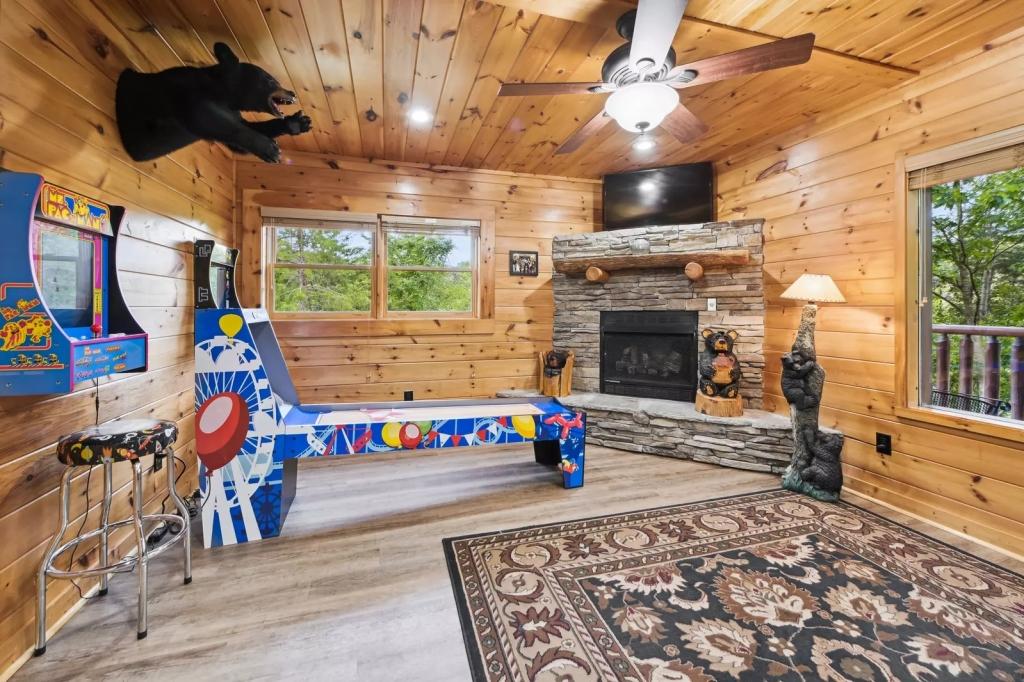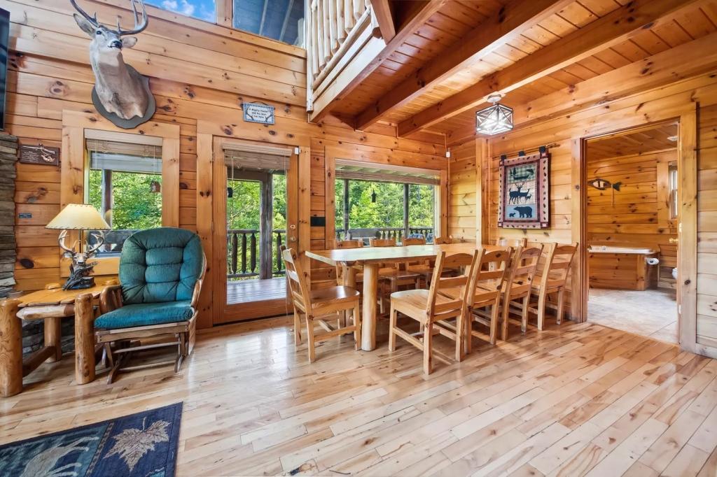 Wilderness Lodge | Summit Cabin Rentals, Beautiful Lodge rental in Sevierville has 3 bedrooms, 3 bathrooms, 12 sleeps, 1 minimum stay Lodge for rent in Sevierville Tennessee with the amenities and near by attractions , Air Conditioning, Carbon monoxide detector, Children allowed, Children Welcome, Exterior lighting, Fire extinguisher, Fireplace, Full Kitchen, Heated Pool, Heating, Hot Tub, Internet, Kid Friendly, Kitchen, Linens Provided, No parties/events, No Pets Allowed, No Smoking, Non-Smoking, Paper Towels, Parking, Pool Table, Smoke detector, Towels Provided, Basic Soaps, Blender, Cable/Satellite TV, Ceiling Fans, Clothes Dryer, Coffee Grinder, Coffee Maker , Dining Area, Dishes & Utensils, Dishwasher, DVD Player, First-aid kit, Freezer, Hair Dryer , Hangers, Heater, Ice Maker, Ironing Board, Kettle, Living Room, Microwave, Outdoor Grill, Oven, Shampoo, Stove, Telephone, Television, Toaster, Toilet Paper, Waffle Iron, Washer/Dryer , Antiquing, Basketball court, Bay/sound, Bird watching, Boating, Cross country skiing, Cycling, Duty free shops, Ecotourism, fitness center, Gambling casinos, Golf, golf privileges optional, Health/beauty spa, Hiking, Horseback riding, Hospital, Hunting, Jet skiing, laundromat, Mountain biking, Mountain climbing, Museums, Outlet shopping, Paddle boating, Parasailing, Rock climbing, Sailing, Shopping, Ski lift privileges, Ski privileges optional, Skiing, Sledding, Spelunking, Surfing, Theme parks, Wildlife viewing, Wind-surfing, Winery tours, Zoo$400 worth of Free Tickets Daily, Charcoal Grill, Baking Dishes, Wide/Easy Access Roads, Dishware/Flatware/Glasses, High-End Outdoor Furniture, Body Wash Starter Set, Arcade Games, Area: Pigeon Forge, Decorated for Christmas, Outdoor Furniture