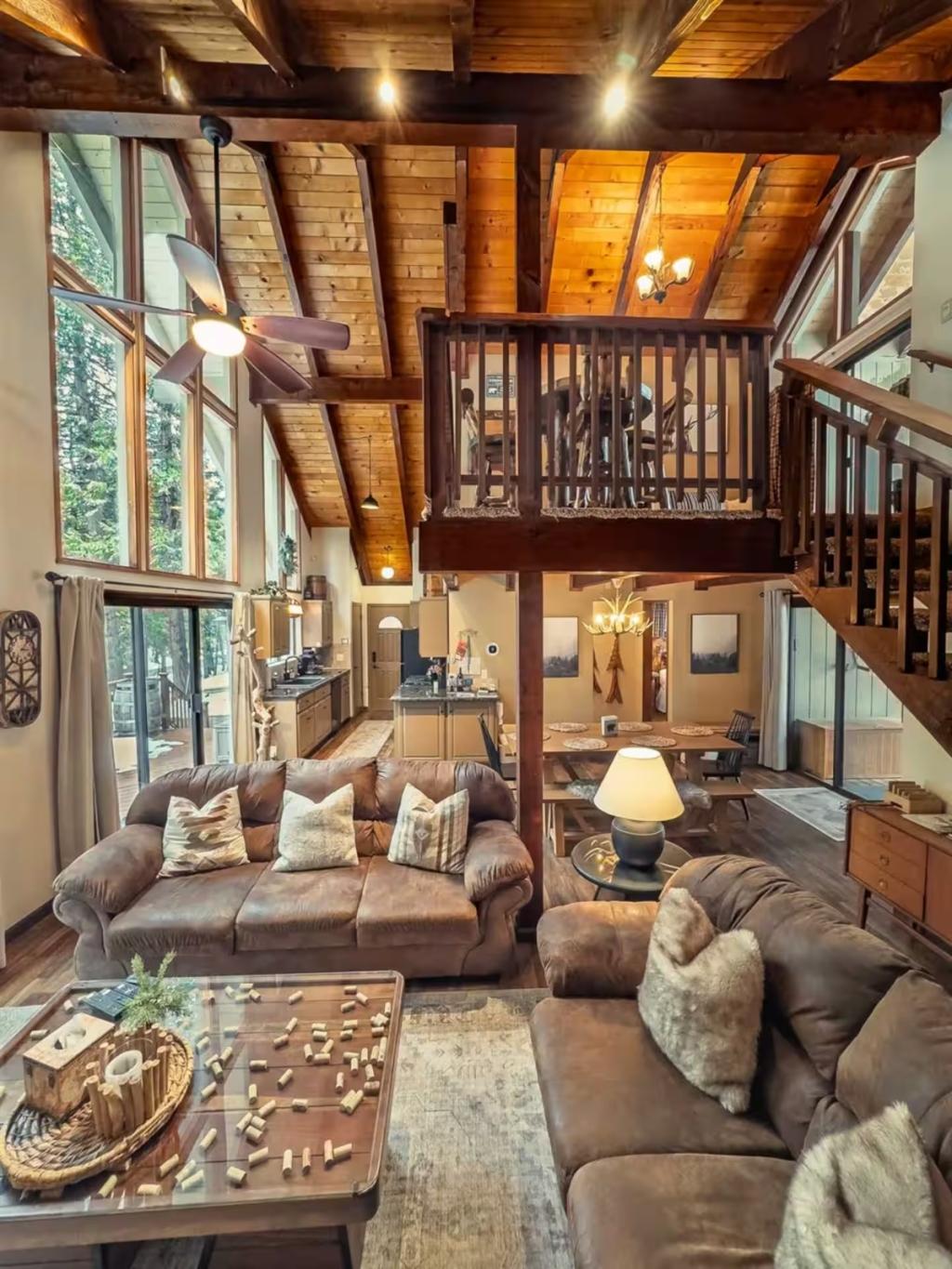 Evergreen Pinecone Cottage • Hot Tub • Espresso, Beautiful Cabin rental in Arnold has 3 bedrooms, 2 bathrooms, 6 sleeps, 1 minimum stay Cabin for rent in Arnold California with the amenities and near by attractions , Air Conditioning, Carbon monoxide detector, Children allowed, Children Welcome, Exterior lighting, Fire extinguisher, Fireplace, Free WiFi, Full Kitchen, Heated Pool, Heating, Hot Tub, Internet, Kitchen, Linens Provided, Mountain View, No parties/events, No Smoking, Non-Smoking, Paper Towels, Parking, Pet Friendly, Smoke detector, Towels Provided, Basic Soaps, Blender, Cable/Satellite TV, Ceiling Fans, Clothes Dryer, Coffee Grinder, Coffee Maker , Dining Area, Dishes & Utensils, Dishwasher, DVD Player, First-aid kit, Freezer, Hair Dryer , Hangers, Heater, Ice Maker, Ironing Board, Microwave, Mini Refrigerator, Outdoor Grill, Oven, Refrigerator, Shampoo, Stove, Telephone, Television, Toaster, Toilet Paper, Waffle Iron, Washer/Dryer , Antiquing, Basketball court, Bay/sound, Bird watching, Boating, Cross country skiing, Cycling, Duty free shops, Ecotourism, fitness center, Gambling casinos, Golf, golf privileges optional, Health/beauty spa, Hiking, Horseback riding, Hospital, Hunting, Ice skating, laundromat, Mountain biking, Mountain climbing, Museums, Outlet shopping, Paddle boating, Parasailing, Rock climbing, Sailing, Shopping, Ski lift privileges, Ski privileges optional, Skiing, Sledding, Snorkeling, Snowboarding, Snowmobiling, Spelunking, Theme parks, Wildlife viewing, Wind-surfing, Winery tours, ZooLong-term stays allowed, Barbecue utensils, Baking sheet, Wine glasses, GE gas cooker, Dishes and cutlery, Cooking basics, Fast wifi – 257 Mbps, Exterior security cameras on property, Baby safety gates, Board games, Children’s books and toys, Books and reading material