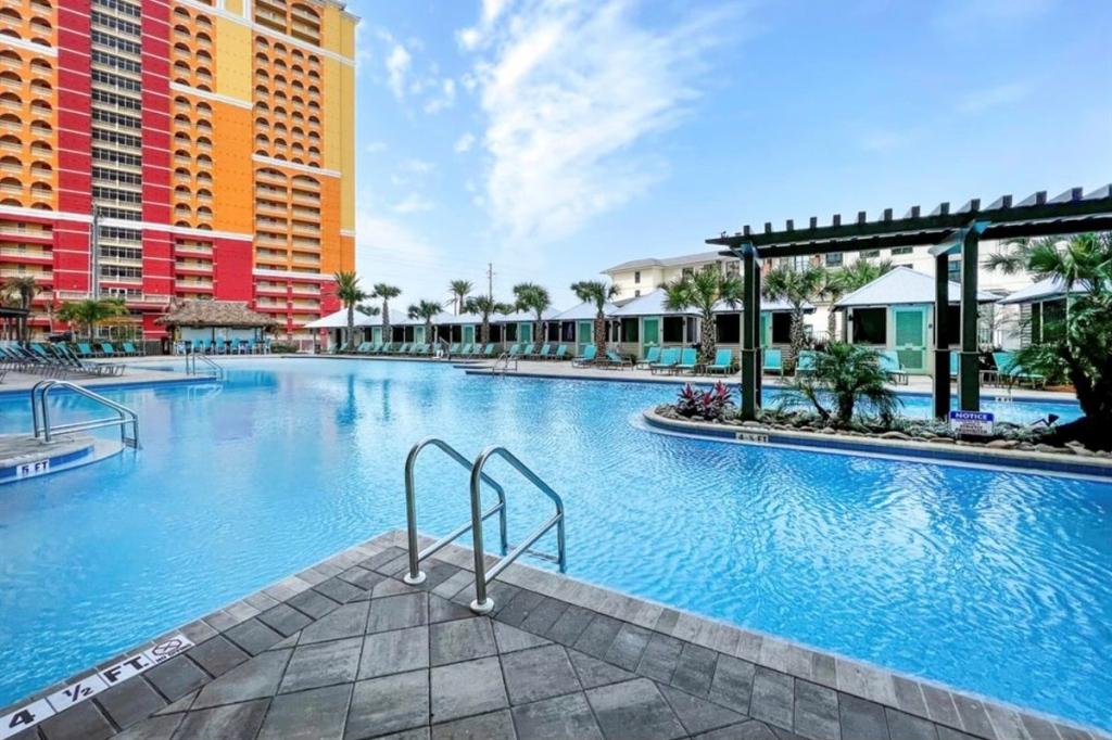 Calypso 3-1411 - Beach N View is a New (opened in 2021) luxury 3 bedroom, 2 bathroom, ocean view, condo located in Panama City Beach next to the Embassy Suite Convention Center and Pier Park. Beach N View sleeps 9 guests comfortably. Enjoy spectacular 14th-floor gulf/sunset/pier views from your private balcony! It has the best sunsets I have ever seen. Walking distance to all the shops and restaurants at Pier Park. Huge heated resort pool, hot tub, fire pit, tikki bar, and restaurant.