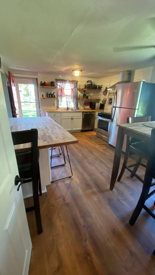 Eighth Street Escape, Beautiful House rental in Ohio has 3 bedrooms, 2 bathrooms, 7 sleeps, 1 minimum stay House for rent in Ohio United States of America with the amenities and near by attractions , Air Conditioning, Carbon monoxide detector, Children allowed, Children Welcome, Exterior lighting, Fire extinguisher, Fireplace, Free WiFi, Full Kitchen, Heating, Hot Tub, Internet, Kid Friendly, Kitchen, Linens Provided, No parties/events, No Smoking, Non-Smoking, Paper Towels, Parking, Pet Friendly, Smoke detector, Towels Provided, Washing Machine, Basic Soaps, Blender, Cable/Satellite TV, Ceiling Fans, Clothes Dryer, Coffee Grinder, Coffee Maker , Dining Area, Dishes & Utensils, Dishwasher, DVD Player, First-aid kit, Freezer, Hair Dryer , Hangers, Heater, Ice Maker, Ironing Board, Kettle, Living Room, Microwave, Outdoor Grill, Oven, Refrigerator, Shampoo, Stove, Telephone, Television, Toaster, Toilet Paper, Waffle Iron, Washer/Dryer Conditioner, Body soap, Hot water, 55-inch HDTV with Hulu, Travel cot – available upon request, Central air conditioning, Dedicated workspace, Fridge, Cooking basics, Dishes and cutlery, Outdoor furniture, Outdoor dining area, BBQ grill, Private hot tub – available seasonally