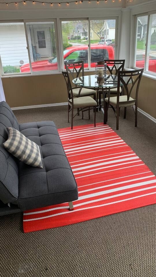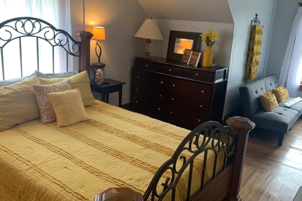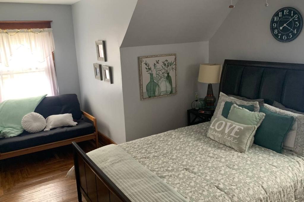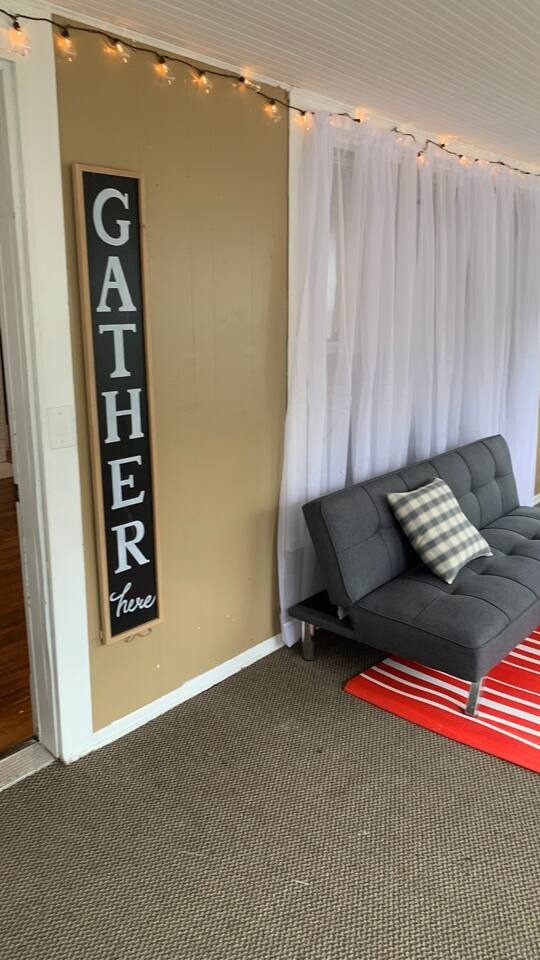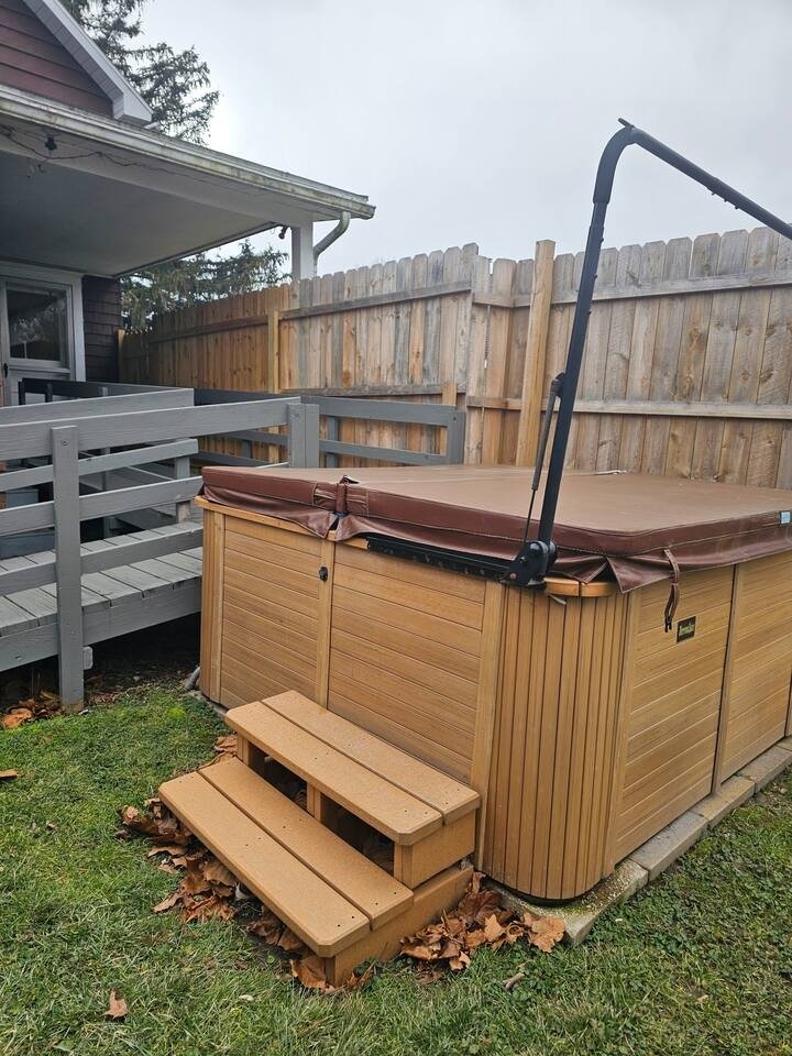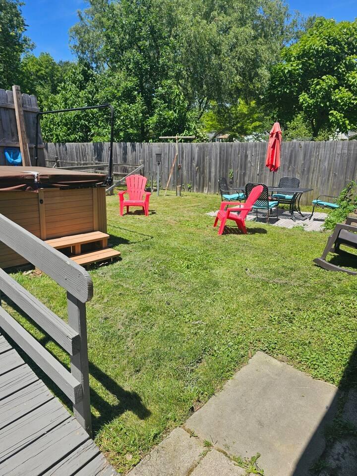 Gina's House, Beautiful Cottage rental in Ohio has 4 bedrooms, 3 bathrooms, 12 sleeps, 1 minimum stay Cottage for rent in Ohio United States of America with the amenities and near by attractions , Air Conditioning, Carbon monoxide detector, Children allowed, Children Welcome, Exterior lighting, Fire extinguisher, Free WiFi, Full Kitchen, Heated Pool, Heating, Hot Tub, Internet, Kid Friendly, Kitchen, Linens Provided, No parties/events, No Smoking, Non-Smoking, Paper Towels, Parking, Pet Friendly, Smoke detector, Towels Provided, Basic Soaps, Blender, Cable/Satellite TV, Ceiling Fans, Clothes Dryer, Coffee Grinder, Coffee Maker , Dining Area, Dishes & Utensils, Dishwasher, DVD Player, First-aid kit, Freezer, Hair Dryer , Hangers, Heater, Ice Maker, Ironing Board, Kettle, Living Room, Microwave, Outdoor Grill, Oven, Refrigerator, Shampoo, Stove, Telephone, Television, Toaster, Toilet Paper, Waffle Iron, Washer/Dryer Extra pillows and blankets, 55-inch HDTV with Roku, Exercise equipment, Children’s tableware, Window AC unit, Exterior security cameras on property, Dedicated workspace, Fridge, Cooking basics, Dishes and cutlery, Electric cooker, Stainless steel single oven, Private back garden – Fully fenced, Outdoor dining area