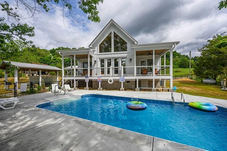 The Farmhouse - Bear Tracts Vacation Cabins, Beautiful Cabin rental in Sevierville has 2 bedrooms, 2 bathrooms, 4 sleeps, 1 minimum stay Cabin for rent in Sevierville Tennessee with the amenities and near by attractions , Air Conditioning, Balcony, Carbon monoxide detector, Children allowed, Children Welcome, Deck/Patio, Exterior lighting, Fire extinguisher, Fireplace, Free WiFi, Full Kitchen, Game Room, Heated Pool, Heating, Hot Tub, Internet, Kid Friendly, Kitchen, Kitchenette, Linens Provided, Mountain View, Paper Towels, Parking, Private Pool, Towels Provided, Washing Machine, Wireless Internet, Basic Soaps, Blender, Cable/Satellite TV, Ceiling Fans, Clothes Dryer, Coffee Grinder, Coffee Maker , Dining Area, Dishes & Utensils, Dishwasher, DVD Player, First-aid kit, Freezer, Hair Dryer , Hangers, Heater, Ice Maker, Ironing Board, Kettle, Living Room, Microwave, Outdoor Grill, Oven, Refrigerator, Shampoo, Stove, Telephone, Television, Toaster, Toilet Paper, Waffle Iron, Washer/Dryer , Antiquing, Basketball court, Bay/sound, Bird watching, Boating, Cross country skiing, Cycling, Duty free shops, Ecotourism, fitness center, Gambling casinos, golf privileges optional, Health/beauty spa, Hiking, Horseback riding, Hospital, Hunting, Jet skiing, laundromat, Mountain biking, Mountain climbing, Museums, Outlet shopping, Paddle boating, Parasailing, Rock climbing, Sailing, Shopping, Ski lift privileges, Ski privileges optional, Sledding, Spelunking, Theme parks, Wildlife viewing, Wind-surfing, Winery tours, ZooCommunity/Resort Pool, Private Indoor Pool, Fire Pit or Outdoor Fireplace