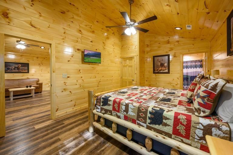 Mountain Music - Bear Tracts Vacation Cabins, Beautiful Cabin rental in Pigeon Forge has 2 bedrooms, 2.5 bathrooms, 8 sleeps, 1 minimum stay Cabin for rent in Pigeon Forge Tennessee with the amenities and near by attractions , Air Conditioning, Balcony, Carbon monoxide detector, Children allowed, Children Welcome, Deck/Patio, Exterior lighting, Fire extinguisher, Fireplace, Free WiFi, Full Kitchen, Game Room, Heated Pool, Heating, Hot Tub, Indoor Pool, Internet, Kid Friendly, Kitchen, Kitchenette, Linens Provided, Paper Towels, Parking, Private Pool, Towels Provided, Washing Machine, Wireless Internet, Basic Soaps, Blender, Cable/Satellite TV, Ceiling Fans, Clothes Dryer, Coffee Grinder, Coffee Maker , Dining Area, Dishes & Utensils, Dishwasher, DVD Player, First-aid kit, Freezer, Hair Dryer , Hangers, Heater, Ice Maker, Ironing Board, Kettle, Living Room, Microwave, Outdoor Grill, Oven, Refrigerator, Shampoo, Stove, Telephone, Television, Toaster, Toilet Paper, Waffle Iron, Washer/Dryer , Antiquing, Basketball court, Bay/sound, Bird watching, Boating, Cross country skiing, Cycling, Duty free shops, Ecotourism, fitness center, Gambling casinos, golf privileges optional, Health/beauty spa, Hiking, Horseback riding, Hospital, Hunting, Jet skiing, laundromat, Mountain biking, Mountain climbing, Museums, Outlet shopping, Paddle boating, Parasailing, Rock climbing, Sailing, Shopping, Ski lift privileges, Ski privileges optional, Sledding, Spelunking, Wildlife viewing, Wind-surfing, Winery tours, ZooCommunity/Resort Pool, Private Indoor Pool, Fire Pit or Outdoor Fireplace