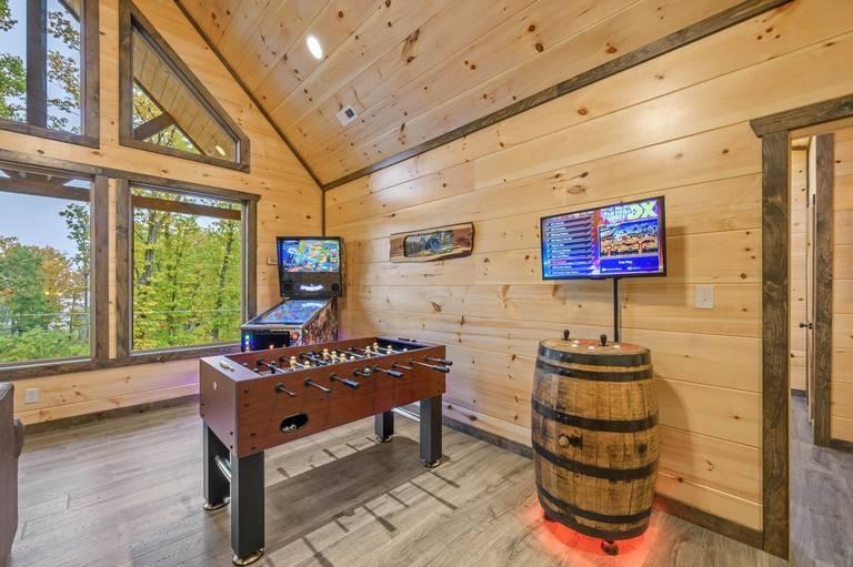Pine Coney Island - Bear Tracts Vacation Cabins, Beautiful Cabin rental in Gatlinburg has 3 bedrooms, 3 bathrooms, 10 sleeps, 1 minimum stay Cabin for rent in Gatlinburg Tennessee with the amenities and near by attractions , Air Conditioning, Balcony, Carbon monoxide detector, Children allowed, Children Welcome, Deck/Patio, Exterior lighting, Fire extinguisher, Fireplace, Free WiFi, Full Kitchen, Game Room, Heated Pool, Heating, Hot Tub, Indoor Pool, Internet, Kid Friendly, Kitchen, Kitchenette, Linens Provided, Paper Towels, Parking, Private Pool, Towels Provided, Washing Machine, Wireless Internet, Basic Soaps, Blender, Cable/Satellite TV, Ceiling Fans, Clothes Dryer, Coffee Grinder, Coffee Maker , Dining Area, Dishes & Utensils, Dishwasher, DVD Player, First-aid kit, Freezer, Hair Dryer , Hangers, Heater, Ice Maker, Ironing Board, Kettle, Living Room, Microwave, Outdoor Grill, Oven, Refrigerator, Shampoo, Stove, Telephone, Television, Toaster, Toilet Paper, Waffle Iron, Washer/Dryer , Antiquing, Basketball court, Bay/sound, Bird watching, Boating, Cross country skiing, Cycling, Duty free shops, Ecotourism, fitness center, Gambling casinos, Golf Course Front, golf privileges optional, Health/beauty spa, Hiking, Horseback riding, Hospital, Hunting, Jet skiing, laundromat, Mountain biking, Mountain climbing, Museums, Outlet shopping, Paddle boating, Parasailing, Rock climbing, Sailing, Shopping, Ski lift privileges, Ski privileges optional, Sledding, Spelunking, Theme parks, Wildlife viewing, Wind-surfing, Winery tours, ZooCommunity/Resort Pool, Private Indoor Pool, Fire Pit or Outdoor Fireplace