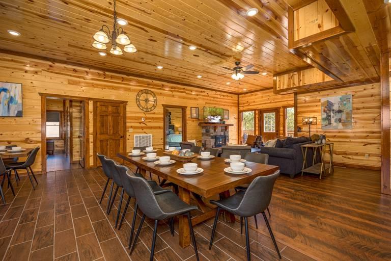 Bear Hands Retreat - Bear Tracts Vacation Cabins, Beautiful Cabin rental in Sevierville has 8 bedrooms, 8 bathrooms, 30 sleeps, 1 minimum stay Cabin for rent in Sevierville Tennessee with the amenities and near by attractions , Air Conditioning, Balcony, Carbon monoxide detector, Children allowed, Children Welcome, Deck/Patio, Exterior lighting, Fire extinguisher, Fireplace, Free WiFi, Full Kitchen, Game Room, Heated Pool, Heating, Hot Tub, Internet, Kid Friendly, Kitchen, Kitchenette, Linens Provided, Mountain View, Paper Towels, Parking, Private Pool, Towels Provided, Washing Machine, Wireless Internet, Basic Soaps, Blender, Cable/Satellite TV, Ceiling Fans, Clothes Dryer, Coffee Grinder, Coffee Maker , Dining Area, Dishes & Utensils, Dishwasher, DVD Player, First-aid kit, Freezer, Hair Dryer , Hangers, Heater, Ice Maker, Kettle, Living Room, Microwave, Microwave/Air Fryer, Outdoor Grill, Oven, Refrigerator, Shampoo, Stove, Telephone, Television, Toaster, Toilet Paper, Waffle Iron, Washer/Dryer , Antiquing, Basketball court, Bay/sound, Bird watching, Boating, Cross country skiing, Cycling, Duty free shops, Ecotourism, fitness center, Gambling casinos, golf privileges optional, Health/beauty spa, Hiking, Horseback riding, Hospital, Hunting, Jet skiing, laundromat, Mountain biking, Mountain climbing, Museums, Outlet shopping, Paddle boating, Parasailing, Rock climbing, Sailing, Shopping, Ski lift privileges, Ski privileges optional, Sledding, Spelunking, Theme parks, Wildlife viewing, Wind-surfing, Winery tours, ZooCommunity/Resort Pool, Private Indoor Pool, Fire Pit or Outdoor Fireplace