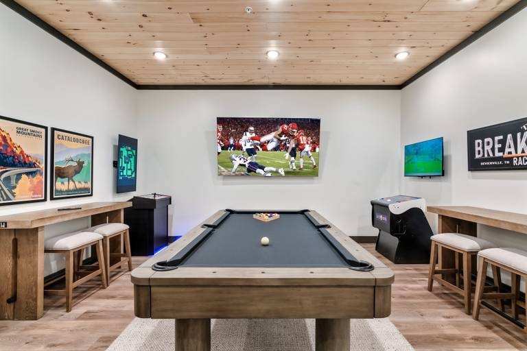 Smokies Sunrise Splash - Bear Tracts Vacation Cabins, Beautiful Cabin rental in Sevierville has 6 bedrooms, 5 bathrooms, 20 sleeps, 1 minimum stay Cabin for rent in Sevierville Tennessee with the amenities and near by attractions , Air Conditioning, Balcony, Carbon monoxide detector, Children allowed, Children Welcome, Deck/Patio, Exterior lighting, Fire extinguisher, Fireplace, Free WiFi, Full Kitchen, Game Room, Heated Pool, Heating, Hot Tub, Indoor Pool, Internet, Kid Friendly, Kitchen, Kitchenette, Linens Provided, Paper Towels, Parking, Private Pool, Towels Provided, Washing Machine, Wireless Internet, Basic Soaps, Blender, Cable/Satellite TV, Ceiling Fans, Clothes Dryer, Coffee Grinder, Coffee Maker , Dining Area, Dishes & Utensils, Dishwasher, DVD Player, First-aid kit, Freezer, Hair Dryer , Hangers, Heater, Ice Maker, Ironing Board, Kettle, Living Room, Microwave, Outdoor Grill, Oven, Refrigerator, Shampoo, Stove, Telephone, Television, Toaster, Toilet Paper, Waffle Iron, Washer/Dryer , Antiquing, Basketball court, Bay/sound, Bird watching, Boating, Cross country skiing, Cycling, Duty free shops, Ecotourism, fitness center, Gambling casinos, golf privileges optional, Health/beauty spa, Hiking, Horseback riding, Hospital, Hunting, Jet skiing, laundromat, Mountain biking, Mountain climbing, Museums, Outlet shopping, Paddle boating, Parasailing, Rock climbing, Sailing, Shopping, Ski lift privileges, Ski privileges optional, Sledding, Spelunking, Theme parks, Wildlife viewing, Wind-surfing, Winery tours, ZooCommunity/Resort Pool, Private Indoor Pool, Fire Pit or Outdoor Fireplace