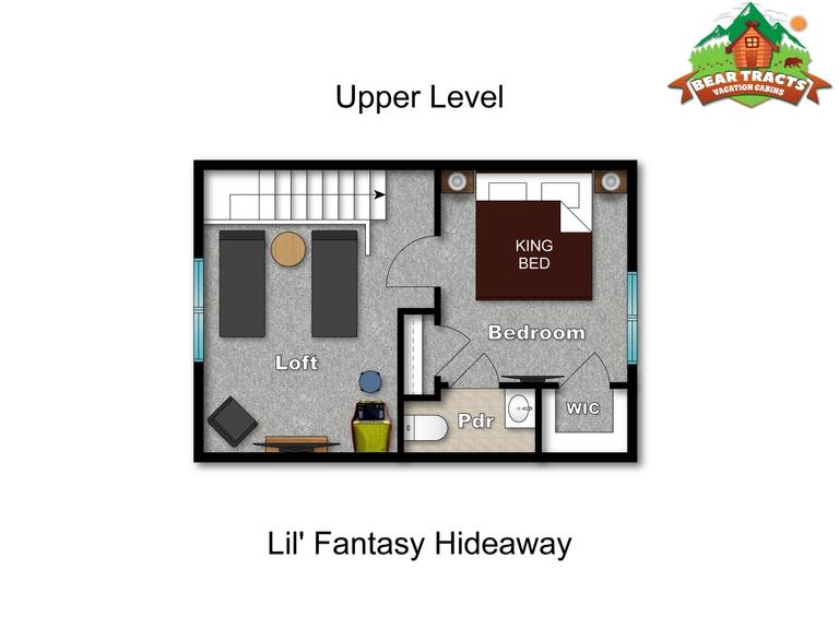 Little Fantasy Hideaway- Bear Tracts Vacation Cabins, Beautiful Cabin rental in Pigeon Forge has 1 bedrooms, 1.5 bathrooms, 4 sleeps, 1 minimum stay Cabin for rent in Pigeon Forge Tennessee with the amenities and near by attractions , Air Conditioning, Balcony, Carbon monoxide detector, Children allowed, Children Welcome, Deck/Patio, Exterior lighting, Fire extinguisher, Fireplace, Free WiFi, Full Kitchen, Game Room, Heated Pool, Heating, Hot Tub, Indoor Pool, Internet, Kid Friendly, Kitchen, Kitchenette, Linens Provided, Mountain View, Paper Towels, Parking, Private Pool, Towels Provided, Washing Machine, Wireless Internet, Basic Soaps, Blender, Cable/Satellite TV, Ceiling Fans, Clothes Dryer, Coffee Grinder, Coffee Maker , Dining Area, Dishes & Utensils, Dishwasher, DVD Player, First-aid kit, Freezer, Hair Dryer , Hangers, Heater, Ice Maker, Ironing Board, Kettle, Living Room, Microwave, Outdoor Grill, Oven, Refrigerator, Shampoo, Stove, Telephone, Television, Toaster, Toilet Paper, Waffle Iron, Washer/Dryer , Antiquing, Basketball court, Bay/sound, Bird watching, Cross country skiing, Cycling, Duty free shops, Ecotourism, fitness center, Gambling casinos, golf privileges optional, Health/beauty spa, Hiking, Horseback riding, Hospital, Hunting, Jet skiing, laundromat, Mountain biking, Mountain climbing, Museums, Outlet shopping, Paddle boating, Parasailing, Rock climbing, Sailing, Shopping, Ski lift privileges, Ski privileges optional, Sledding, Spelunking, Theme parks, Wildlife viewing, Wind-surfing, Winery tours, ZooCommunity/Resort Pool, Private Indoor Pool, Fire Pit or Outdoor Fireplace