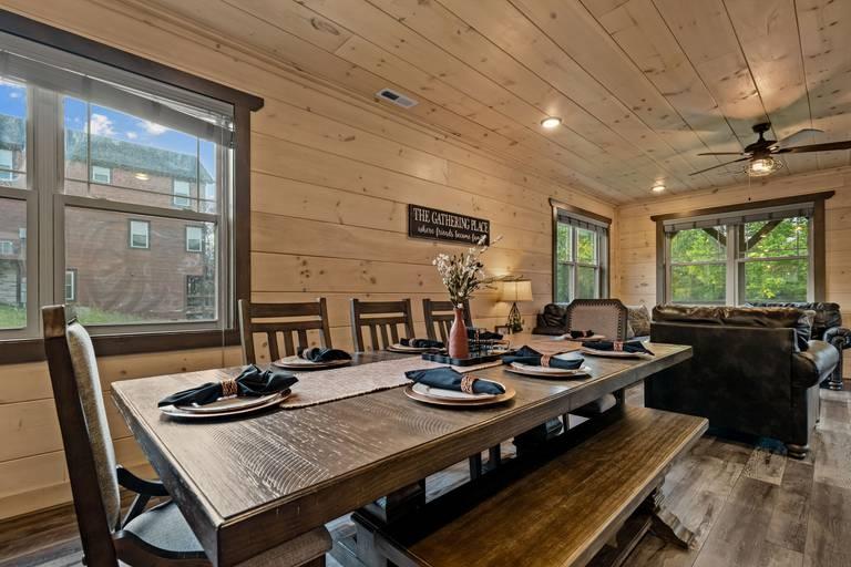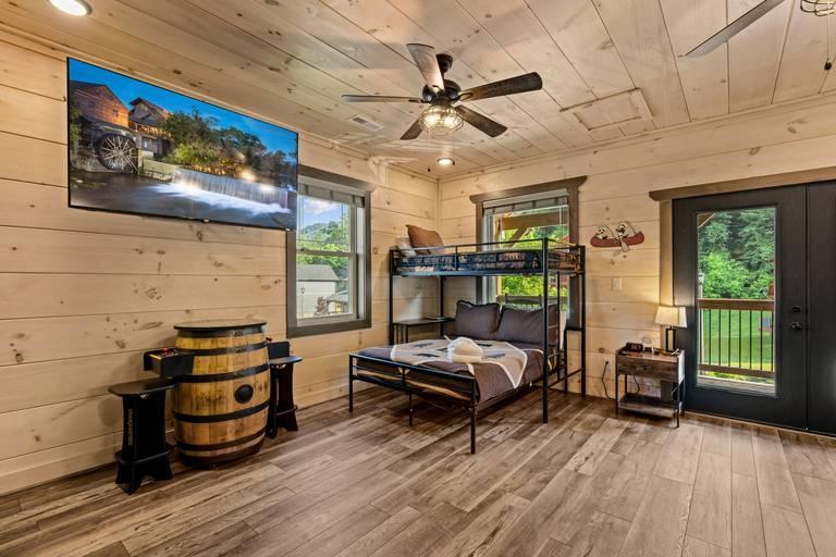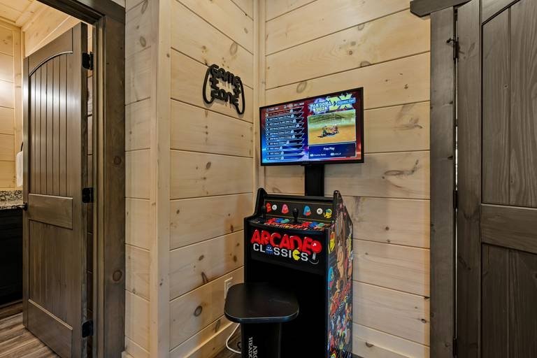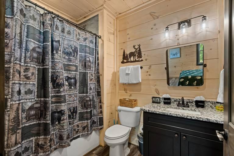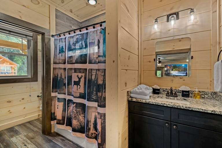 Creekside Lodge - Bear Tracts Vacation Cabins, Beautiful Cabin rental in Pigeon Forge has 4 bedrooms, 4 bathrooms, 12 sleeps, 1 minimum stay Cabin for rent in Pigeon Forge Tennessee with the amenities and near by attractions , Air Conditioning, Balcony, Carbon monoxide detector, Children allowed, Children Welcome, Deck/Patio, Exterior lighting, Fire extinguisher, Fireplace, Free WiFi, Full Kitchen, Game Room, Heated Pool, Heating, Hot Tub, Indoor Pool, Internet, Kid Friendly, Kitchen, Kitchenette, Linens Provided, Mountain View, Paper Towels, Parking, Private Pool, Towels Provided, Basic Soaps, Blender, Cable/Satellite TV, Ceiling Fans, Clothes Dryer, Coffee Grinder, Coffee Maker , Dining Area, Dishes & Utensils, Dishwasher, DVD Player, First-aid kit, Freezer, Hair Dryer , Hangers, Heater, Ice Maker, Ironing Board, Kettle, Living Room, Microwave, Outdoor Grill, Oven, Refrigerator, Shampoo, Stove, Telephone, Television, Toaster, Toilet Paper, Waffle Iron, Washer/Dryer , Antiquing, Basketball court, Bay/sound, Bird watching, Cross country skiing, Cycling, Duty free shops, Ecotourism, fitness center, Gambling casinos, golf privileges optional, Health/beauty spa, Hiking, Horseback riding, Hospital, Hunting, Jet skiing, laundromat, Mountain biking, Mountain climbing, Museums, Outlet shopping, Paddle boating, Parasailing, Rock climbing, Sailing, Shopping, Ski lift privileges, Ski privileges optional, Sledding, Spelunking, Theme parks, Wildlife viewing, Wind-surfing, Winery tours, ZooCommunity/Resort Pool, Private Indoor Pool, Fire Pit or Outdoor Fireplace