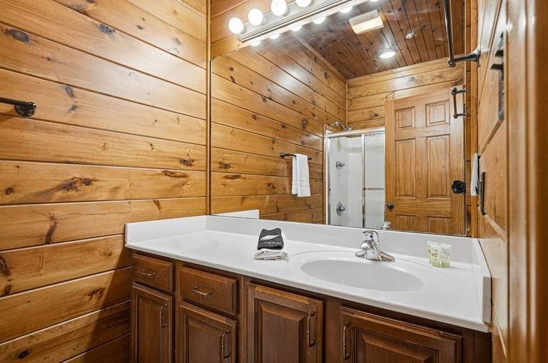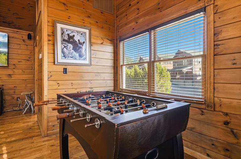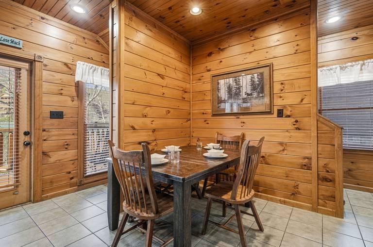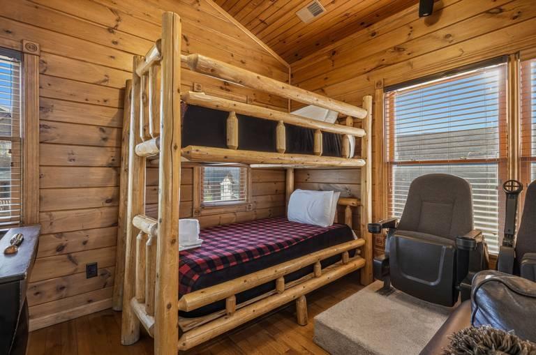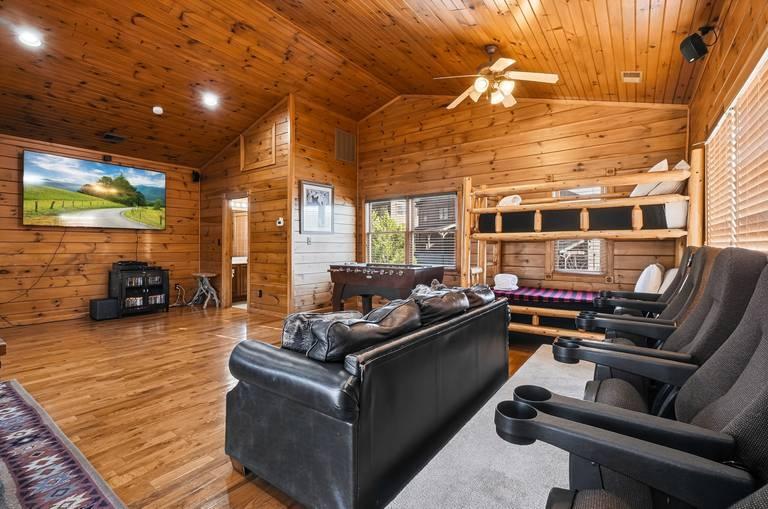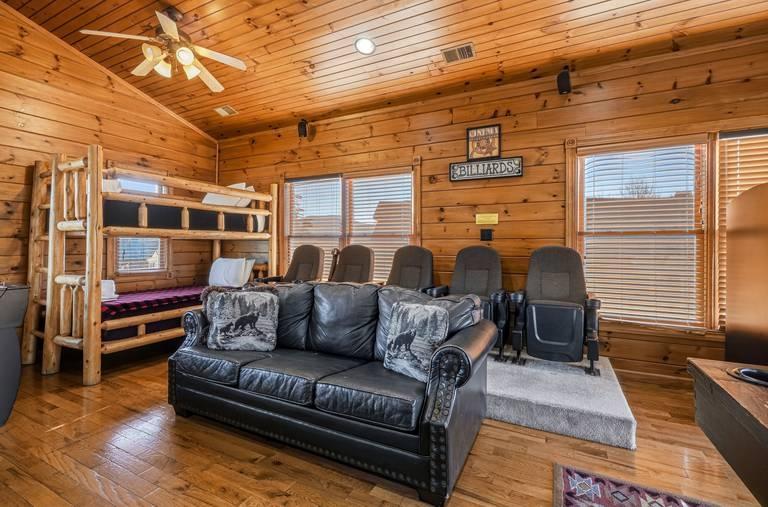 Mountain Getaway and a Theater - Bear Tracts Vacation Cabins, Beautiful Cabin rental in Great Smoky Mountains has 3 bedrooms, 4 bathrooms, 12 sleeps, 1 minimum stay Cabin for rent in Great Smoky Mountains Tennessee with the amenities and near by attractions , Air Conditioning, Balcony, Carbon monoxide detector, Children allowed, Children Welcome, Deck/Patio, Exterior lighting, Fire extinguisher, Fireplace, Free WiFi, Full Kitchen, Game Room, Heated Pool, Heating, Hot Tub, Indoor Pool, Internet, Kid Friendly, Kitchen, Kitchenette, Linens Provided, Mountain View, Paper Towels, Parking, Private Pool, Towels Provided, Washing Machine, Wireless Internet, Basic Soaps, Blender, Cable/Satellite TV, Ceiling Fans, Clothes Dryer, Coffee Grinder, Coffee Maker , Dining Area, Dishes & Utensils, Dishwasher, DVD Player, First-aid kit, Freezer, Hair Dryer , Hangers, Heater, Ice Maker, Ironing Board, Kettle, Living Room, Microwave, Outdoor Grill, Oven, Refrigerator, Shampoo, Stove, Telephone, Television, Toaster, Toilet Paper, Waffle Iron, Washer/Dryer , Antiquing, Basketball court, Bay/sound, Bird watching, Cross country skiing, Cycling, Duty free shops, Ecotourism, fitness center, Gambling casinos, golf privileges optional, Health/beauty spa, Hiking, Horseback riding, Hospital, Hunting, Jet skiing, laundromat, Mountain biking, Mountain climbing, Museums, Outlet shopping, Paddle boating, Parasailing, Rock climbing, Sailing, Shopping, Ski lift privileges, Ski privileges optional, Sledding, Spelunking, Theme parks, Wildlife viewing, Wind-surfing, Winery tours, ZooCommunity/Resort Pool, Private Indoor Pool, Fire Pit or Outdoor Fireplace