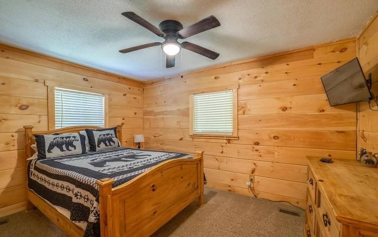 The Backyard Bear - Bear Tracts Vacation Cabins, Beautiful Cabin rental in Gatlinburg has 3 bedrooms, 2 bathrooms, 10 sleeps, 1 minimum stay Cabin for rent in Gatlinburg Tennessee with the amenities and near by attractions , Air Conditioning, Balcony, Carbon monoxide detector, Children allowed, Children Welcome, Deck/Patio, Exterior lighting, Fire extinguisher, Fireplace, Free WiFi, Full Kitchen, Game Room, Heated Pool, Heating, Hot Tub, Indoor Pool, Internet, Kid Friendly, Kitchen, Kitchenette, Linens Provided, Mountain View, Paper Towels, Parking, Private Pool, Towels Provided, Washing Machine, Wireless Internet, Basic Soaps, Blender, Cable/Satellite TV, Ceiling Fans, Clothes Dryer, Coffee Grinder, Coffee Maker , Dining Area, Dishes & Utensils, Dishwasher, DVD Player, First-aid kit, Freezer, Hair Dryer , Hangers, Heater, Ice Maker, Ironing Board, Kettle, Living Room, Microwave, Outdoor Grill, Oven, Refrigerator, Shampoo, Stove, Telephone, Television, Toaster, Toilet Paper, Waffle Iron, Washer/Dryer , Antiquing, Basketball court, Bay/sound, Bird watching, Cross country skiing, Cycling, Duty free shops, Ecotourism, fitness center, Gambling casinos, golf privileges optional, Health/beauty spa, Hiking, Horseback riding, Hospital, Hunting, Jet skiing, laundromat, Mountain biking, Mountain climbing, Museums, Outlet shopping, Paddle boating, Parasailing, Rock climbing, Sailing, Shopping, Ski lift privileges, Ski privileges optional, Sledding, Spelunking, Theme parks, Wildlife viewing, Wind-surfing, Winery tours, ZooCommunity/Resort Pool, Private Indoor Pool, Fire Pit or Outdoor Fireplace