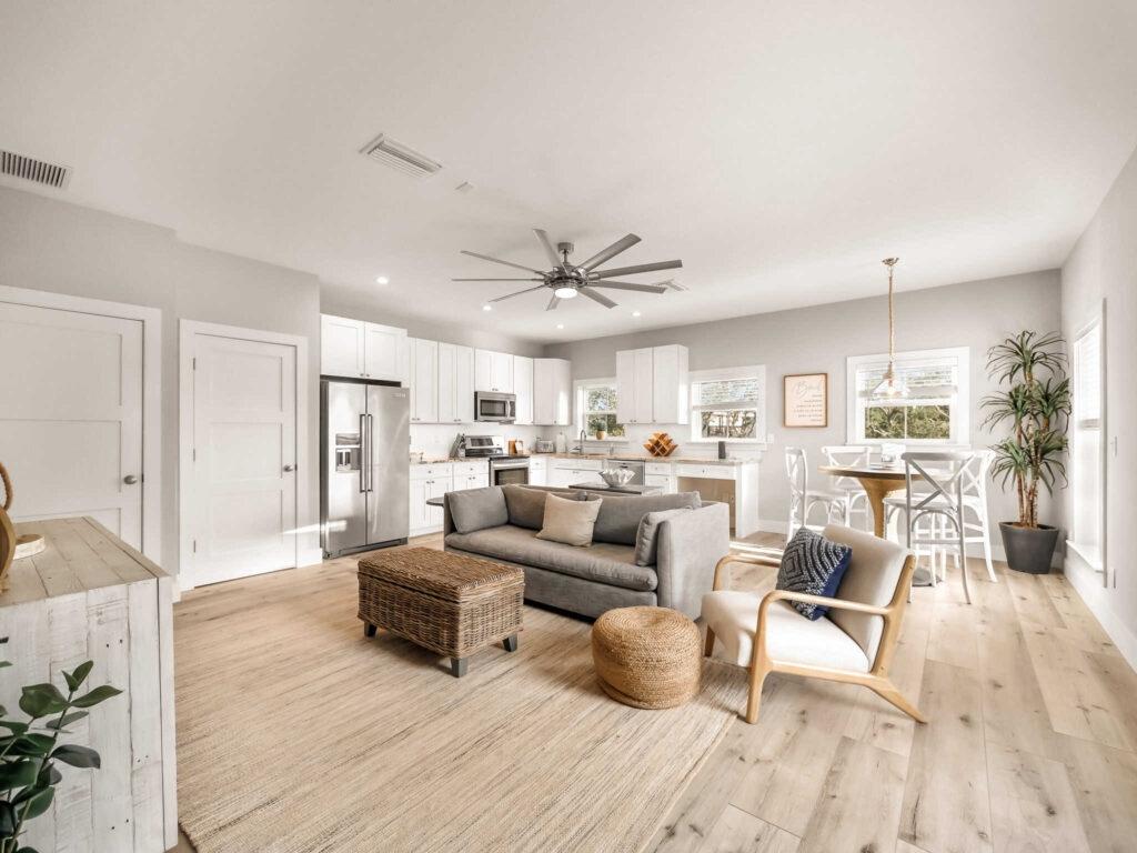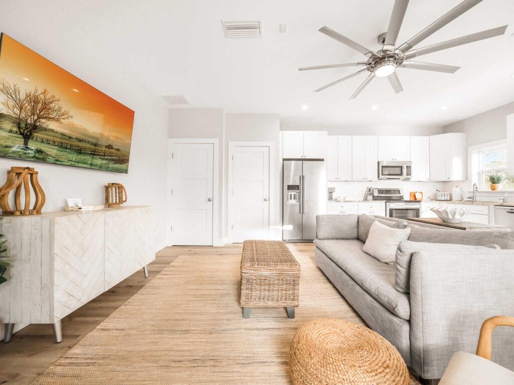 What we love most? The walkable charm of local restaurants, the peaceful beach where you can stroll or bike for miles, and the nearby riverfront just a block away — perfect for sunsets or launching a boat. At each home, you’ll find everything you need to relax or entertain — thoughtfully designed spaces, inviting outdoor areas, and well-equipped kitchens made for slowing down and spending time together.
