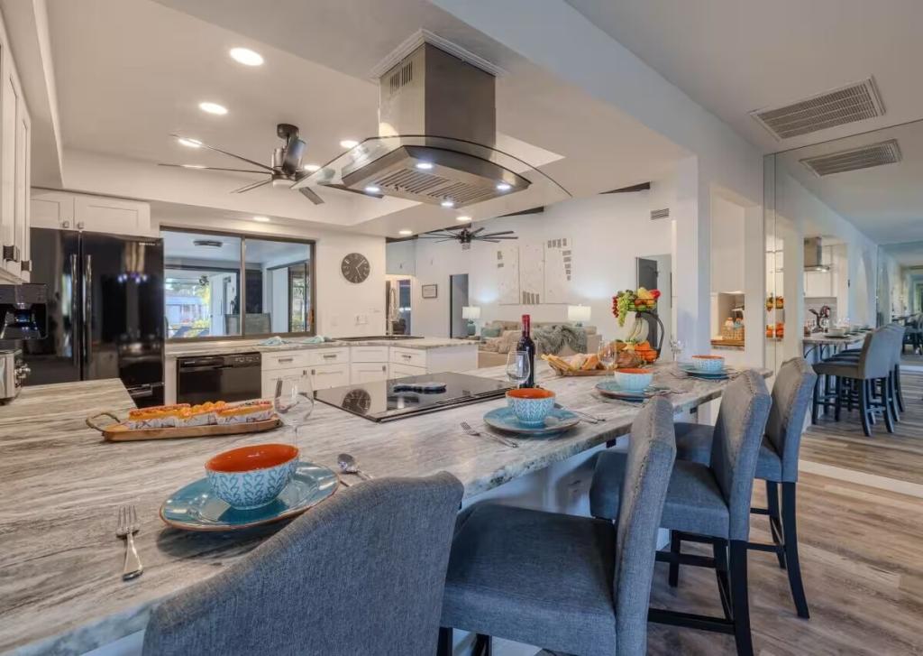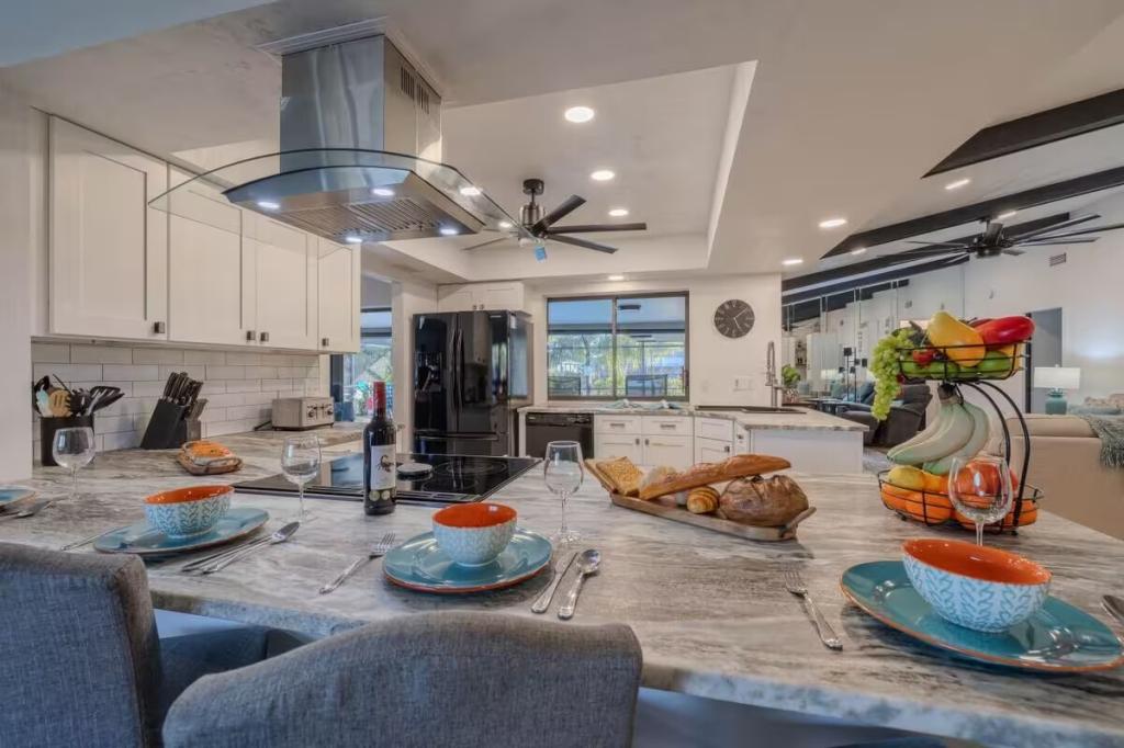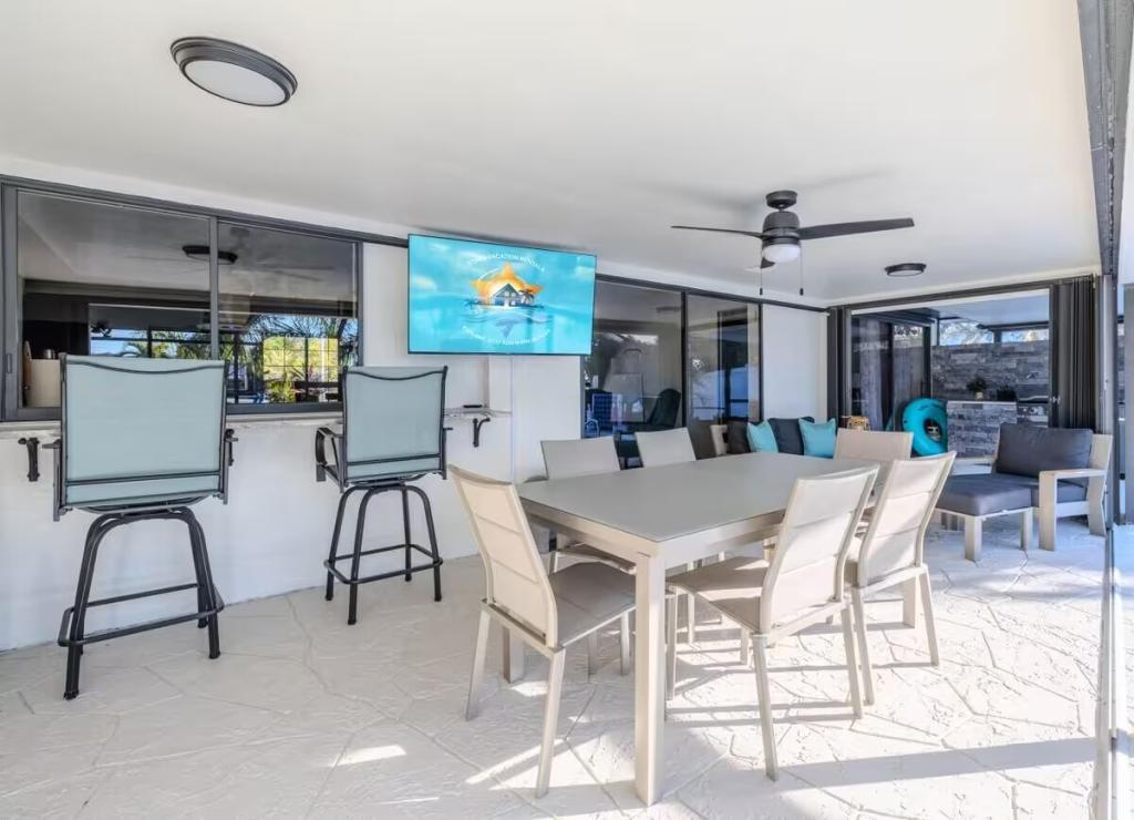 Cape By The Ocean | Stars Vacation Rentals, Beautiful House rental in Cape Coral has 3 bedrooms, 2 bathrooms, 10 sleeps, 1 minimum stay House for rent in Cape Coral Florida with the amenities and near by attractions , Air Conditioning, Carbon monoxide detector, Children allowed, Children Welcome, Exterior lighting, Fire extinguisher, Fireplace, Free WiFi, Full Kitchen, Heating, Hot Tub, Internet, Kid Friendly, Kitchen, Linens Provided, No parties/events, No Pets Allowed, No Smoking, Non-Smoking, Paper Towels, Parking, Swimming pool, Towels Provided, Washing Machine, Water View, Waterfront, Basic Soaps, Blender, Cable/Satellite TV, Ceiling Fans, Clothes Dryer, Coffee Grinder, Coffee Maker , Dining Area, Dishes & Utensils, Dishwasher, DVD Player, First-aid kit, Freezer, Hair Dryer , Hangers, Heater, Ice Maker, Iron & Board , Ironing Board, Kettle, Living Room, Microwave, Microwave/Air Fryer, Mini Freezer, Mini Refrigerator, Outdoor Grill, Oven, Refrigerator, Shampoo, Stove, Telephone, Television, Toaster, Toilet Paper, Waffle Iron, Washer/Dryer , Antiquing, Basketball court, Bay/sound, Bird watching, Boating, Cross country skiing, Cycling, Duty free shops, Ecotourism, Fishing, fitness center, Gambling casinos, golf privileges optional, Health/beauty spa, Hiking, Horseback riding, Hospital, Hunting, Jet skiing, laundromat, Mountain biking, Museums, Outlet shopping, Paddle boating, Rock climbing, Sailing, Shopping, Ski privileges optional, Sledding, Snorkeling, Spelunking, Swimming, Theme parks, Water tubing, Wildlife viewing, Winery tours, Zoo