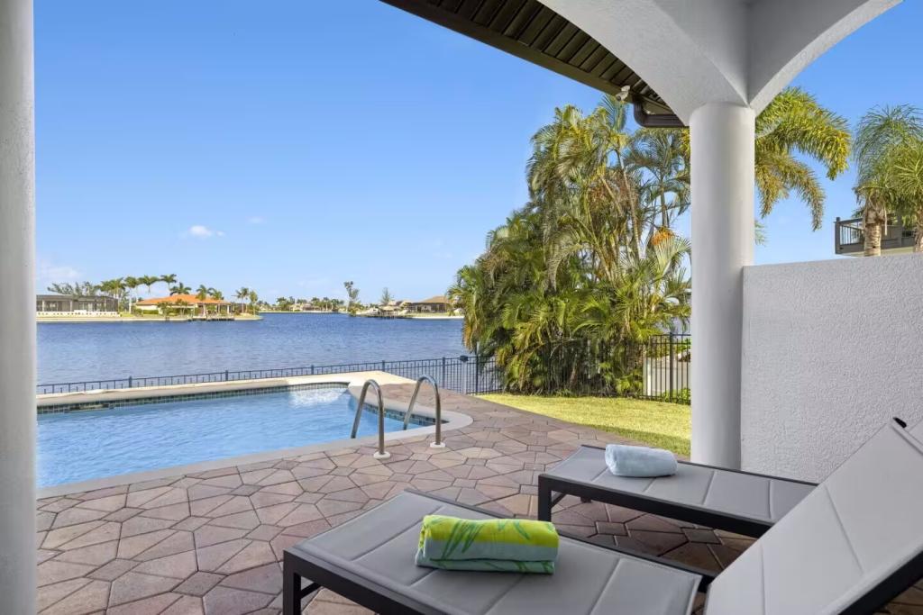 Villa Stella | Stars Vacation Rentals, Beautiful House rental in Cape Coral has 3 bedrooms, 3 bathrooms, 6 sleeps, 1 minimum stay House for rent in Cape Coral Florida with the amenities and near by attractions , Air Conditioning, Carbon monoxide detector, Children allowed, Children Welcome, Deck/Patio, Exterior lighting, Fire extinguisher, Free WiFi, Full Kitchen, Heated Pool, Heating, Hot Tub, Internet, Kid Friendly, Kitchen, Kitchenette, Linens Provided, No parties/events, No Pets Allowed, No Smoking, Non-Smoking, Paper Towels, Parking, Swimming pool, Towels Provided, Washing Machine, Water View, Waterfront, Wireless Internet, Basic Soaps, Blender, Cable/Satellite TV, Ceiling Fans, Clothes Dryer, Coffee Grinder, Coffee Maker , Dining Area, Dishes & Utensils, Dishwasher, DVD Player, First-aid kit, Freezer, Hair Dryer , Hangers, Heater, Ice Maker, Ironing Board, Kettle, Living Room, Microwave, Outdoor Grill, Oven, Refrigerator, Shampoo, Stove, Telephone, Television, Toaster, Toilet Paper, Waffle Iron, Washer/Dryer , Antiquing, Basketball court, Bay/sound, Bird watching, Boating, Cross country skiing, Cycling, Duty free shops, Ecotourism, fitness center, Gambling casinos, Health/beauty spa, Horseback riding, Hospital, Hunting, laundromat, Museums, Outlet shopping, Paddle boating, Parasailing, Sailing, Shopping, Ski privileges optional, Skiing, Sledding, Spelunking, Swimming, Theme parks, Winery tours, Zoo