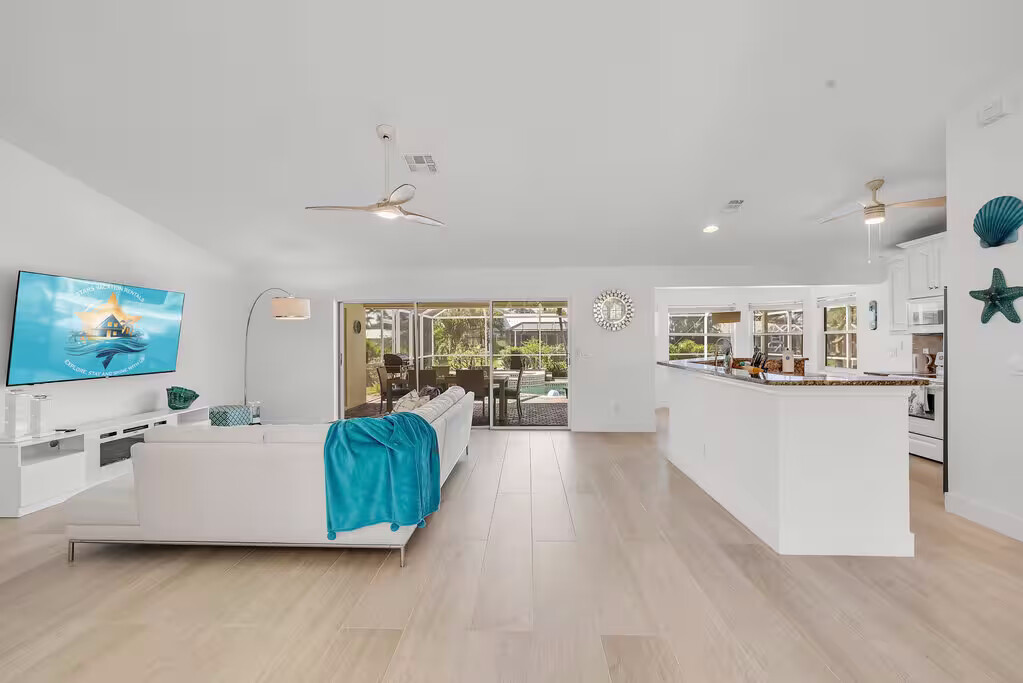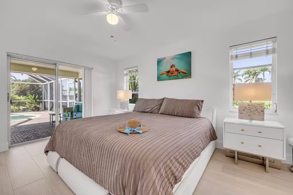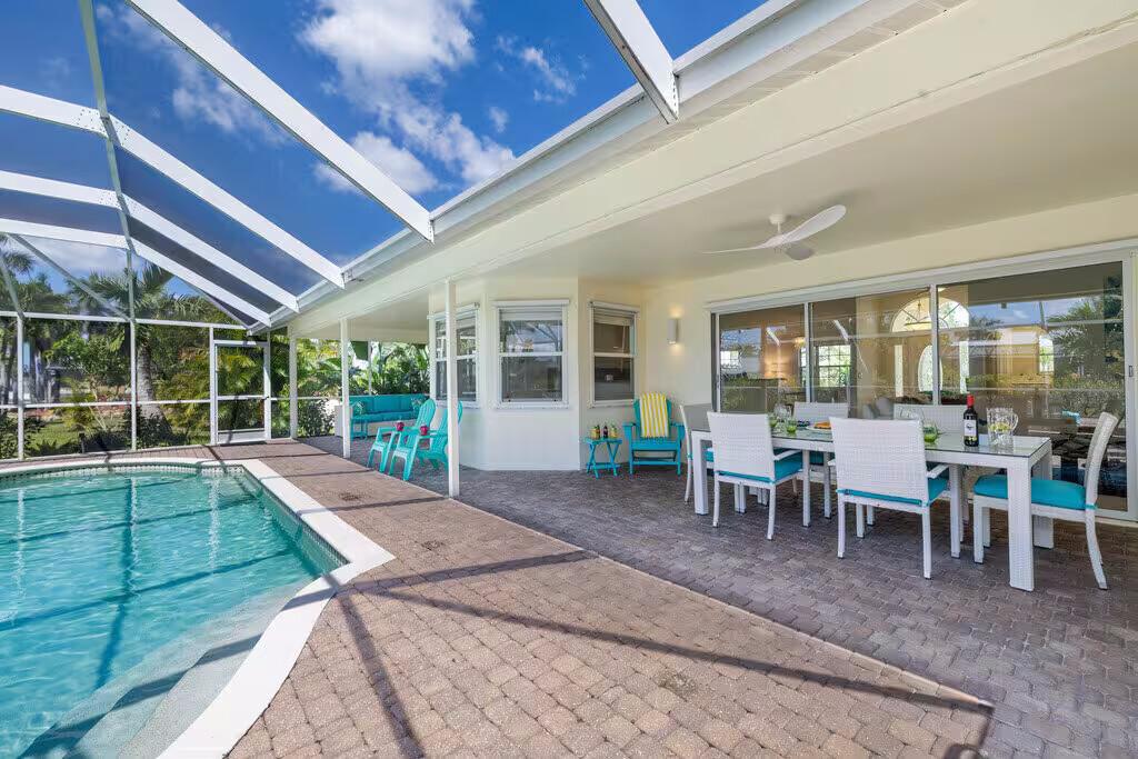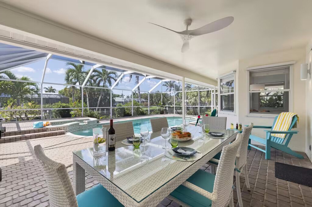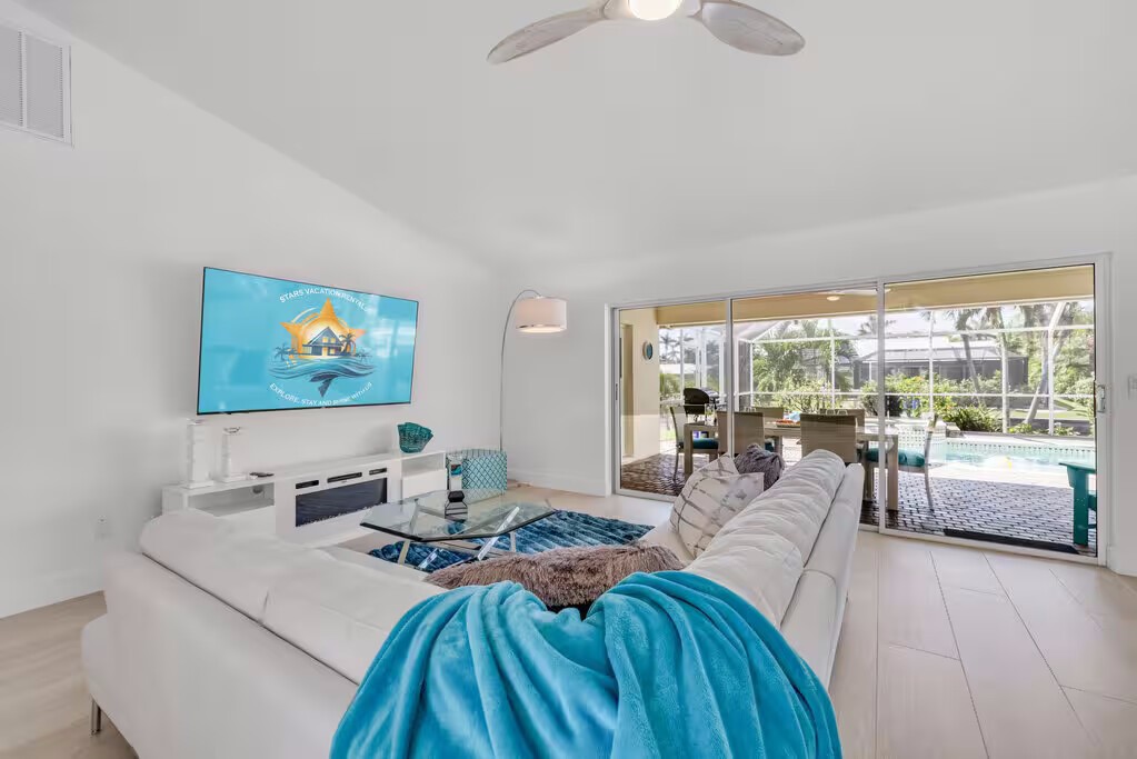 Villa Samba | Stars Vacation Rentals, Beautiful House rental in Cape Coral has 3 bedrooms, 2 bathrooms, 6 sleeps, 1 minimum stay House for rent in Cape Coral Florida with the amenities and near by attractions , Air Conditioning, Carbon monoxide detector, Children allowed, Children Welcome, Deck/Patio, Exterior lighting, Fire extinguisher, Fireplace, Free WiFi, Full Kitchen, Heated Pool, Heating, Hot Tub, Internet, Kid Friendly, Kitchen, Kitchenette, Linens Provided, No parties/events, No Pets Allowed, No Smoking, Non-Smoking, Paper Towels, Parking, Private Pool, Smoke detector, Swimming pool, Towels Provided, Washing Machine, Water View, Waterfront, Wireless Internet, Basic Soaps, Blender, Cable/Satellite TV, Ceiling Fans, Clothes Dryer, Coffee Grinder, Coffee Maker , Dining Area, Dishes & Utensils, Dishwasher, DVD Player, First-aid kit, Freezer, Hair Dryer , Hangers, Heater, Ice Maker, Kettle, Living Room, Microwave, Microwave/Air Fryer, Outdoor Grill, Oven, Refrigerator, Shampoo, Stove, Telephone, Television, Toaster, Toilet Paper, Waffle Iron, Washer/Dryer , Antiquing, Basketball court, Bay/sound, Bird watching, Boating, Cross country skiing, Cycling, Duty free shops, Ecotourism, Gambling casinos, Health/beauty spa, Horseback riding, Hospital, Outlet shopping, Shopping, Swimming, Theme parks, Water parks, Zoo