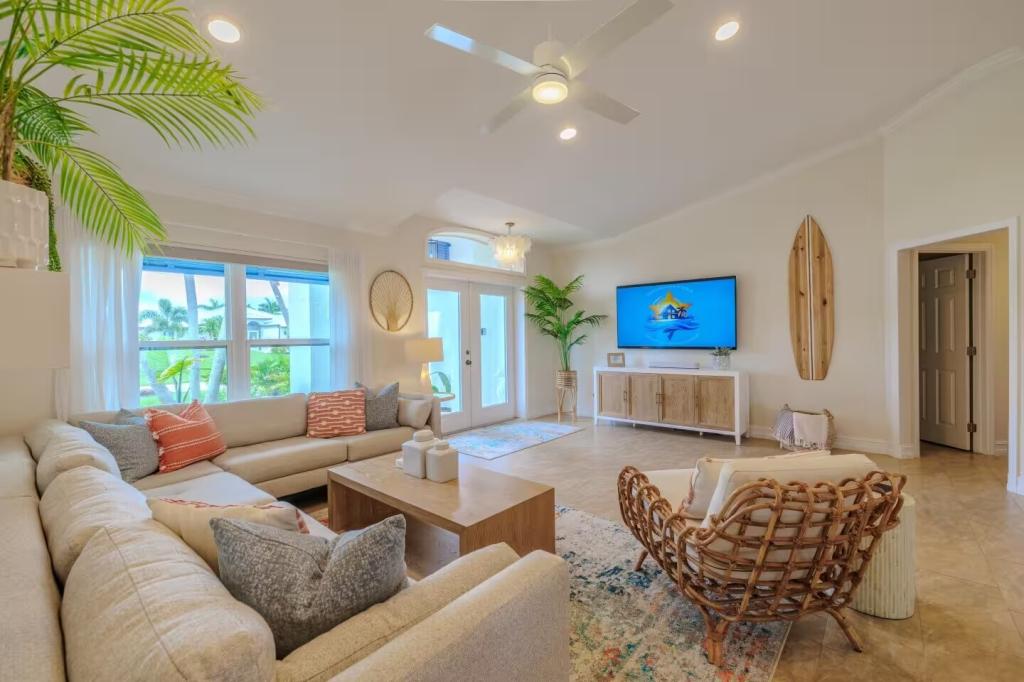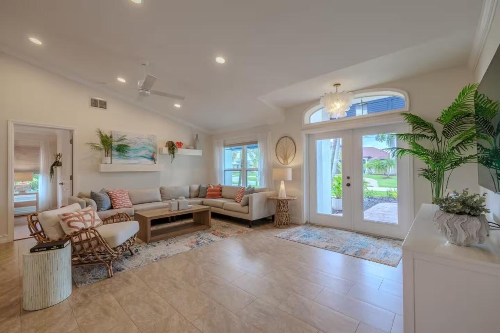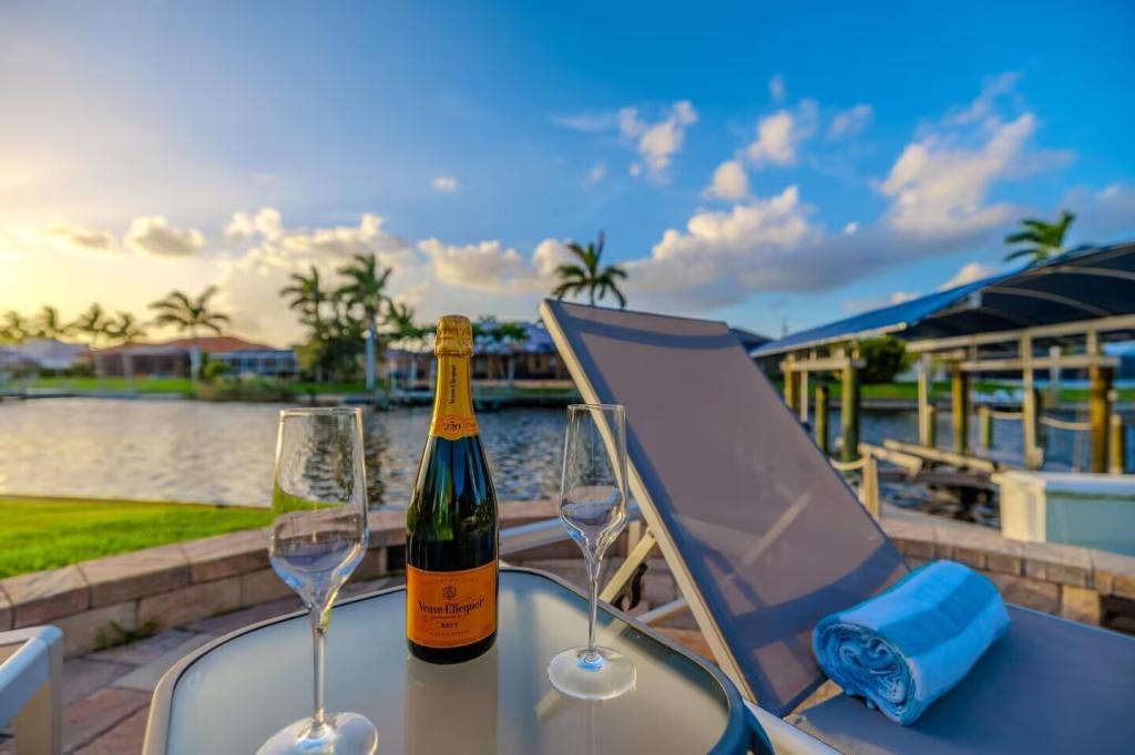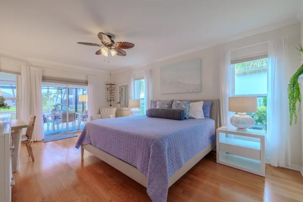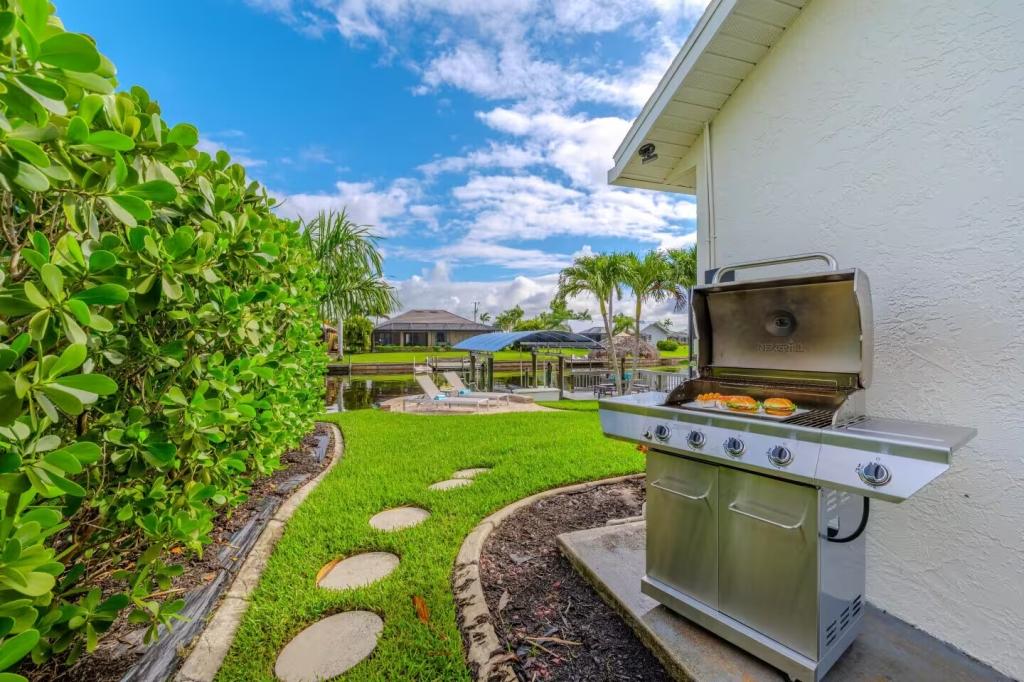 Villa Barefoot Cove | Stars Vacation Rentals, Beautiful House rental in Cape Coral has 3 bedrooms, 2 bathrooms, 6 sleeps, 1 minimum stay House for rent in Cape Coral Florida with the amenities and near by attractions , Air Conditioning, Carbon monoxide detector, Carbon-monoxide detector, Children allowed, Children Welcome, Deck/Patio, Exterior lighting, Fire extinguisher, Fireplace, Free WiFi, Full Kitchen, Heated Pool, Heating, Hot Tub, Internet, Kid Friendly, Kitchen, Kitchenette, Linens Provided, No parties/events, No Pets Allowed, No Smoking, Non-Smoking, Paper Towels, Parking, Smoke detector, Towels Provided, Washing Machine, Water View, Waterfront, Wireless Internet, Basic Soaps, Blender, Cable/Satellite TV, Ceiling Fans, Clothes Dryer, Coffee Grinder, Coffee Maker , Dining Area, Dishes & Utensils, Dishwasher, DVD Player, First-aid kit, Freezer, Hair Dryer , Hangers, Heater, Ice Maker, Kettle, Living Room, Microwave, Microwave/Air Fryer, Outdoor Grill, Oven, Refrigerator, Shampoo, Stove, Telephone, Television, Toaster, Toilet Paper, Waffle Iron, Washer/Dryer , Antiquing, Basketball court, Bay/sound, Bird watching, Boating, Cross country skiing, Cycling, Duty free shops, Ecotourism, Fishing, fitness center, Gambling casinos, golf privileges optional, Health/beauty spa, Horseback riding, Hospital, laundromat, Museums, Shopping, Swimming, Theme parks, Water parks