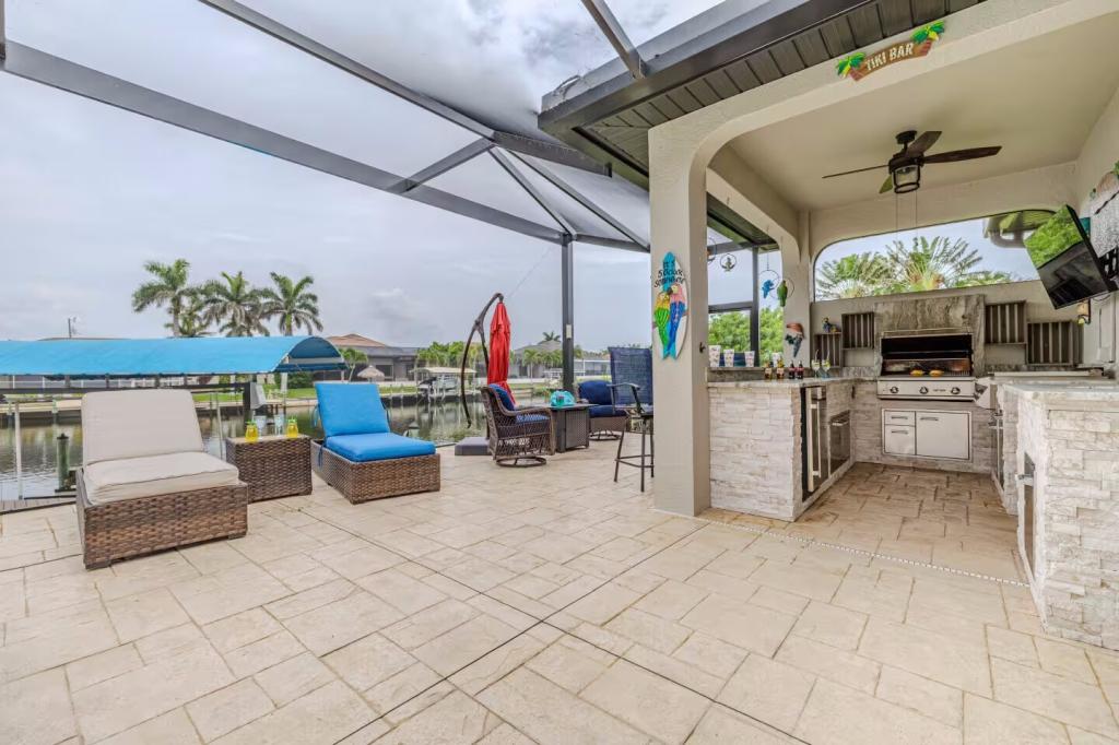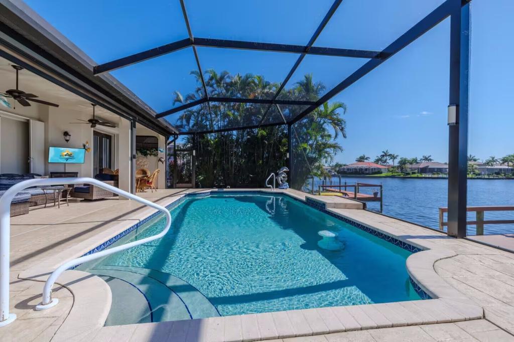 Moondance Villa | Stars Vacation Rentals, Beautiful House rental in Cape Coral has 3 bedrooms, 3 bathrooms, 6 sleeps, 1 minimum stay House for rent in Cape Coral Florida with the amenities and near by attractions , Air Conditioning, Carbon monoxide detector, Children allowed, Children Welcome, Deck/Patio, Exterior lighting, Fire extinguisher, Fireplace, Free WiFi, Full Kitchen, Heated Pool, Heating, Hot Tub, Internet, Kid Friendly, Kitchen, Kitchenette, Linens Provided, No parties/events, Paper Towels, Smoke detector, Towels Provided, Washing Machine, Wireless Internet, Basic Soaps, Blender, Cable/Satellite TV, Ceiling Fans, Clothes Dryer, Coffee Grinder, Coffee Maker , Dining Area, Dishes & Utensils, Dishwasher, DVD Player, First-aid kit, Freezer, Hair Dryer , Hangers, Heater, Ice Maker, Ironing Board, Kettle, Living Room, Microwave, Outdoor Grill, Oven, Refrigerator, Shampoo, Stove, Telephone, Television, Toaster, Toilet Paper, Waffle Iron, Washer/Dryer , Antiquing, Basketball court, Bay/sound, Bird watching, Boating, Cross country skiing, Cycling, Duty free shops, Ecotourism, fitness center, Gambling casinos, Golf, golf privileges optional, Horseback riding, Hospital, laundromat, Museums, Outlet shopping, Paddle boating, Shopping, Swimming, Theme parks