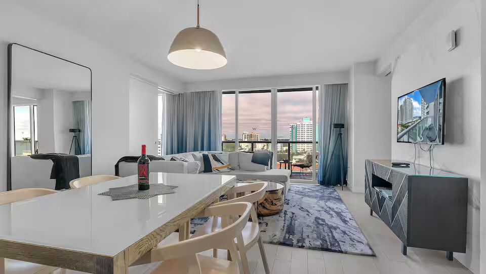 Oceanfront Sanctuary: Your Private 2BR/2BA, Beautiful Condo rental in Fort Lauderdale has 2 bedrooms, 2 bathrooms, 6 sleeps, 1 minimum stay Condo for rent in Fort Lauderdale Florida with the amenities and near by attractions , Air Conditioning, Balcony, Carbon monoxide detector, Children allowed, Children Welcome, Exterior lighting, Fire extinguisher, Free WiFi, Full Kitchen, Heated Pool, Heating, Hot Tub, Internet, Kid Friendly, Kitchen, Kitchenette, Linens Provided, No parties/events, No Pets Allowed, No Smoking, Non-Smoking, Paper Towels, Parking, Smoke detector, Towels Provided, Washing Machine, Water View, Waterfront, Wireless Internet, Basic Soaps, Blender, Cable/Satellite TV, Ceiling Fans, Clothes Dryer, Coffee Grinder, Coffee Maker , Dining Area, Dishes & Utensils, Dishwasher, DVD Player, First-aid kit, Freezer, Hair Dryer , Hangers, Heater, Ice Maker, Kettle, Living Room, Microwave, Microwave/Air Fryer, Outdoor Grill, Oven, Refrigerator, Shampoo, Stove, Telephone, Television, Toaster, Toilet Paper, Waffle Iron, Washer/Dryer , Antiquing, Basketball court, Bay/sound, Bird watching, Boating, Cross country skiing, Cycling, Duty free shops, Ecotourism, Fishing, fitness center, Gambling casinos, Golf, Golf Course Front, Golf Course View, golf privileges optional, Health/beauty spa, Hiking, Horseback riding, Hospital, Hunting, Jet skiing, Kayaking, Museums, Outlet shopping, Parasailing, Rafting, Scuba diving or snorkeling, Shopping, Ski lift privileges, Ski privileges optional, Snorkeling, Surfing, Swimming, Theme parks, Water parks, Water skiing, Water sports, Water tubing, Whale watching, Wind-surfing, Winery tours, Zoo