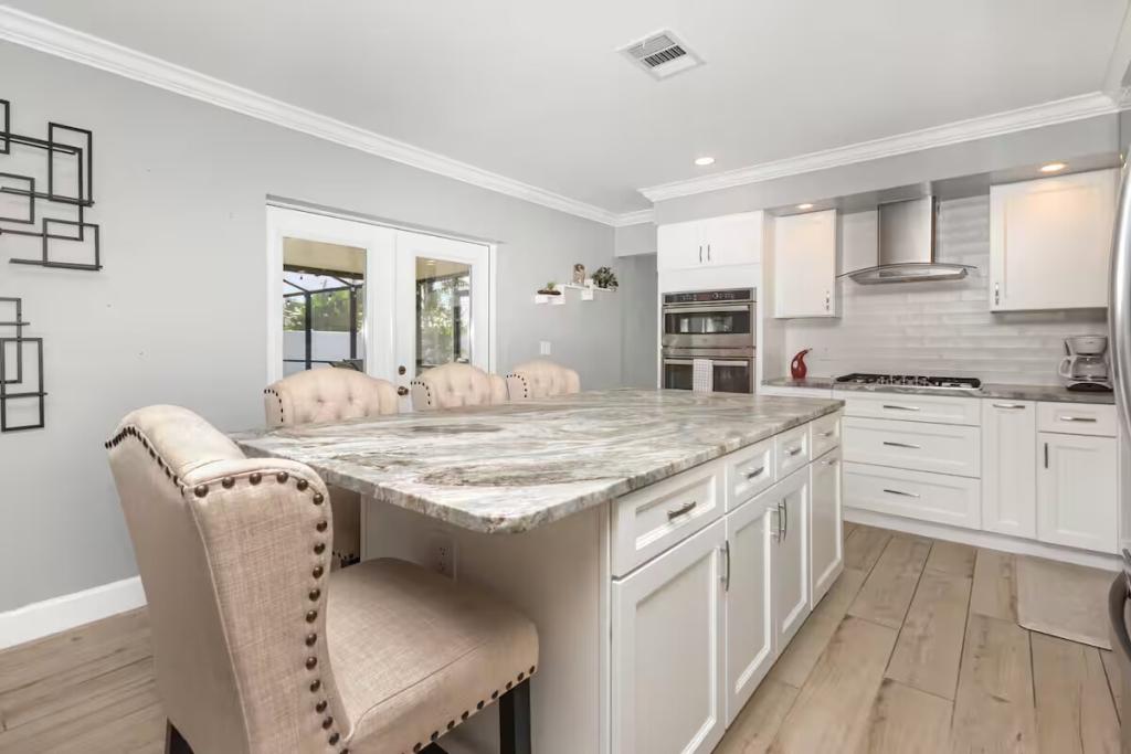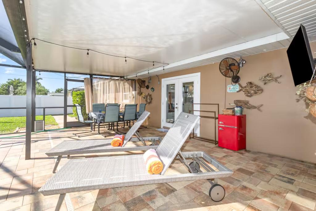 Teal Lagoon - Pet Friendly with Southern Exposure, Beautiful Condo rental in Cape Coral has 3 bedrooms, 3 bathrooms, 6 sleeps, 1 minimum stay Condo for rent in Cape Coral Florida with the amenities and near by attractions , Air Conditioning, Balcony, Carbon monoxide detector, Carbon-monoxide detector, Deck/Patio, Exterior lighting, Fire extinguisher, Fireplace, Free WiFi, Full Kitchen, Heating, Hot Tub, Internet, Kitchen, Linens Provided, Managed by Owner, No parties/events, No Pets Allowed, No Smoking, Parking, Pet Friendly, Smoke detector, Swimming pool, Towels Provided, Washing Machine, Water View, Waterfront, Basic Soaps, Blender, Cable/Satellite TV, Ceiling Fans, Clothes Dryer, Coffee Grinder, Coffee Maker , Dining Area, Dishes & Utensils, Dishwasher, DVD Player, First-aid kit, Freezer, Hair Dryer , Hangers, Heater, Ice Maker, Iron & Board , Kettle, Living Room, Microwave, Outdoor Grill, Oven, Refrigerator, Shampoo, Stove, Telephone, Television, Toaster, Toilet Paper, Waffle Iron, Washer/Dryer Mosquito net, Dedicated workspace, Pots and pans, oil, salt and pepper, Bowls, chopsticks, plates, cups, etc., Gas cooker, Wine glasses, Private back garden, Outdoor dining area, Private outdoor kitchen, BBQ grill, Sun loungers, Single-level home, Long-term stays allowed, Self check-in, Keypad