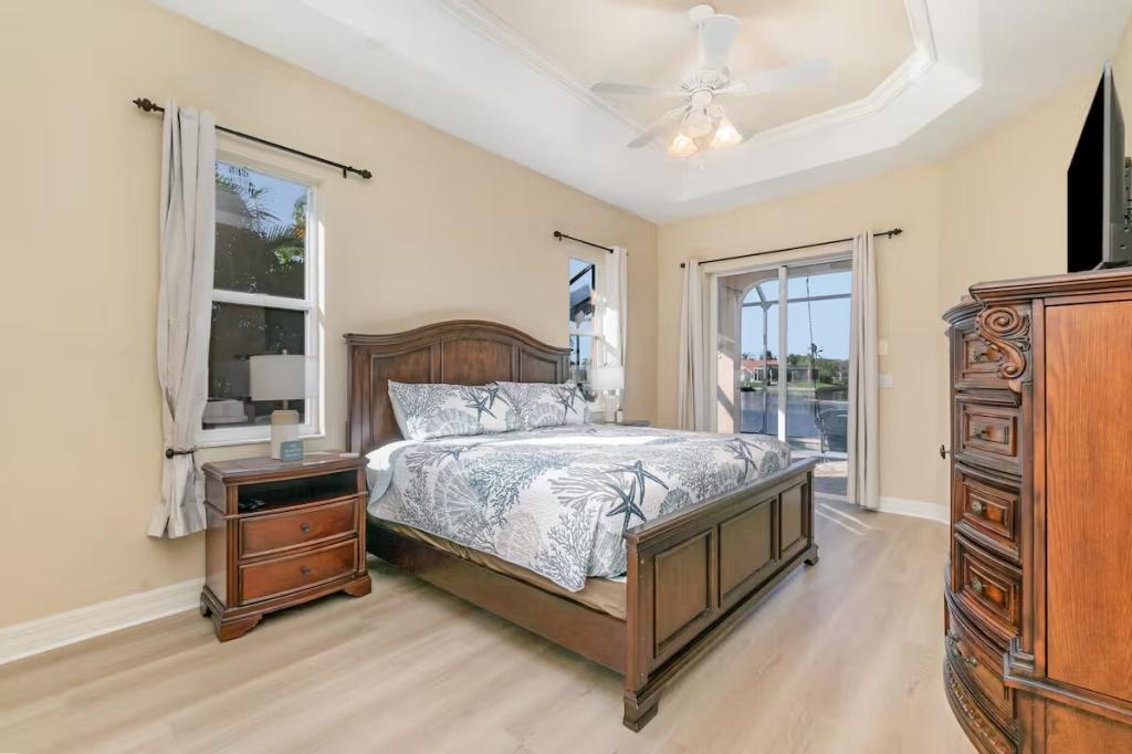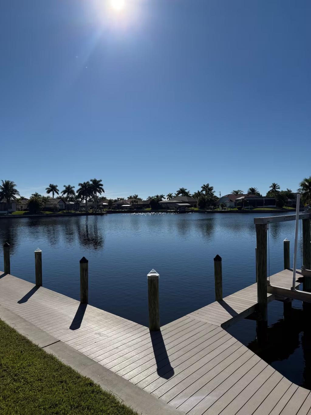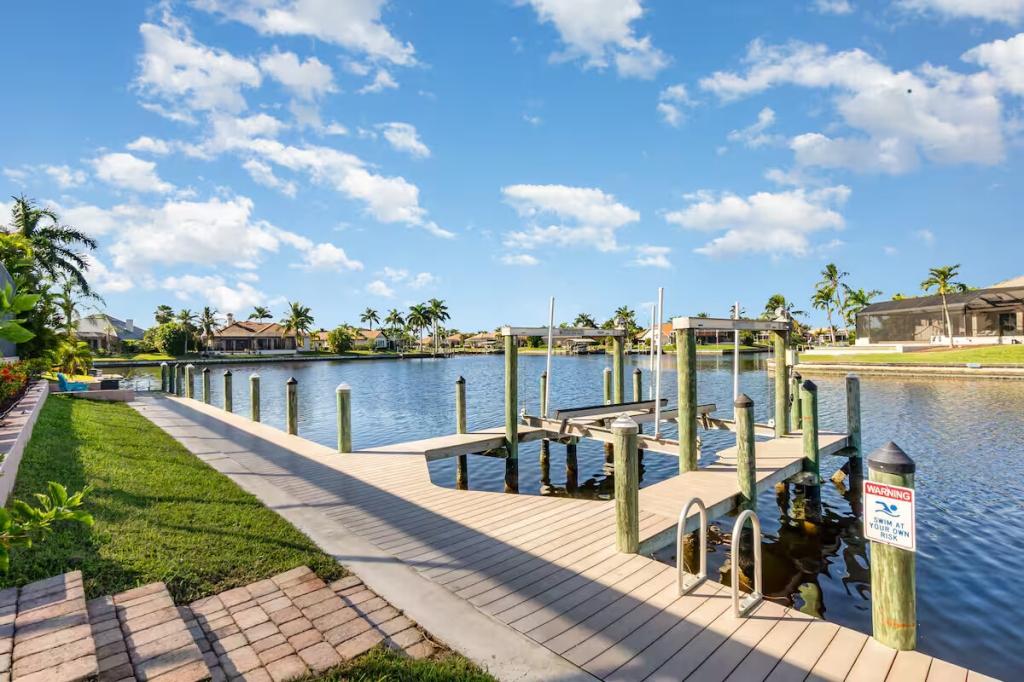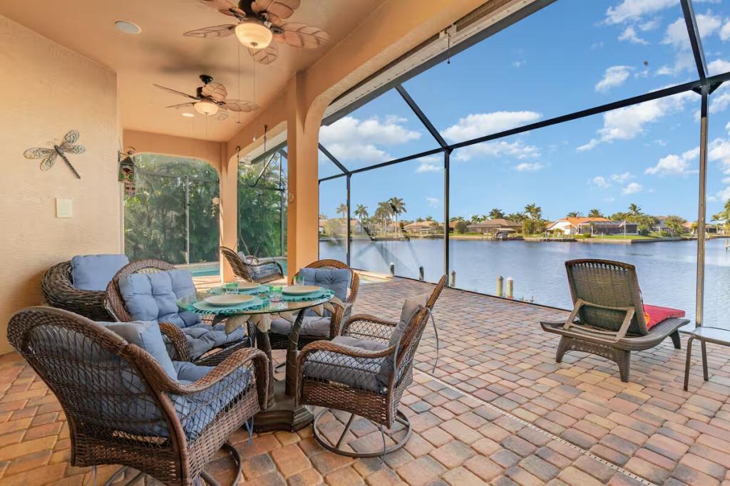 Rose Lake Escape – Gulf Access & Pet Friendly, Beautiful Condo rental in Cape Coral has 3 bedrooms, 3 bathrooms, 8 sleeps, 1 minimum stay Condo for rent in Cape Coral Florida with the amenities and near by attractions , Air Conditioning, Carbon monoxide detector, Children Welcome, Deck/Patio, Exterior lighting, Fire extinguisher, Fireplace, Free WiFi, Full Kitchen, Garage, Heating, Internet, Kitchen, Linens Provided, Managed by Owner, Managed by Property Manager, No parties/events, No Smoking, Parking, Pet Friendly, Smoke detector, Swimming pool, Towels Provided, Washing Machine, Water View, Waterfront, Wireless Internet, Basic Soaps, Blender, Cable/Satellite TV, Ceiling Fans, Clothes Dryer, Coffee Grinder, Coffee Maker , Dining Area, Dishes & Utensils, Dishwasher, DVD Player, First-aid kit, Freezer, Hair Dryer , Hangers, Heater, Ice Maker, Iron & Board , Kettle, Living Room, Microwave, Outdoor Grill, Oven, Refrigerator, Shampoo, Stove, Telephone, Television, Toaster, Toilet Paper, Waffle Iron, Washer/Dryer , Antiquing, Basketball court, Bay/sound, Bird watching, Boating, Cross country skiing, Cycling, Duty free shops, Ecotourism, Fishing, fitness center, Gambling casinos, Golf, Golf Course View, golf privileges optional, Health/beauty spa, Hiking, Horseback riding, Hospital, Kayaking, laundromat, Mountain biking, Mountain climbing, Museums, Outlet shopping, Paddle boating, Parasailing, Shopping, Swimming, Theme parks, Water parks, Water skiing, Water sports, Water tubing, Whale watching, Winery tours, ZooDedicated workspace, Pots and pans, oil, salt and pepper, Firepit, Outdoor dining area, BBQ grill, Keypad, Self check-in