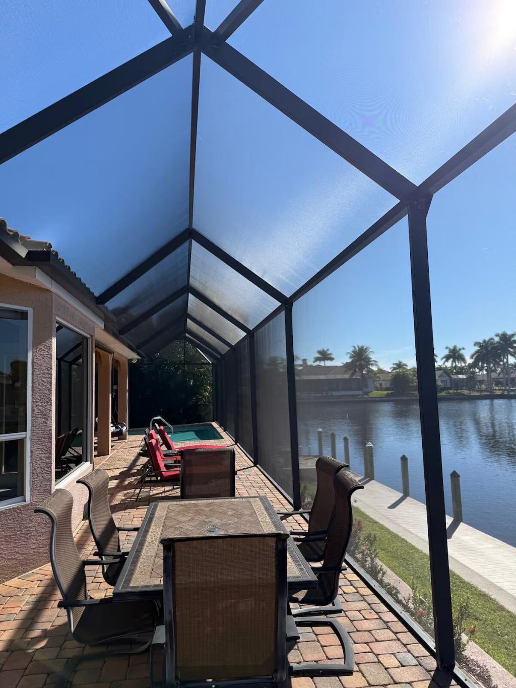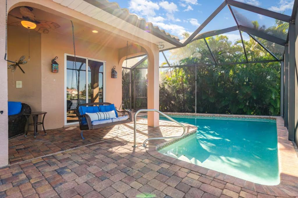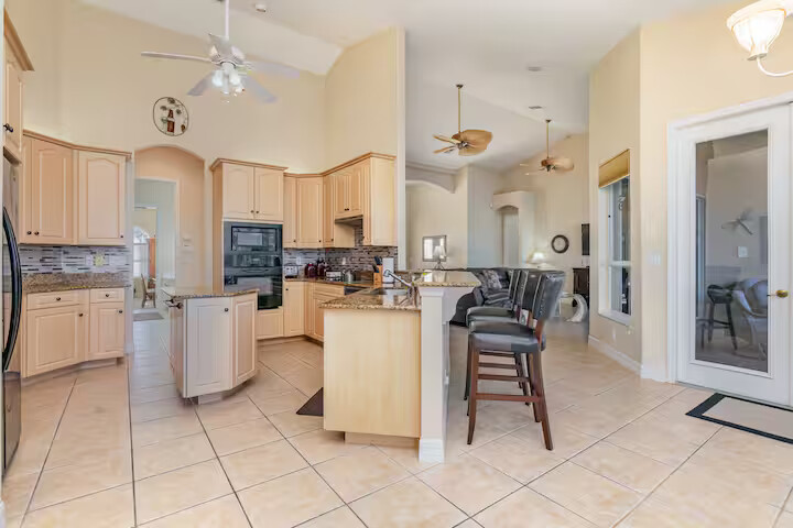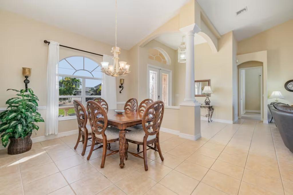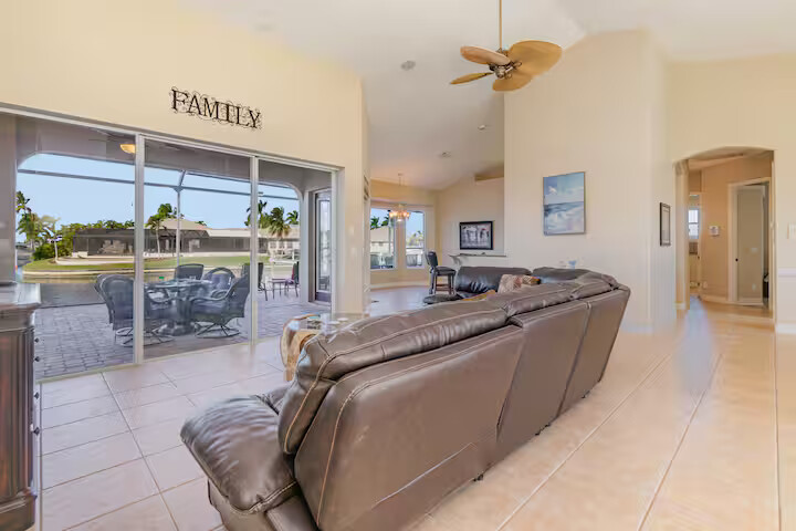 Rose Lake Escape – Gulf Access & Pet Friendly, Beautiful Condo rental in Cape Coral has 3 bedrooms, 3 bathrooms, 8 sleeps, 1 minimum stay Condo for rent in Cape Coral Florida with the amenities and near by attractions , Air Conditioning, Carbon monoxide detector, Children Welcome, Deck/Patio, Exterior lighting, Fire extinguisher, Fireplace, Free WiFi, Full Kitchen, Garage, Heating, Internet, Kitchen, Linens Provided, Managed by Owner, Managed by Property Manager, No parties/events, No Smoking, Parking, Pet Friendly, Smoke detector, Swimming pool, Towels Provided, Washing Machine, Water View, Waterfront, Wireless Internet, Basic Soaps, Blender, Cable/Satellite TV, Ceiling Fans, Clothes Dryer, Coffee Grinder, Coffee Maker , Dining Area, Dishes & Utensils, Dishwasher, DVD Player, First-aid kit, Freezer, Hair Dryer , Hangers, Heater, Ice Maker, Iron & Board , Kettle, Living Room, Microwave, Outdoor Grill, Oven, Refrigerator, Shampoo, Stove, Telephone, Television, Toaster, Toilet Paper, Waffle Iron, Washer/Dryer , Antiquing, Basketball court, Bay/sound, Bird watching, Boating, Cross country skiing, Cycling, Duty free shops, Ecotourism, Fishing, fitness center, Gambling casinos, Golf, Golf Course View, golf privileges optional, Health/beauty spa, Hiking, Horseback riding, Hospital, Kayaking, laundromat, Mountain biking, Mountain climbing, Museums, Outlet shopping, Paddle boating, Parasailing, Shopping, Swimming, Theme parks, Water parks, Water skiing, Water sports, Water tubing, Whale watching, Winery tours, ZooDedicated workspace, Pots and pans, oil, salt and pepper, Firepit, Outdoor dining area, BBQ grill, Keypad, Self check-in