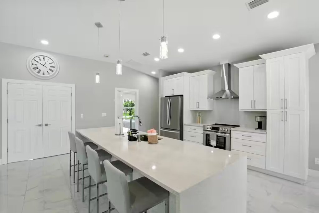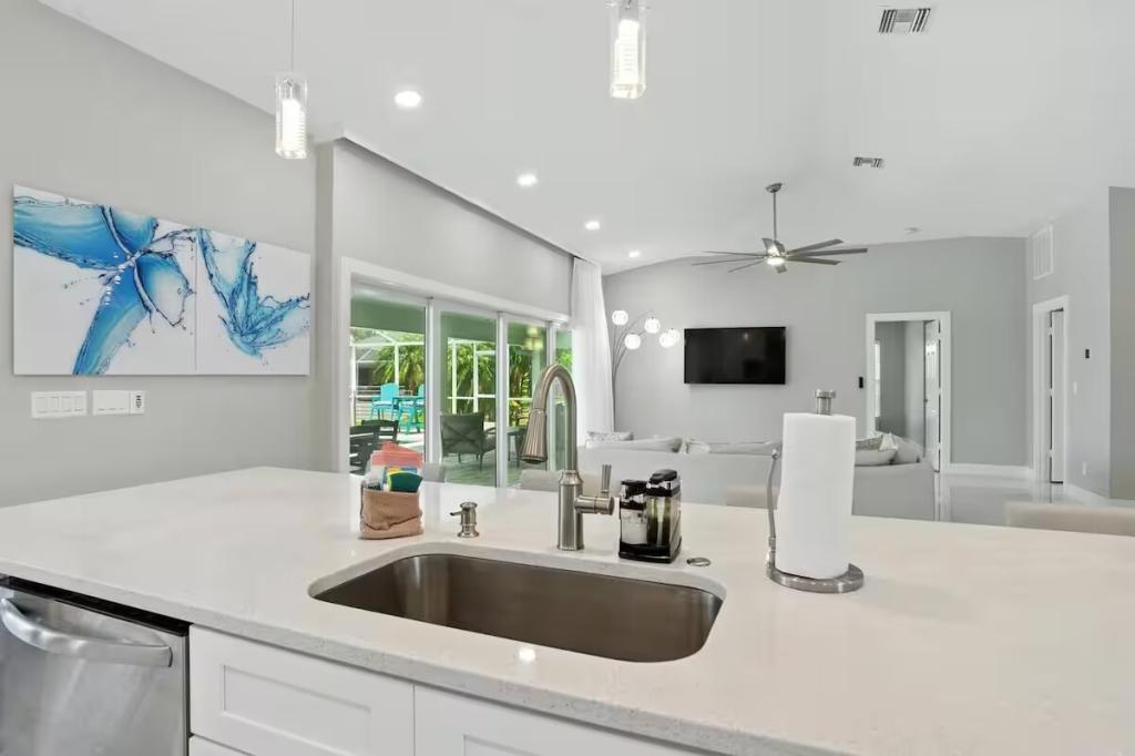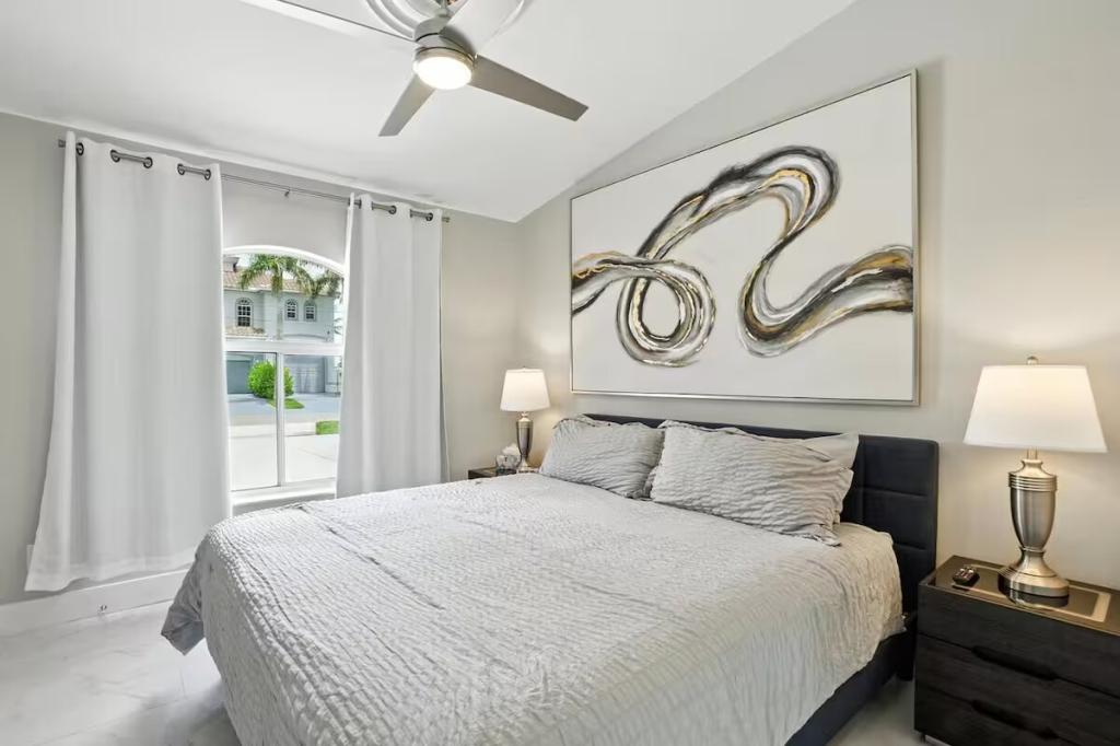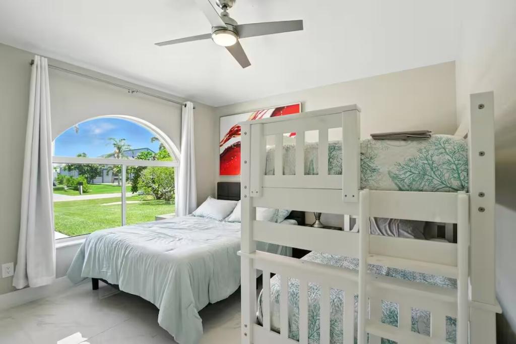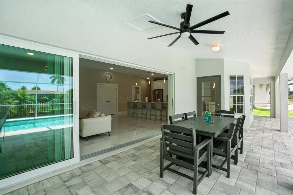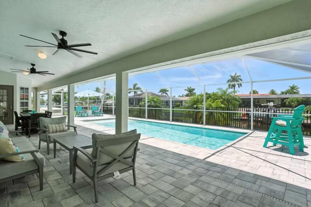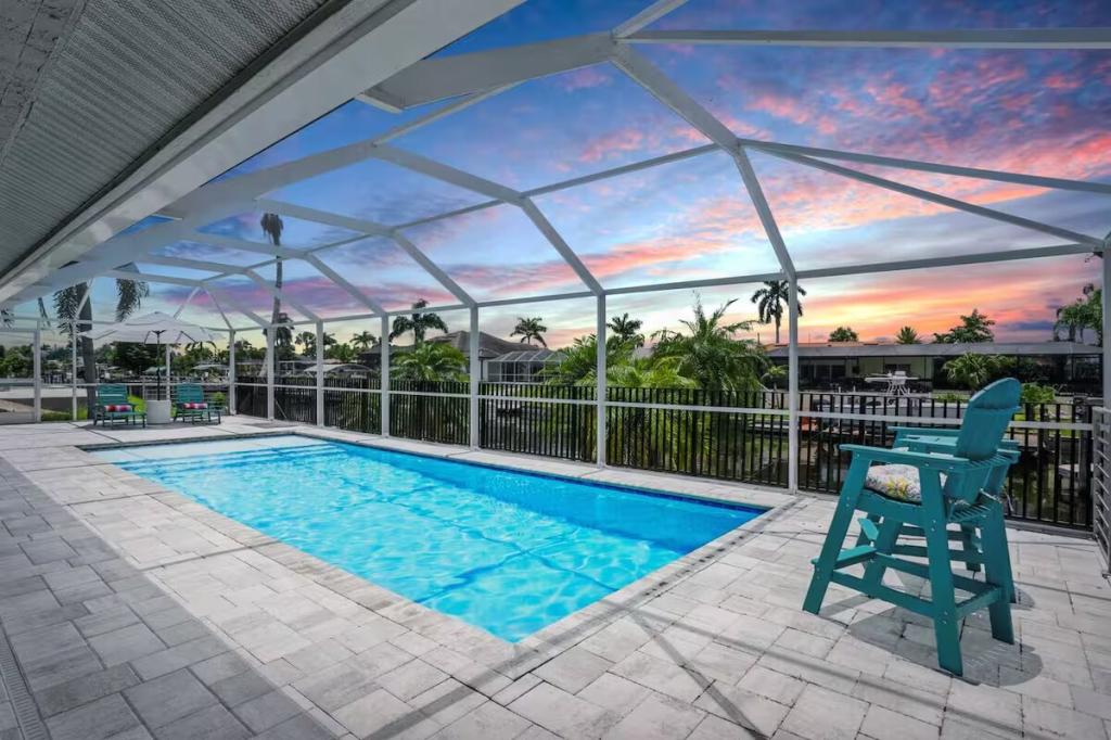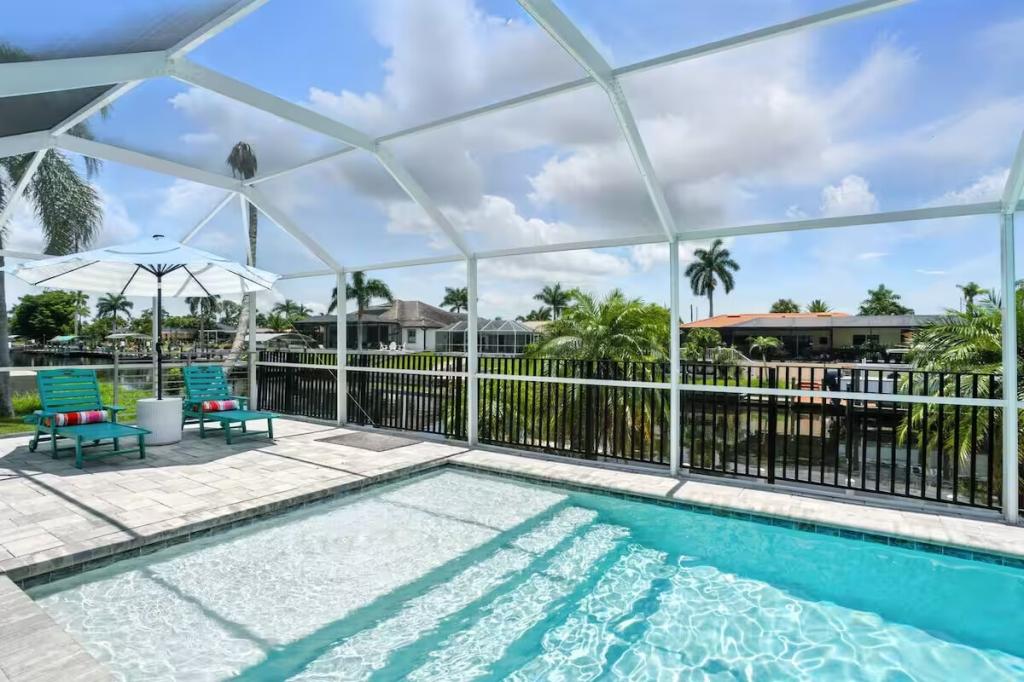 Canal Breeze – Gulf Access & Heated Pool, Beautiful Condo rental in Cape Coral has 3 bedrooms, 2 bathrooms, 8 sleeps, 1 minimum stay Condo for rent in Cape Coral Florida with the amenities and near by attractions , Air Conditioning, Carbon monoxide detector, Children Welcome, Deck/Patio, Fire extinguisher, Fireplace, Free WiFi, Full Kitchen, Heating, Internet, Kayak / Canoe, Kitchen, Linens Provided, Managed by Owner, No parties/events, No Smoking, Parking, Pet Friendly, Smoke detector, Swimming pool, Towels Provided, Washing Machine, Water View, Waterfront, Wireless Internet, Basic Soaps, Blender, Cable/Satellite TV, Ceiling Fans, Clothes Dryer, Coffee Grinder, Coffee Maker , Dining Area, Dishes & Utensils, Dishwasher, First-aid kit, Freezer, Hair Dryer , Hangers, Heater, Ice Maker, Iron & Board , Kettle, Living Room, Microwave, Outdoor Grill, Oven, Refrigerator, Shampoo, Stove, Telephone, Television, Toaster, Toilet Paper, Waffle Iron, Washer/Dryer , Antiquing, Bay/sound, Bird watching, Boating, Cross country skiing, Cycling, Ecotourism, Fishing, fitness center, Gambling casinos, Golf, Health/beauty spa, Hiking, Horseback riding, Hospital, Hunting, Kayaking, laundromat, Mountain climbing, Museums, Outlet shopping, Paddle boating, Rafting, Scuba diving or snorkeling, Shopping, Snorkeling, Snowboarding, Surfing, Swimming, Theme parks, Water parks, Water sports, Water tubing, Whale watching, Wildlife viewing, Wind-surfing, Winery tours, ZooBidet, Tumble dryer, Bed sheets, Bed line, Pots and pans, oil, salt and pepper, Free on-street parking, Self check-in, Keypad,