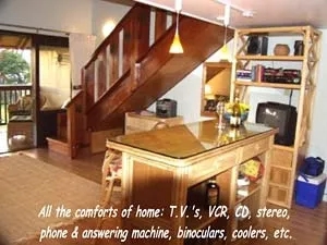 This one of a kind vacation rental studio is known for its beautiful hand-carved staircase leading to a loft with 2nd full bath and King Bed. The main level offers an incredibly comfy Queen Sofa Sleeper, fully equipped kitchen with granite counters and hickory cabinets, bamboo bar and stools, and lanai table seating. All of this for the price of a studio!